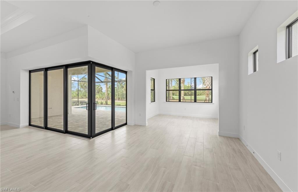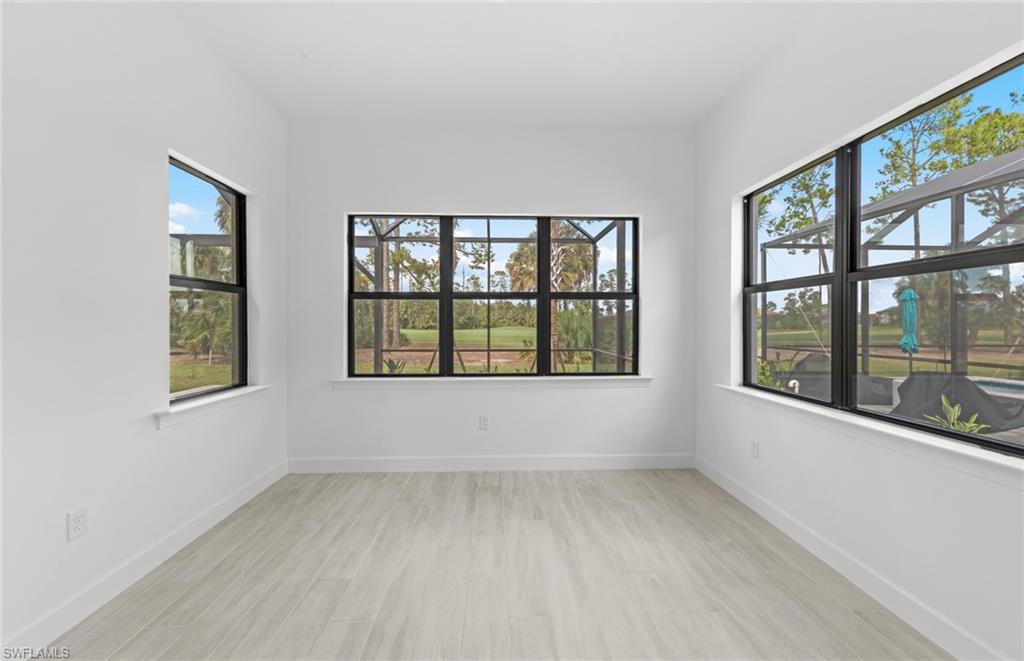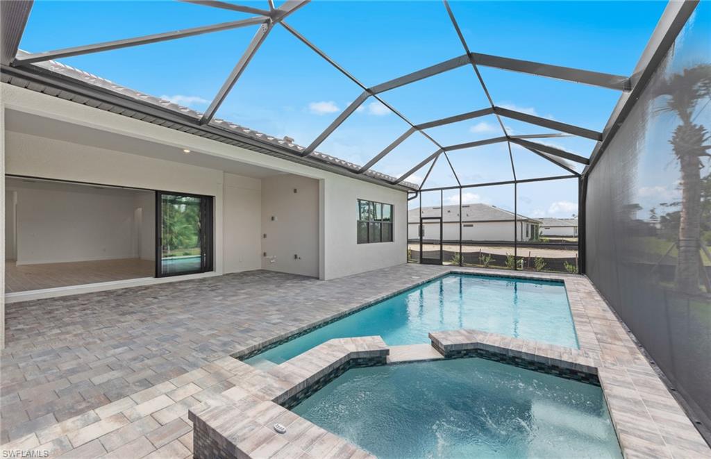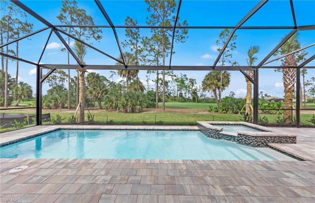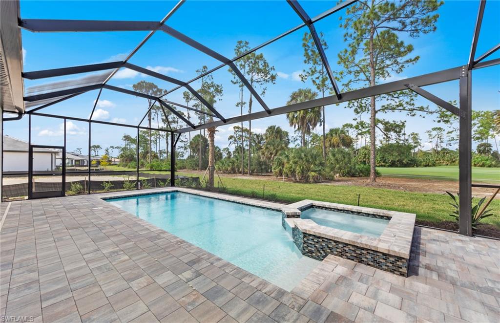 This stunning Stellar Home Plan with breathtaking, picturesque golf course and preserve views located in highly desirable Naples in the New Construction Community of Terreno by DiVosta featuring three spacious bedrooms, three luxurious bathrooms, a versatile enclosed flex room, and a three-car garage with a 4’extension and epoxy finished flooring is a head-turner that will captivate you! This beautiful Stellar Home boasts a gourmet kitchen with built-in appliances, gorgeous Silestone countertops, a stylish backsplash, sleek white cabinets with Brushed Satin Nickel Pulls, an inviting, bright sunroom, and a welcoming gathering room with a charming tray ceiling adding character and flair, and a zero-corner sliding glass door-perfect for entertaining! The fantastic enclosed flex room could function in a variety of ways. The enclosed flex room could serve as a guest bedroom, a home office, or as a private retreat room for relaxation. Other highlights of this Stellar Home are: an upgraded laundry room with white cabinets, glistening tile flooring throughout, outdoor kitchen pre-plumbing which would be ideal for cooking meals to enjoy with friends and family, and a spectacular, screened-in Custom Pool and Spa-the quintessential spot for a solo swim or for hosting friends. Enter the fabulous, roomy primary suite to experience ultimate bliss and relaxation! The primary suite is the ideal room to unwind inside of and to curl up with your favorite book/watch your favorite show. Escape into the magnificent primary bathroom to create your own private oasis! The exquisite primary bathroom features elegant Silestone countertops, lovely white cabinets, dual sinks, and an enlarged walk-in shower. The primary bathroom is made for self-indulgence, pampering, comfort, and relaxation! The two charming secondary bedrooms and bathrooms offer additional space for rest, relaxation, and pampering! The two enchanting secondary bathrooms feature sparkling Silestone countertops, fantastic white cabinets, and walk-in showers. The wonderful secondary bedrooms and bathrooms would serve as convenient rooms for visiting friends and family. Another perk of this unforgettable abode is the tankless water heater-providing an efficiency upgrade! The amazing amenities at Terreno by DiVosta recently opened! Neighborhood features include a 15,000 sq. ft. grand clubhouse with large community room for events, catering kitchen, state-of-the-art fitness center, exercise studio, 8 pickleball courts, 2 tennis courts, dog park, playground, firepit lounge, resort style pool, lap lanes, heated spa, full-service bar & grill, food truck drive-up, 18-hole public golf course next door & more! This ray of sunshine could be the home of your dreams! Schedule a tour soon!