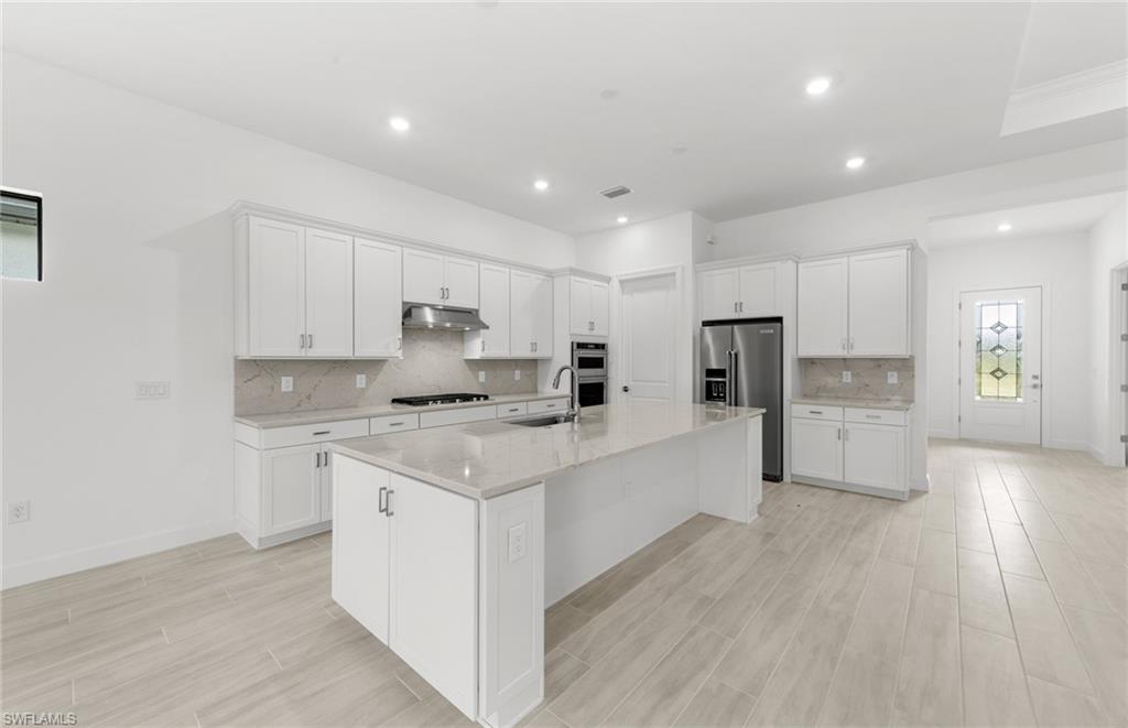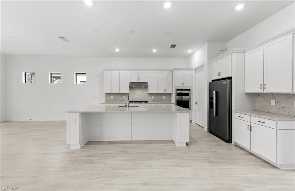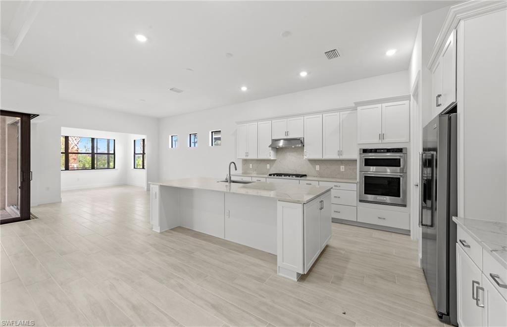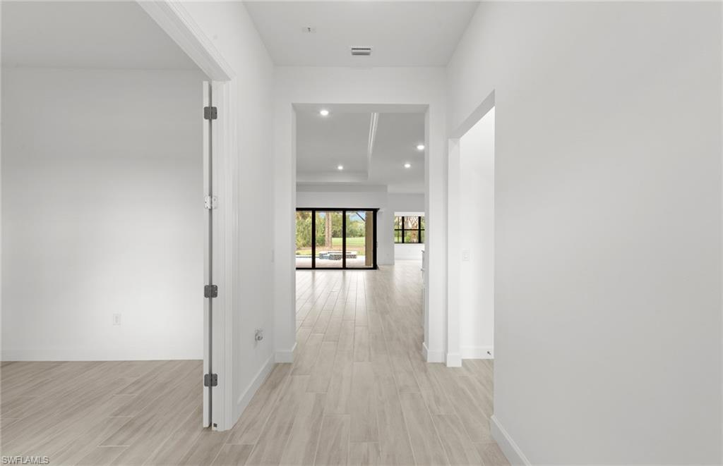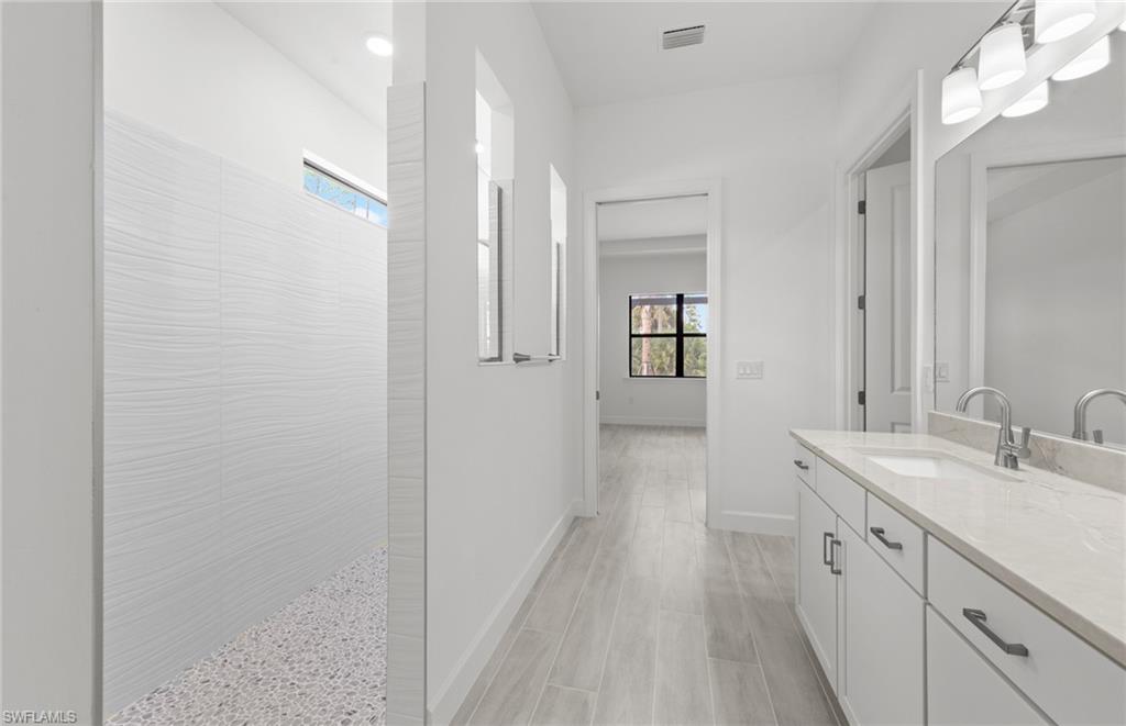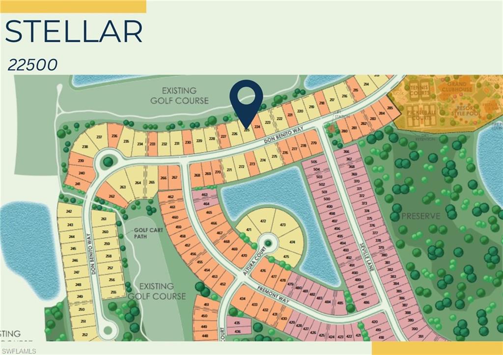 This stunning Stellar Home Plan with breathtaking, picturesque golf course and preserve views located in highly desirable Naples in the New Construction Community of Terreno by DiVosta featuring three spacious bedrooms, three luxurious bathrooms, a versatile enclosed flex room, and a three-car garage with a 4’extension and epoxy finished flooring is a head-turner that will captivate you! This beautiful Stellar Home boasts a gourmet kitchen with built-in appliances, gorgeous Silestone countertops, a stylish backsplash, sleek white cabinets with Brushed Satin Nickel Pulls, an inviting, bright sunroom, and a welcoming gathering room with a charming tray ceiling adding character and flair, and a zero-corner sliding glass door-perfect for entertaining! The fantastic enclosed flex room could function in a variety of ways. The enclosed flex room could serve as a guest bedroom, a home office, or as a private retreat room for relaxation. Other highlights of this Stellar Home are: an upgraded laundry room with white cabinets, glistening tile flooring throughout, outdoor kitchen pre-plumbing which would be ideal for cooking meals to enjoy with friends and family, and a spectacular, screened-in Custom Pool and Spa-the quintessential spot for a solo swim or for hosting friends. Enter the fabulous, roomy primary suite to experience ultimate bliss and relaxation! The primary suite is the ideal room to unwind inside of and to curl up with your favorite book/watch your favorite show. Escape into the magnificent primary bathroom to create your own private oasis! The exquisite primary bathroom features elegant Silestone countertops, lovely white cabinets, dual sinks, and an enlarged walk-in shower. The primary bathroom is made for self-indulgence, pampering, comfort, and relaxation! The two charming secondary bedrooms and bathrooms offer additional space for rest, relaxation, and pampering! The two enchanting secondary bathrooms feature sparkling Silestone countertops, fantastic white cabinets, and walk-in showers. The wonderful secondary bedrooms and bathrooms would serve as convenient rooms for visiting friends and family. Another perk of this unforgettable abode is the tankless water heater-providing an efficiency upgrade! The amazing amenities at Terreno by DiVosta recently opened! Neighborhood features include a 15,000 sq. ft. grand clubhouse with large community room for events, catering kitchen, state-of-the-art fitness center, exercise studio, 8 pickleball courts, 2 tennis courts, dog park, playground, firepit lounge, resort style pool, lap lanes, heated spa, full-service bar & grill, food truck drive-up, 18-hole public golf course next door & more! This ray of sunshine could be the home of your dreams! Schedule a tour soon!