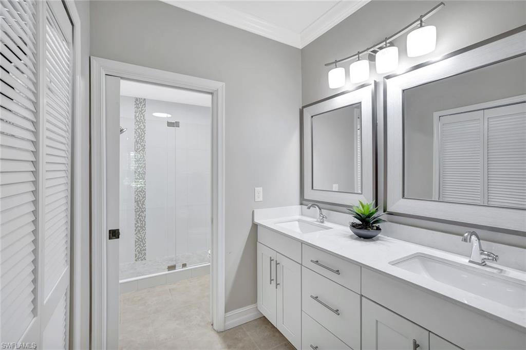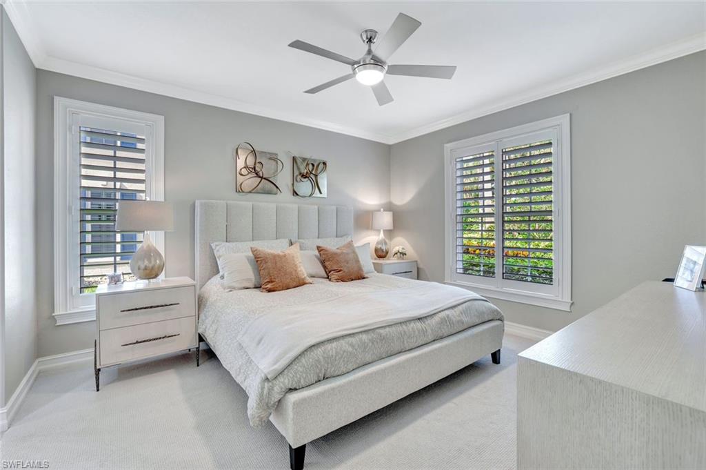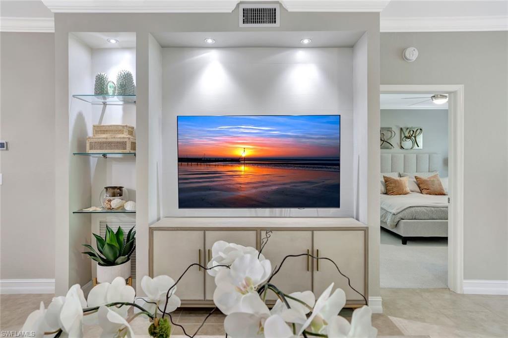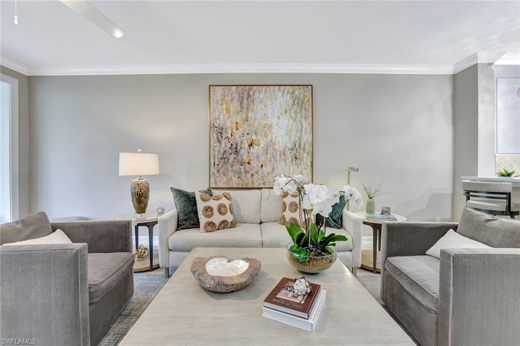 Beautifully renovated, this main-floor, three-bedroom condo enjoys bright western exposure overlooking the meticulously maintained grounds. The kitchen has been fully remodeled with fresh white cabinetry, sleek quartz countertops, and stainless-steel appliances. Both the primary and guest baths have been stylishly updated with new cabinetry, quartz counters, and tile finishes. Custom built-ins with glass shelving frame the flat-screen, adding a designer touch throughout the home. Recent updates also include mechanicals and new impact windows for peace of mind. Positioned on the south side of the building, the residence benefits from both southern and western exposure, filling the home with natural light. The former screened lanai has been upgraded with glass panels, seamlessly extending the under-air living space while still allowing the option to open up and enjoy refreshing Gulf breezes—the best of both indoor and outdoor living. Additional highlights include plantation shutters, a motorized rear lanai shade, updated laundry with new cabinetry, a large private storage closet perfect for bikes and beach gear, and a private one-car garage. This home has never been rented and is not subject to seasonal lease commitments. The Barrington Club offers its own private pool, spa, and community center just steps away. As a Pelican Bay resident, you’ll also have access to an impressive array of amenities: a state-of-the-art fitness center and spa, scenic walking and biking paths, tennis and pickleball facilities, miles of pristine sand beach, and two private beachfront restaurants with convenient north and south tram service. Ideally located in North Naples, Pelican Bay places you minutes from Waterside Shops, Mercato, Artis-Naples, and a wealth of dining and shopping destinations. Situated on one of the highest points in Pelican Bay, making it a rare and valuable find in one of Naples’ most prestigious communities.