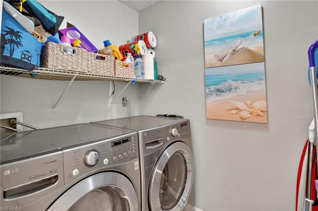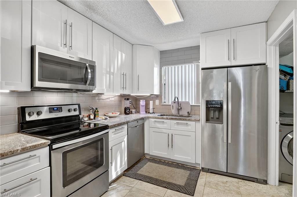 Welcome to your beautifully remodeled Oasis in the heart of North Naples, just minutes from upscale shopping, fine dining, and only 10 minutes to the beach. Enjoy breathtaking sunset views from your West-facing lanai, complete with stylish tile flooring and premium Hunter Douglas sunshades for ultimate comfort. Inside, sophistication meets modern convenience: Fully Furnished and a Gourmet kitchen with 42" cabinets, granite countertops, Bosch dishwasher, and LG stainless washer & dryer. The Master Bedroom features a walk-in closet and remodeled Bath with Standup shower. The Guest Bedroom also has a Walk-in Closet and remodeled Bath. The entire condo boasts all-new flooring, fresh paint, and is offered fully furnished—move-in ready. Pet lovers rejoice: the liberal pet policy allows up to two dogs or cats. Whether you're seeking a seasonal retreat, full-time residence, or investment, Oasis delivers with top-tier amenities including two resort-style pools, tennis courts, and a fully equipped fitness center. Plus, enjoy peace of mind with newer A/C and hot water systems—this home has been lovingly maintained.