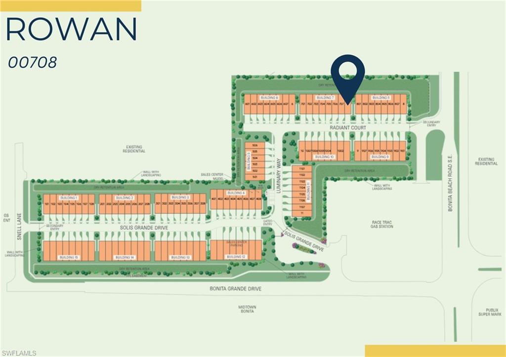Discover the Rowan, a beautifully designed townhome offering 3 bedrooms, 2.5 bathrooms, and a 2-car garage. Stylish upgrades include 6x24 tile flooring on the main level, cozy carpet upstairs, white cabinetry with quartz countertops, and a smart home package for modern living. Built with durability and peace of mind in mind, this home also features a tile roof and impact glass throughout. Located in Solis Grande, a gated new townhome community with 118 future residences, residents will enjoy low-maintenance living with no CDD fees. Perfectly situated in Bonita Springs, Solis Grande offers convenient access to shopping, dining, and entertainment—plus it’s just 7 miles to the beach!