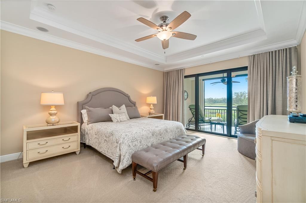 Immediate golf membership available only for Tiburon residents! This beautifully maintained residence in Marquesa Royale at The Ritz-Carlton Tiburón offers sweeping views of the 18th hole of the golf course and sparkling lake beyond. Step off the elevator into your private foyer, where French doors open to a spacious floor plan that lives like a single-family home. The primary suite features serene views, a custom walk-in closet, dual vanities, soaking tub, and large shower. With three en-suite bedrooms, a den, powder bath, and over 700 square feet of wraparound lanai, the home blends comfort and elegance with effortless flow. The kitchen is designed for entertaining with a natural gas cooktop, stainless steel appliances, ice maker, and built-in bar with beverage coolers and wine rack. Impact-resistant windows and doors, along with remote-controlled lanai shutters, provide convenience and peace of mind. Impeccably maintained by the original owners, this move-in ready, fully furnished residence is offered in pristine condition and ready to enjoy. Memberships are immediately available, offering championship golf, tennis, fitness, spa, pools, social events, and a luxury beach shuttle to Vanderbilt Beach. All this is within minutes of world-class shopping and dining at Waterside Shops, Mercato, and more.