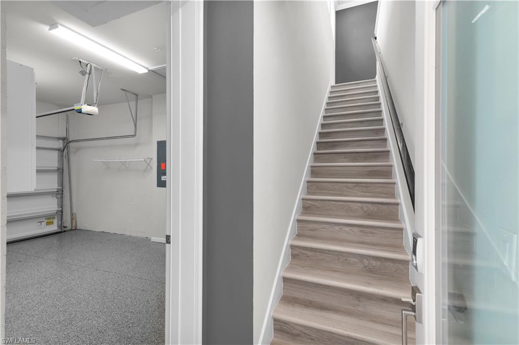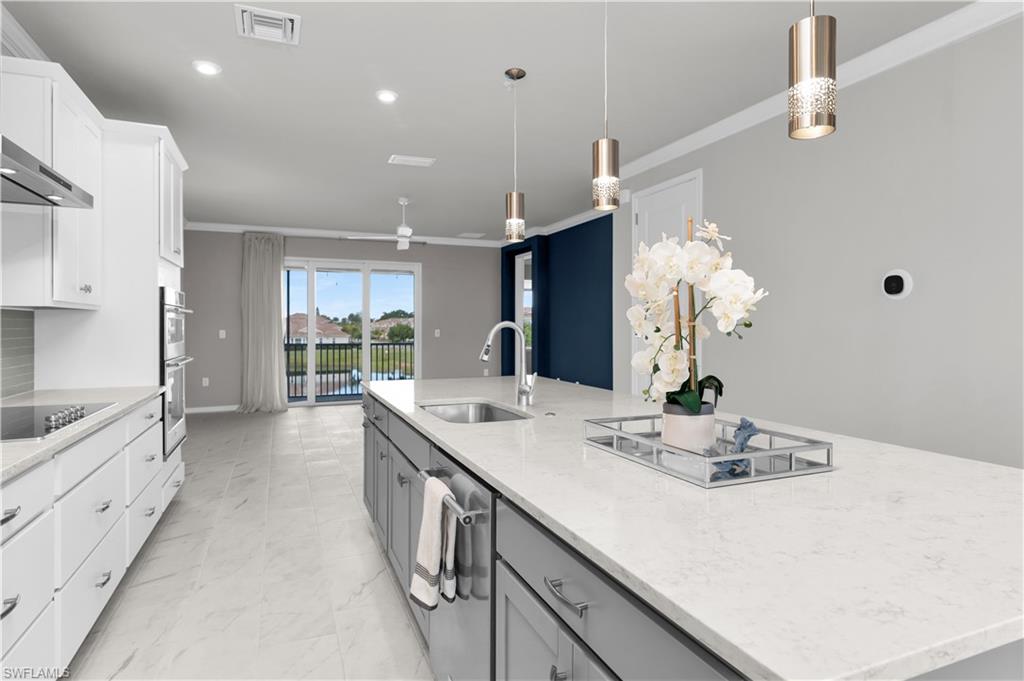 Live the Florida dream in this immaculate 2-bedroom 2-bathroom coach home located in the heart of Naples’ vibrant Bayshore Arts District, where culture, entertainment and nature meet. Nestled within Arboretum, a highly sought-after gated community just minutes from Naples Botanical Gardens, the National Pickleball Center, Celebration Park, and vibrant downtown Naples, this 1,480 sq ft second-floor residence offers a spacious open-concept layout. Enjoy serene west-facing lake views from the screened lanai, while impact-rated windows and sliding glass doors provide peace of mind and enhanced energy efficiency. The split floor plan is designed for privacy and versatility with a spacious guest suite that offers a private balcony for guests to enjoy outdoor space. The main living areas are enhanced with marble-style white and gray ceramic tiles ,modern luxury vinyl flooring runs through the bedrooms and closets, all complemented by crown moldings, recessed lighting and a sophisticated wall color palette adding a refined touch to the space. The modern kitchen is a true centerpiece, offering an oversized center island, quartz countertops, stainless steel appliances and sleek cabinetry ideal for both cooking and entertaining. Direct access to the home is through the side entry covered porch or the attached 1-car garage that provides additional storage space. Residents of Arboretum enjoy resort-style amenities including a clubhouse with a heated pool and spa, a fire pit, grilling stations, a well equipped fitness center, a dog park perfect for enjoying the best of Florida outdoor living and staying active year-round.