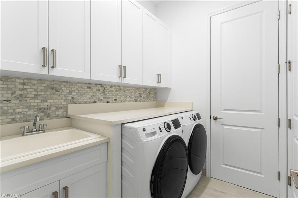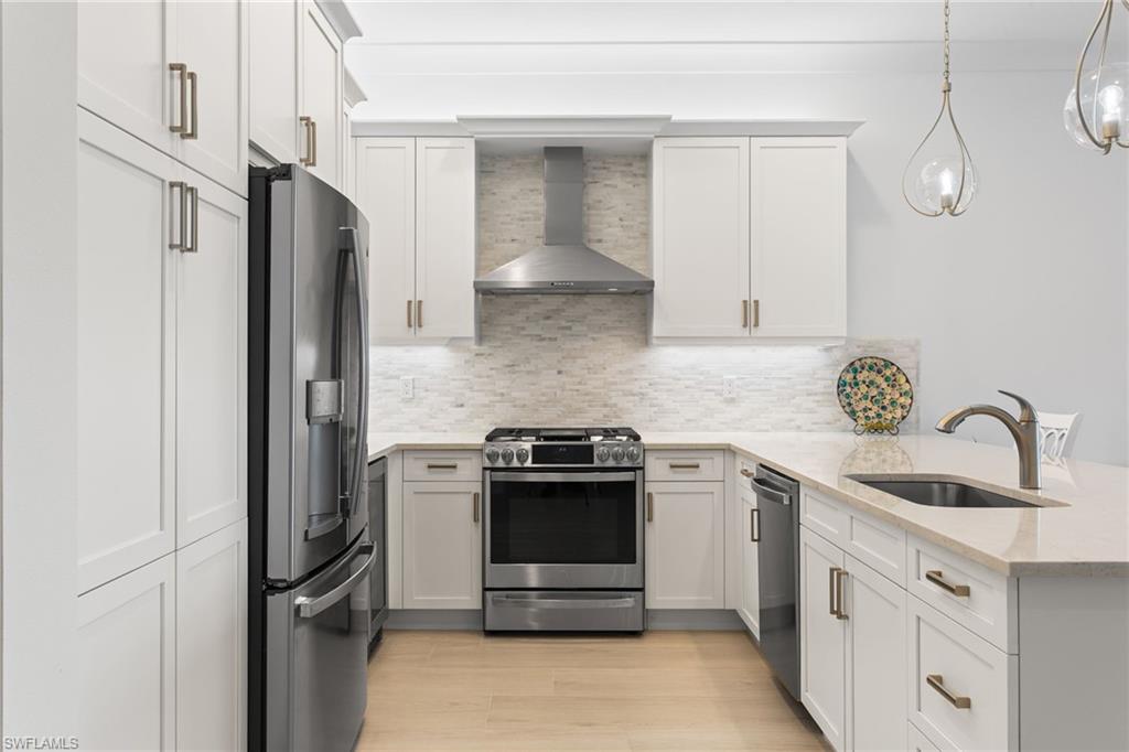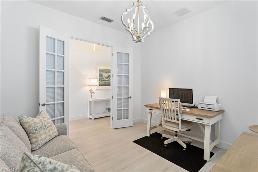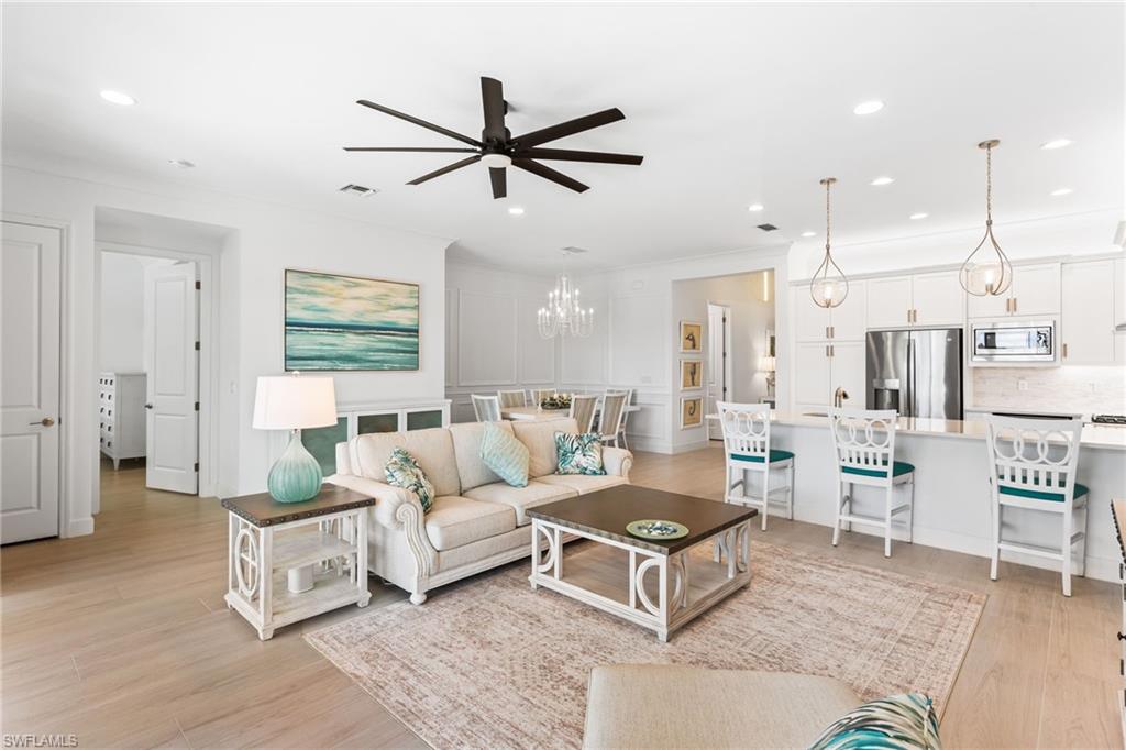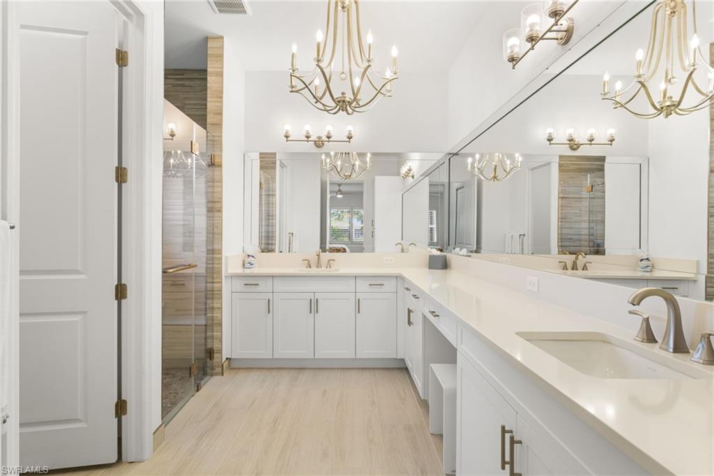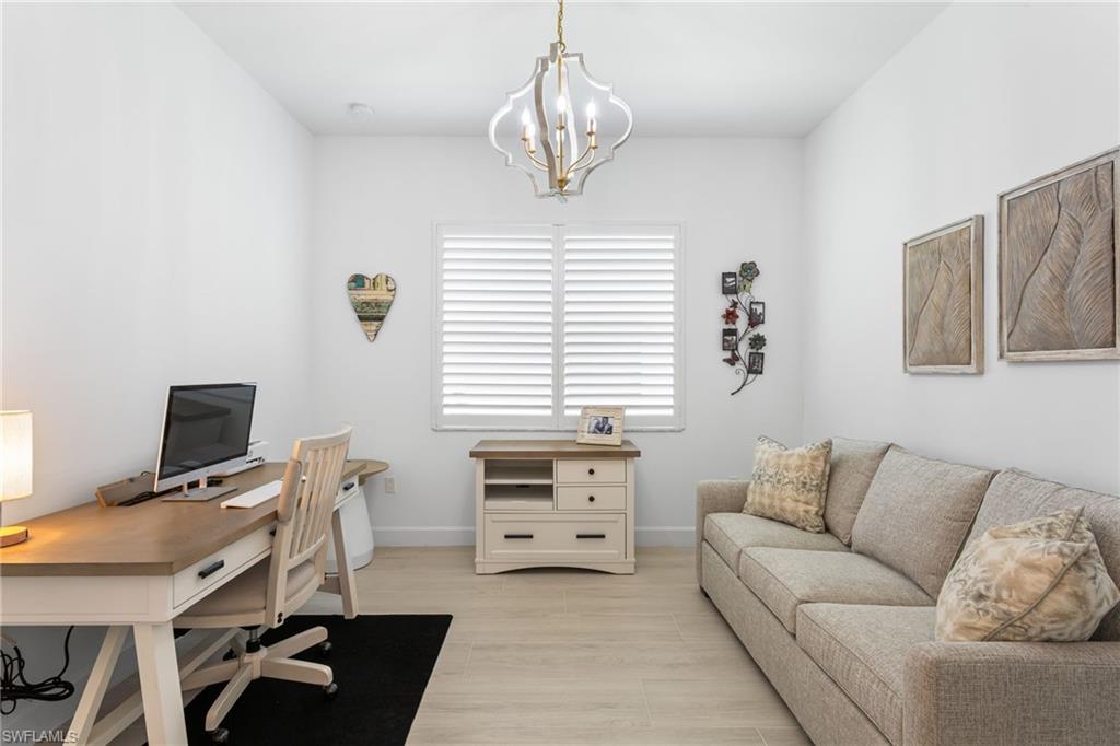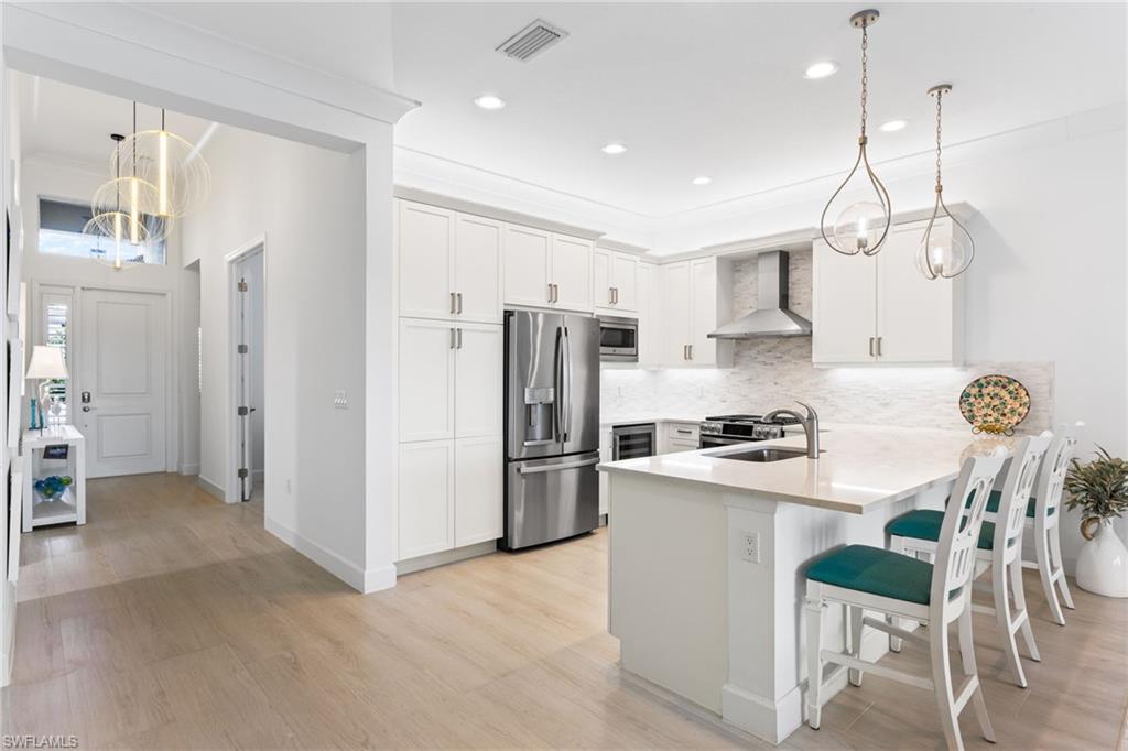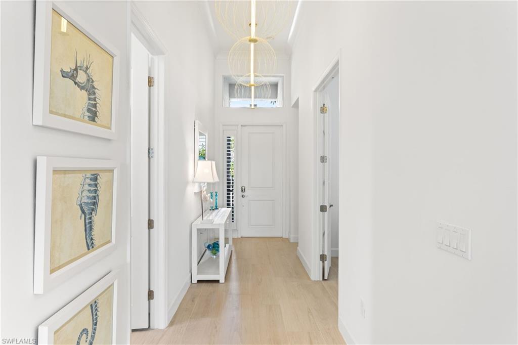 Welcome to 11555 Jacaranda Drive—an upgraded Flamingo model in Valencia Trails, Naples’ luxury 55+ community where resort living meets everyday ease. Set on a landscaped corner lot with a tranquil southern lake view, this home elevates outdoor living with a custom heated saltwater pool and spa, travertine patio, screened enclosure, and a fenced dog run beyond the cage. Inside, a smart 2-bed + den, 2-bath layout is finished with impact glass throughout, brand-new custom tile flooring, designer lighting, and tailored wall millwork in the dining area. The private primary retreat features two custom-built walk-in closets and a spa-like bathroom with upgraded Kohler toilets, new designer shower tile, and frameless glass. The chef’s kitchen checks every box: natural gas, stainless appliances, brand-new oven, outside-vented hood, built-in wine fridge, and GL Homes’ gourmet package—elevated cabinetry, crown molding, and statement lighting. Beyond the front door, Valencia Trails delivers a 43,000-sq-ft clubhouse with card rooms, an art studio, sports lounge, full-service dining (indoor/outdoor), lap/resort/resistance pools, spa, cabanas with food service, fire pits, and a full slate of social events—plus pickleball, tennis, and bocce for an active, friendly lifestyle. This is the Naples way of life—refined, low-maintenance, and ready now.