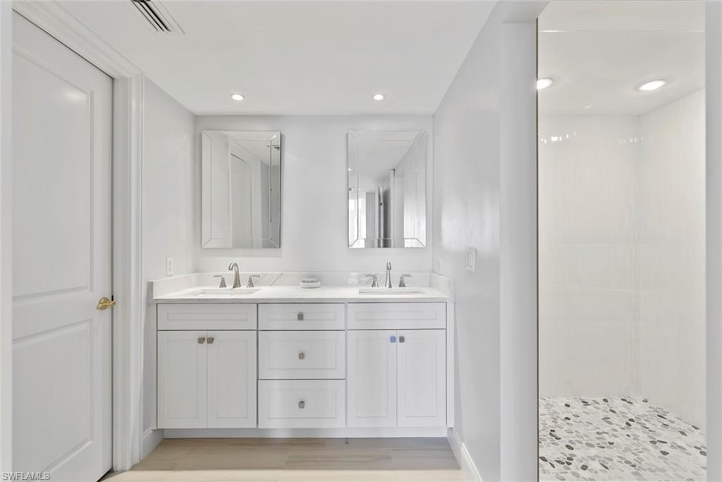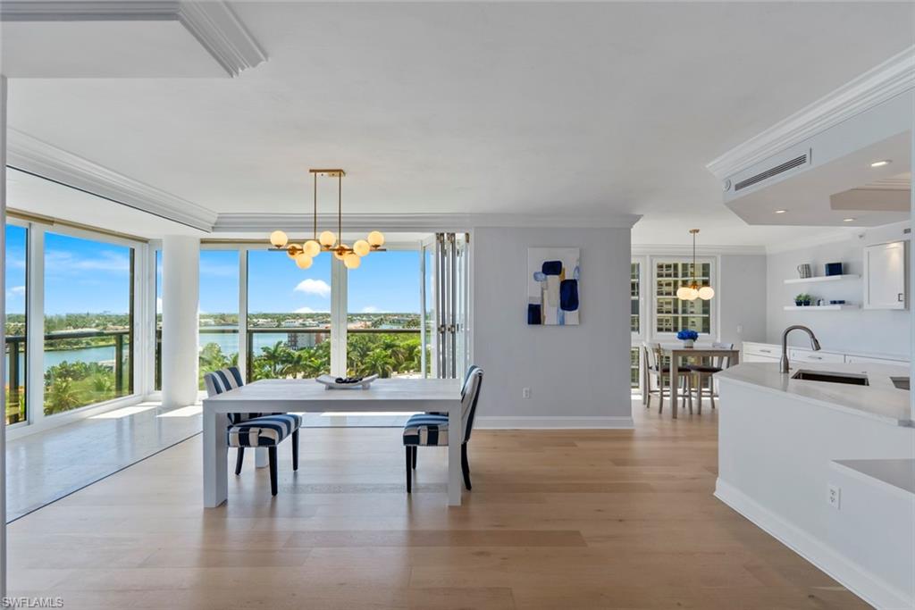Bay & Gulf views galore! An exceptional opportunity awaits in the heart of Park Shore with this beautifully renovated, furnished condo offering a myriad of breathtaking views of the bay and stunning Gulf sunsets. Ideally located in the fabulous Allegro just steps from private Park Shore beach access and a short stroll to the upscale boutiques and dining of Venetian Village. Enjoy peaceful walks along the scenic beachfront promenade, immersing yourself in the quintessential Naples waterfront lifestyle. Inside, the thoughtfully redesigned interior reflects a relaxed coastal elegance, filled with natural light and a calming ambiance. The open-concept kitchen and family room serve as the heart of the home, seamlessly flowing onto a spacious veranda through bi-fold doors—perfect for enjoying panoramic views by day and night. With two spacious bedrooms and two full bathrooms, every detail has been curated for comfort and style. Brand new air conditioning installed in September 2025 also adds to a seamless transition into this beautiful condo. Located in Allegro, a full-service building with 24-hour front desk staff, residents enjoy access to exceptional amenities including a beachside resort-style pool and spa, fitness rooms, outdoor kitchen with BBQ grills, a recreation room, craft room, and meeting spaces. Fabulous & recent extensive and modernized renovations to the lobby, atrium, and common areas have been paid through assessments, with the Milestone Inspection and Structural Reserve Study already completed. Walk into luxury every time you come home! Additional highlights include two private guest suites for visiting friends and family, making this residence not just a home, but a lifestyle. A grand chance to live where many others vacation!