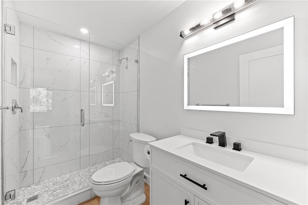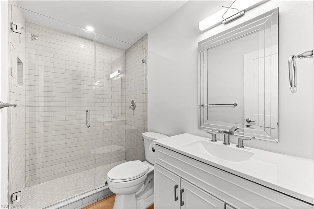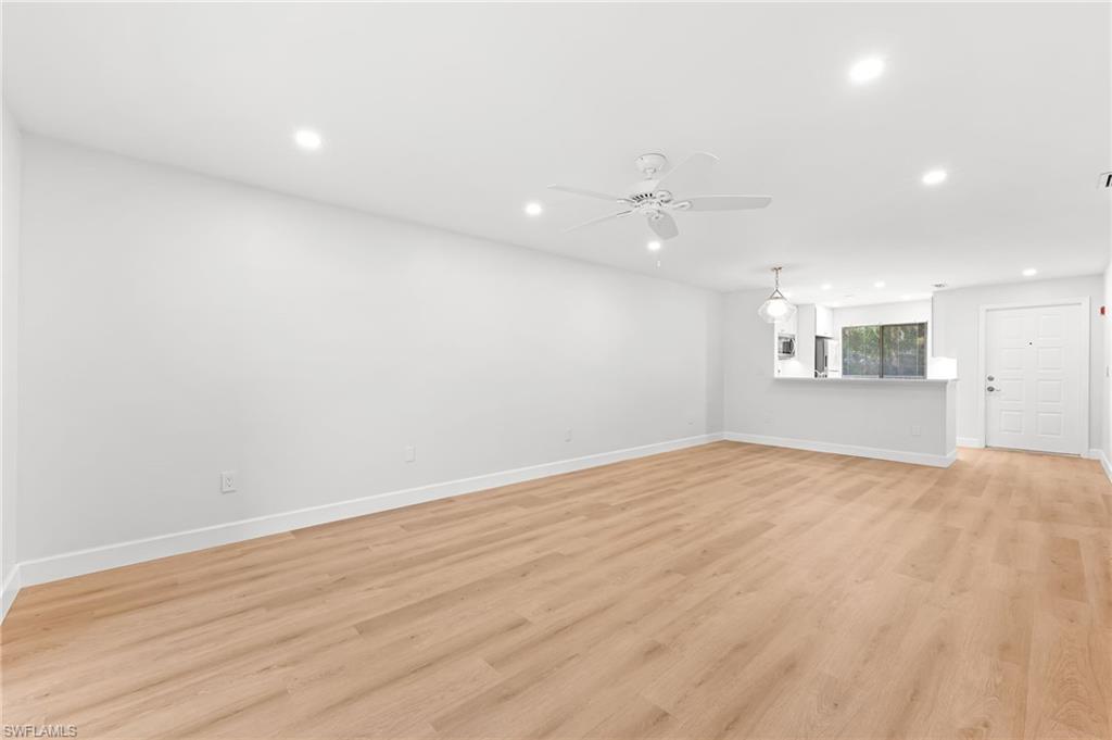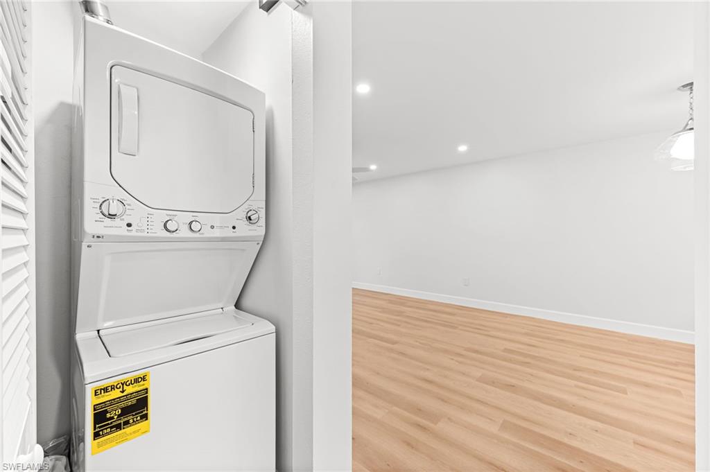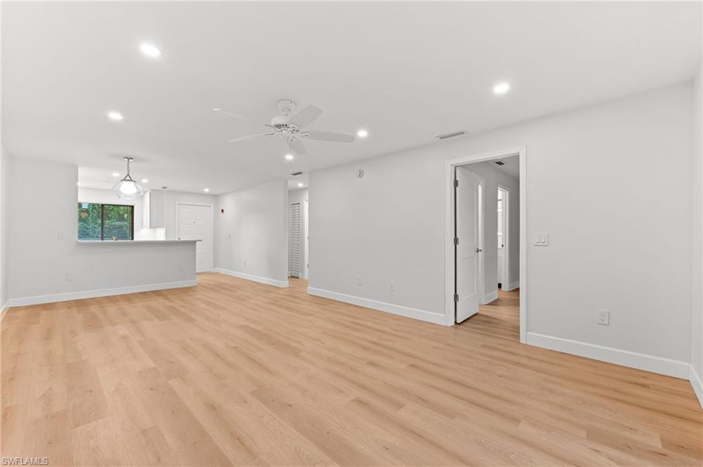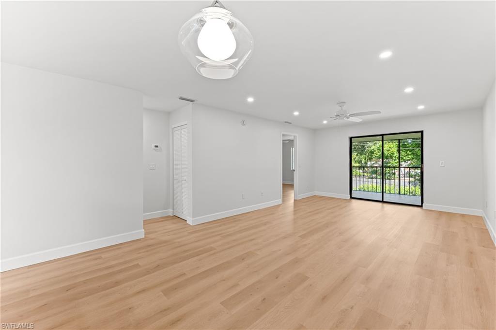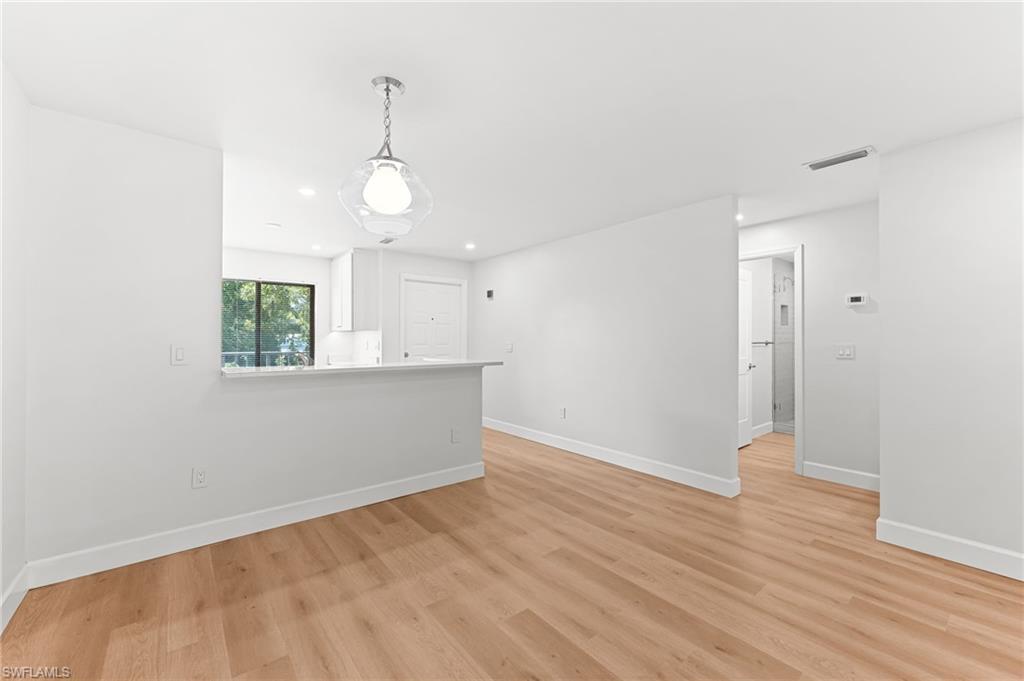 Welcome to your move-in-ready dream home! This beautifully renovated condo is located just 1.5 miles from the stunning beaches of Naples and offers modern upgrades throughout — no repairs or updates needed. Step inside to a bright, open-concept layout with fresh paint, all-new waterproof luxury vinyl flooring (2025), and upgraded baseboards. The entryway has been refreshed with a newly painted front door and rescreened for a clean, welcoming feel. The kitchen is a true showstopper, featuring quartz countertops that extend seamlessly into the backsplash, brand-new white cabinetry, and a full suite of new appliances (2025) — including a refrigerator, microwave, dishwasher, and stove. The home also features upgraded lighting and fans throughout, including recessed can lights, a stylish chandelier over the dining area, and new exterior and patio lighting, all supported by updated electrical work (2025). The primary bedroom offers a walk-in closet and a completely remodeled on-suite bathroom, featuring a new vanity, modern lighting, a newly tiled shower, updated fixtures, and a new toilet. The second bedroom and bathroom have also been beautifully updated to match. Additional highlights include: Brand new in-unit washer and dryer (2025), all new AC unit (2025), rescreened patio with new tile flooring and lighting, all new blinds, all new interior and closet doors, and the removal of popcorn ceilings throughout. Located in the quiet Naples Hideaway condominium community, residents enjoy access to a private road leading to a community pool and clubhouse. Zoned for some of the top-rated schools in Naples, this condo also offers easy access to shopping at the mall, Freedom Park, Naples Zoo, and—of course—the beach!