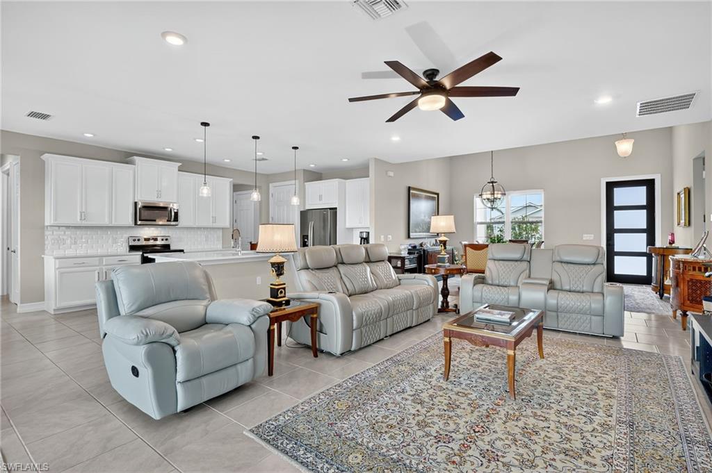 Stunning 4-bedroom, 3-bathroom pool home in the highly desirable Royal Palm Golf Estates located right on the golf course. This home was built in 2021, with 2,419 sq ft residence combines modern design with tropical elegance. The open-concept great room flows seamlessly into a gourmet kitchen with stainless steel appliances, quartz countertops, and a large island, perfect for entertaining. The private outdoor oasis features a screened lanai overlooking a sparkling pool and spa, surrounded by lush, enhanced landscaping recently upgraded by the seller for added privacy and curb appeal. The master suite boasts a walk-in closet and a spa-like bathroom. Three additional bedrooms provide ample space and comfort. Enjoy golf course living with nearby access to Eagle Lakes Golf Club. A three-car garage offers plenty of storage and parking. This home is ideal for buyers seeking luxury, convenience, and the beauty of Naples, Florida.