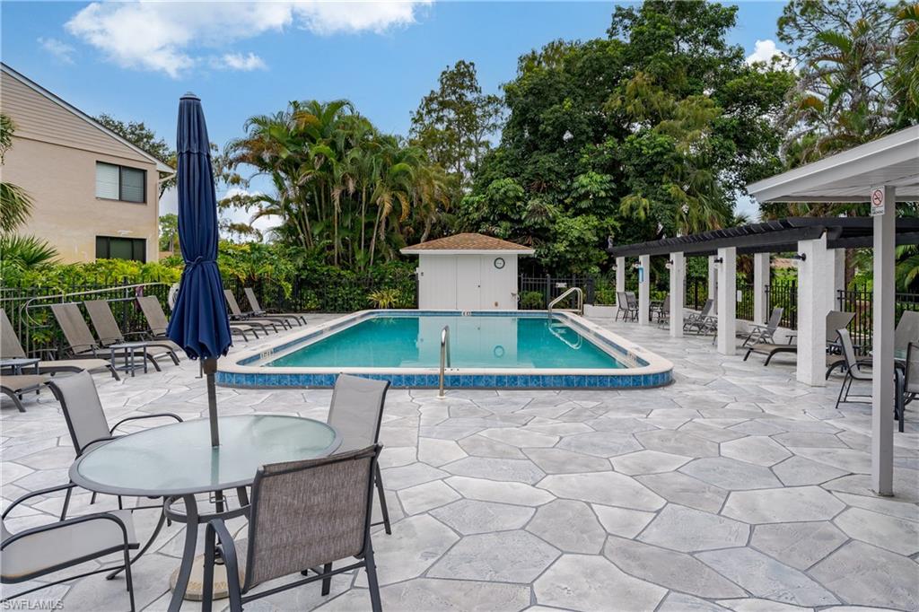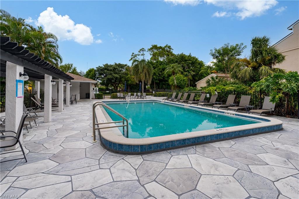 Nestled within lush Florida Pines and a beautiful golf course you'll find tranquility and peace in Foxfire, a bundled golf community!! Enjoy beautiful views from your cozy back porch in this rare end unit which also offers a quaint den which can easily be converted into a 3rd bedroom! Enjoy the outdoors on your screened in cozy front porch or your private courtyard area or the back porch!! Also, a one car garage directly in front of the property!! There is also plenty of parking for your guests! This particular subdivision has its own pool! The beach is only a 12 minute drive!! Foxfire has a beautiful 27 hole Arthur Hills designed golf course and a recently renovated clubhouse and pool! One of the the lowest priced golfing games in Naples! The clubhouse has a nice gym, bocce ball, three tennis courts, large swimming pool and a bar & grill and fine dining and a LOT of social events!!