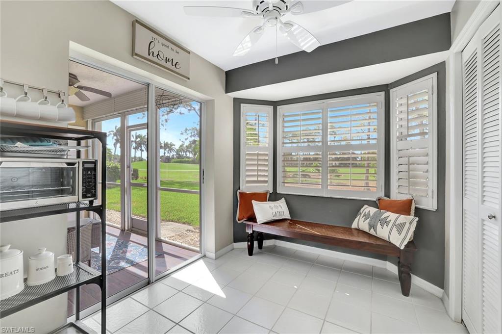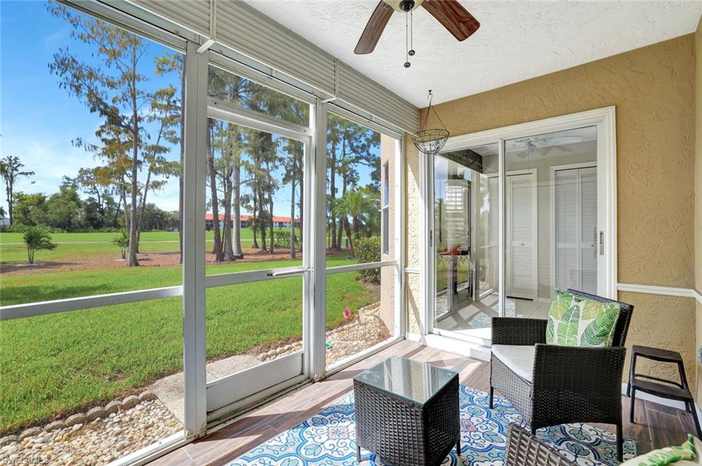 Come see this his turnkey 2 bedroom, 2 bathrooms condo in the gated community of Countryside. This ground floor walk out condo is meticulously maintained. It includes a deeded carport and social membership. The custom woodwork turns the bedroom wall into artwork. Enjoy access to outstanding amenities such as onsite dining, a state-of-the-art fitness center, tennis and pickleball courts, a pool, a spa, and bocce courts. A major clubhouse renovation has been completed, further enhancing the social experience. With the clubhouse assessment already paid, this unit offers exceptional value. It’s just moments from Naples’ upscale boutiques, fine dining, and pristine Gulf beaches.