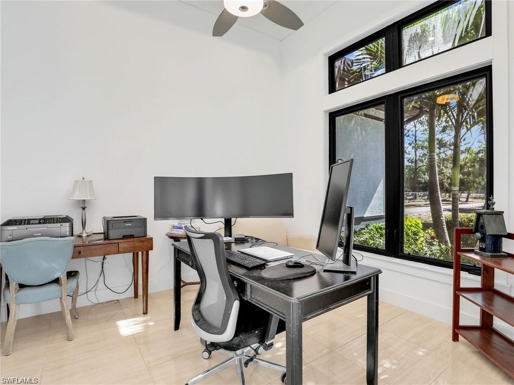 Welcome to your private estate and the pinnacle of living in Golden Gate Estates, Naples! This meticulously upgraded home offers ultimate privacy and peace of mind on a fully fenced 2.5-acre lot. The property extends 40 feet into the canal—perfect for building your own dock—and enjoys breathtaking western exposure for stunning sunsets every evening. Security and comfort are top priorities with hurricane impact-resistant windows and doors, Wi-Fi-enabled Storm Smart hurricane screens across the full-length lanai, an automatic entry gate, and a whole-home surge protector. Tinted windows add energy efficiency and privacy, while the 500-gallon reverse osmosis system ensures high-quality water throughout the home. Inside, you’ll find upgraded soft-close cabinetry and matching granite in every bathroom, Lutron smart lighting, and a MyQ Wi-Fi smart garage system. The flexible layout features three bedrooms plus a den and three full baths, including a guest suite with private en suite bath and direct pool access—perfect for hosting.
