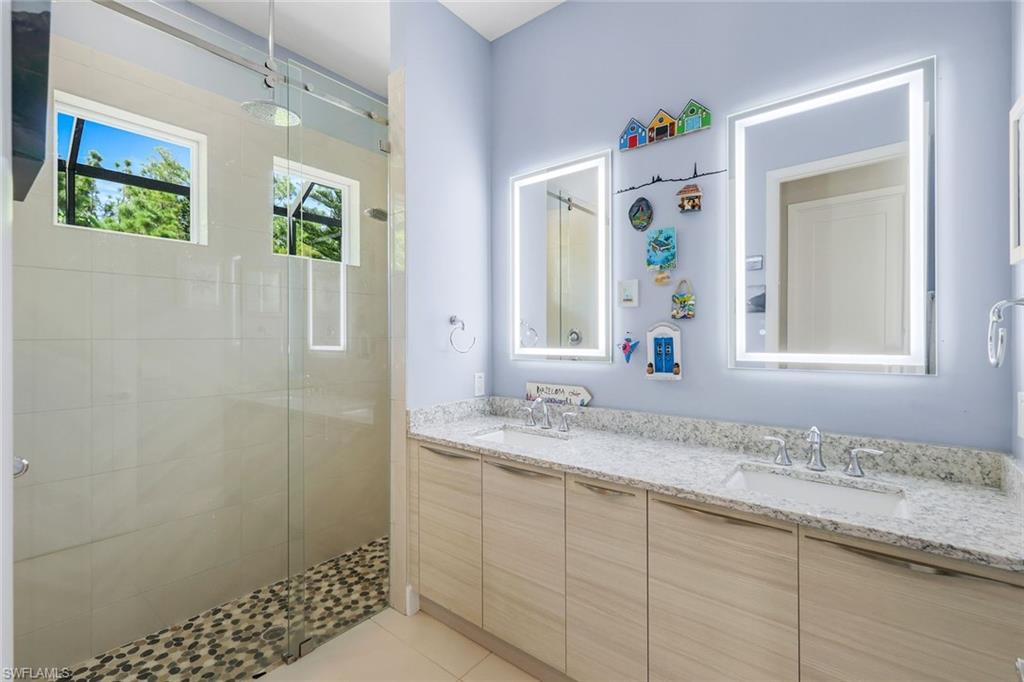 Welcome to one of the best values in Naples Reserve. This upgraded modern pool home offers the perfect blend of style, comfort, and everyday livability. The open layout features high ceilings, great natural light, and designer finishes throughout. The kitchen includes quartz countertops, a large island for casual dining, sleek custom cabinetry, and standout lighting, all flowing into a spacious great room with thoughtful details. Just off the main living area, a sliding barn door opens to a flexible den that can easily serve as a third bedroom. The master suite includes a beautiful bath and a custom walk-in closet. Step outside to a private screened lanai complete with a sparkling lap pool with bubblers and a covered dining area, making it ideal for indoor-outdoor living. Tucked away on a quiet cul-de-sac, this home offers privacy while still giving you access to Naples Reserve’s resort-style amenities including a clubhouse, fitness center, pickleball, lakes for paddleboarding and kayaking, on-site dining, and more. If you’re looking for an upgraded move-in-ready home at a great price in one of Naples’ most popular communities, this is the one.