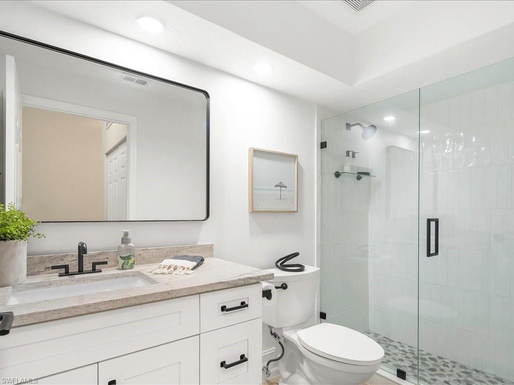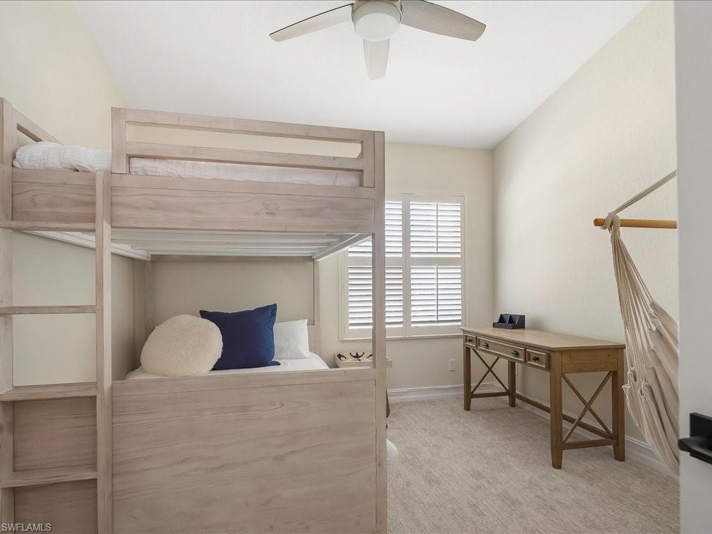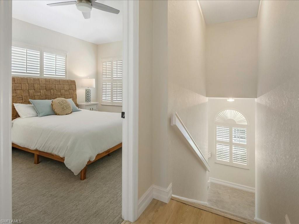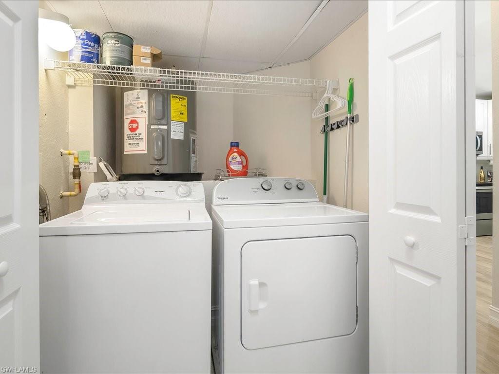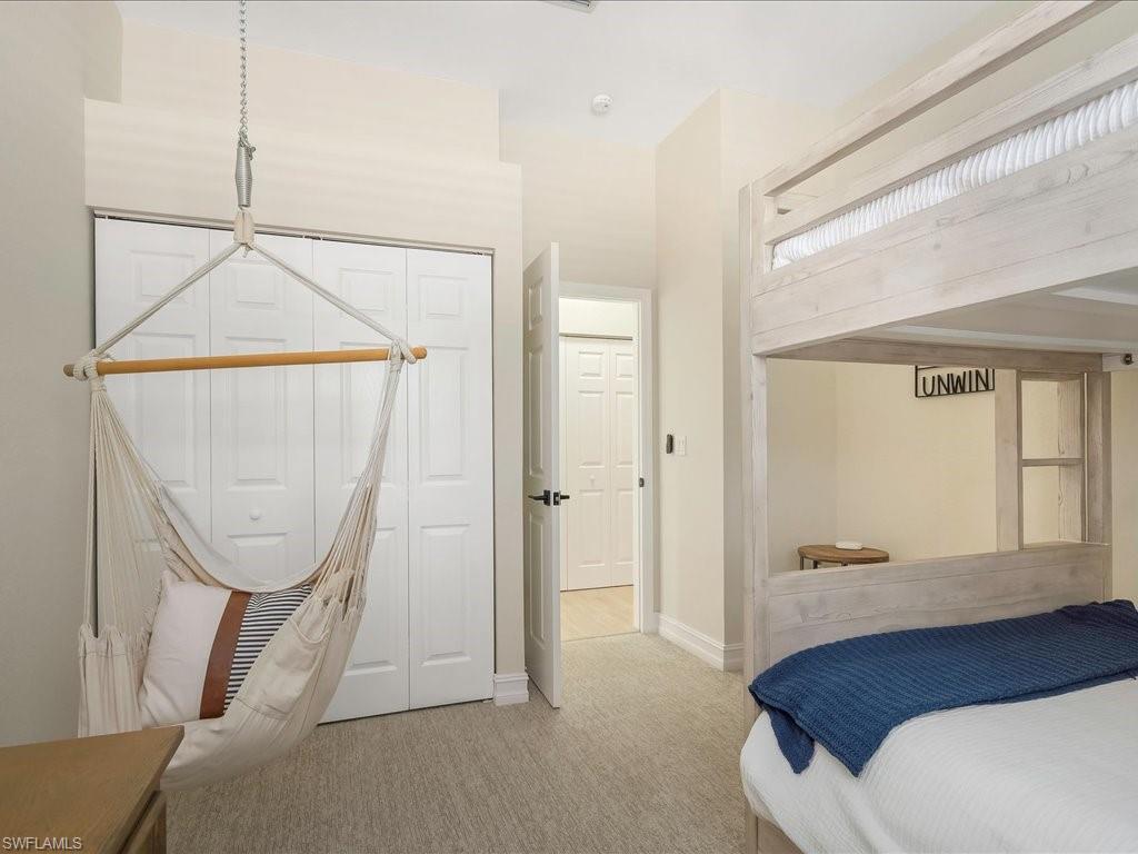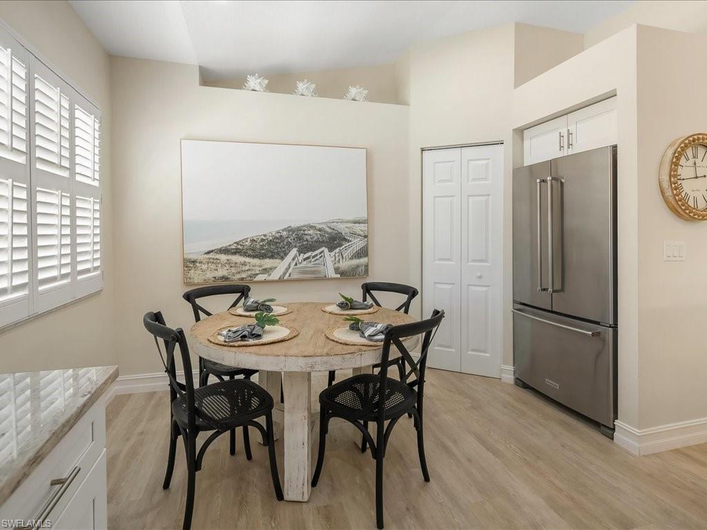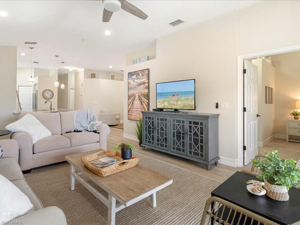 Welcome to your Naples oasis! This beautifully updated 3-bedroom, 2-bathroom lakeside condo is located in the highly desirable gated community of Calusa Bay, where residents enjoy a blend of comfort, convenience, and resort-style amenities. As a corner unit, this home is filled with natural light, creating a warm and inviting atmosphere that highlights its open design, high ceilings, and thoughtful finishes. Plantation shutters add timeless elegance, while electric hurricane shutters provide both security and peace of mind. Step inside to discover a home that has been meticulously maintained and recently upgraded to ensure modern living at its best. A full renovation of cabinetry and CoreTec flooring was completed in 2019, followed by additional improvements including a new A/C system (2021), water heater (2022), remodeled guest bath shower (2022), two new toilets, new dryer (2023), and plush new carpeting (2024). Every upgrade has been chosen with care, so you can move right in and start enjoying all that Naples has to offer. Living in Calusa Bay means enjoying unmatched amenities: two sparkling swimming pools (including a lap pool and a resort-style pool with sun deck), a fitness center, clubhouse for social gatherings, tennis courts, and scenic walking and biking trails that wind throughout the community. Your HOA fees also include fiber optic internet, cable, water, sewer, pest control, landscaping, and building maintenance—all designed to make life easy and carefree. A detached garage adds to the convenience and functionality of this exceptional condo. And then, there’s the location. Just a short drive away are the world-renowned white sand beaches of Naples, where Gulf sunsets are nothing short of spectacular. You’ll be minutes from the upscale shopping, dining, and nightlife of Mercato, as well as endless cultural experiences, art galleries, and outdoor adventures. Whether you’re a beachgoer, a foodie, a golfer, or someone who simply enjoys the Southwest Florida lifestyle, this location puts you at the center of it all. Furniture is negotiable, giving you the flexibility to move in with ease. Whether as your year-round residence, seasonal retreat, or investment property, this lakeside condo offers the perfect combination of luxury, convenience, and location in one of Naples’ most beloved communities.