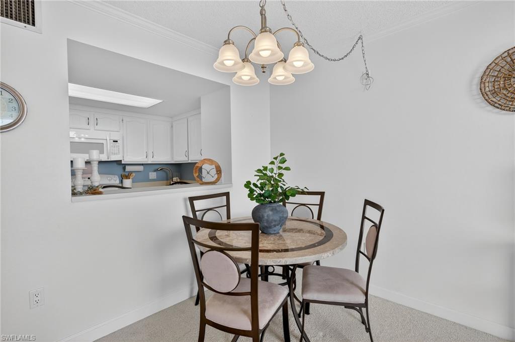 Experience the best of coastal living in the heart of Marco Island! This beautifully furnished and turnkey beach condo combines luxury, comfort, and island charm. Quick & Easy Beach Access and Great Rental Potential! Thoughtfully upgraded throughout, it features custom bathroom vanities with granite countertops and soft-close cabinetry, solid-core two-panel doors, and space-saving pocket doors in both the half bath and walk-in closet. Elegant base and crown molding, plantation shutters, and plush Berber carpeting in the living and bedroom areas add warmth and sophistication, while the tiled kitchen offers modern updates and ample storage for all your culinary essentials. Additional highlights include a custom floor-to-ceiling storage closet in the bedroom and a convenient interior storage locker located just across from the unit. Recent improvements such as wide 4-panel impact windows, a new water heater (installed January 2023), and a beautifully tiled bathroom provide peace of mind and comfort. Step onto the spacious lanai—complete with privacy walls on both sides—ideal for relaxing or entertaining and enjoy views of the Gulf from the lanai. Residents also enjoy access to a newly renovated pool area featuring a refreshed patio, stylish new furniture, and a brand-new fence. Covered carport parking with extra overhead storage and additional guest parking in the rear add convenience. Take in sweeping views of Marco Island, the beach, and Cape Marco—perfect for watching the sunrise and enjoying the sparkling lights of the island at night. This stunning condo isn’t just a home; it’s a lifestyle. Whether you’re seeking a serene vacation retreat or a permanent coastal residence, this property truly has it all.