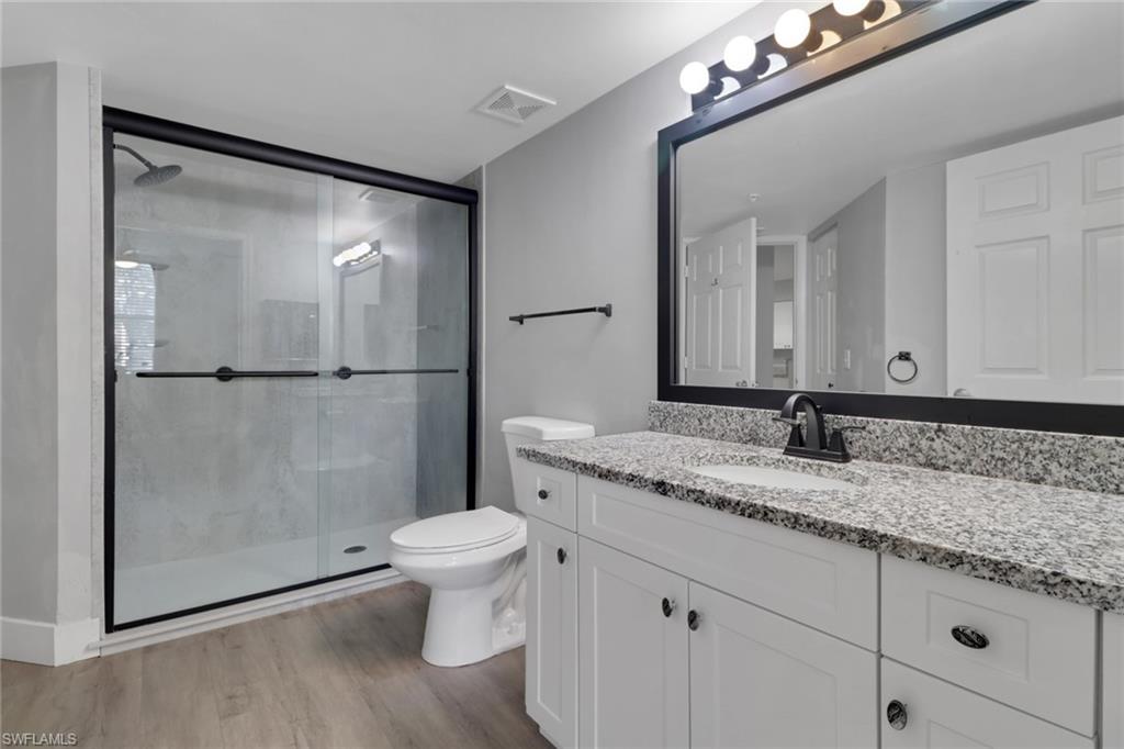 Beautifully updated first-floor condo in a prime Bonita Springs location! This well-maintained home is one of the few units with a highly desirable 1-car garage. Featuring two spacious bedrooms and a comfortable great room design, the split-bedroom layout includes walk-in closets in both bedrooms, with custom shelving in the master, an open kitchen with breakfast bar, stainless steel appliences, granite countertops in the kitchen and baths, a dining area, and a screened lanai. Recent updates include: new roof (2020), A/C (2016), fresh interior paint (2024), new landscaping (2023), new dishwasher (2023), hot water heater, garbage disposal, kitchen sink, and luxury vinyl flooring (2022). The kitchen cabinets have also been painted, giving a fresh, modern feel. New stainless steel appliences (2025). New shelving in master closet (2025). Located just steps from the community center, Sanctuary at Imperial River is a gated community tucked away off US-41 yet only minutes from the Gulf of Mexico / America. Amenities include a resort-style pool and spa, clubhouse, fitness center, tennis & pickleball, racquetball, billiards, playground, and picnic/grill area. With low HOA fees and a location that’s hard to beat—just 4 miles to Bonita Beach, minutes to Coconut Point Mall, Downtown Bonita Springs, Mercato, RSW Airport, and within walking distance to shopping, dining, and Starbucks—this condo is ideal for seasonal or year-round living, or as a smart investment opportunity.
