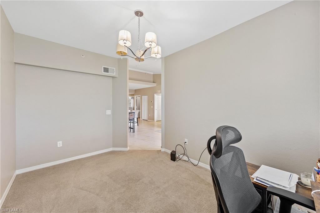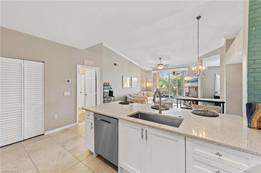 Experience the Best of Estero Living in this Beautiful 1,828 Sq Ft Condominium in Villagio! Step into comfort, style, and convenience in this spacious 3-bedroom + den, 2-bathroom condo located in the gated, resort-style community of Villagio. Offering 1,828 square feet of thoughtfully designed living space and an attached 1-car garage, this home is ideal for those seeking both functionality and elegance. Enjoy peace of mind with a brand-new roof and A/C system, both installed in 2024. Plus, with nearly all utilities covered in the HOA, including water, cable, high-speed internet, and interior/exterior pest control, you’ll benefit from simplified living and added monthly savings. Only electricity (FPL) is separate. At the heart of this home is a truly unique kitchen featuring updated white cabinetry, a vibrant teal subway tile backsplash, and striking Vetrazzo countertops made from recycled glass. These surfaces offer not only style and sustainability but also durability—being heat and scratch-resistant. Paired with stainless steel appliances, including a brand-new range, this kitchen is as beautiful as it is functional. The open-concept floor plan boasts volume ceilings and abundant natural light, creating an airy and inviting atmosphere. Whether you're working from the den, relaxing with family, or entertaining friends, the layout adapts to your lifestyle with ease. Enjoy tranquil mornings or relaxing evenings on your private balcony, overlooking a peaceful water view with a soothing fountain display—the perfect spot for coffee, reading, or simply unwinding. Located just minutes from I-75, RSW Airport, Coconut Point Mall, Gulf Coast Town Center, FGCU, and top-rated dining and entertainment options, this home offers unmatched convenience. Inside the gates, Villagio's town center provides resort-style amenities including a private theater, café, fitness center, pools, and regular social events that create a true sense of community. In addition to that, there are exciting things in the works, The Bonita Estero Rail Trail, a new walking, running, and cycling path along a former rail line from Wiggins Pass Road to Estero Parkway. The project is expected to enhance nearby communities and increase home values. This isn’t just a home, it’s a lifestyle. Don’t miss your chance to live in one of Southwest Florida’s most desirable neighborhoods.