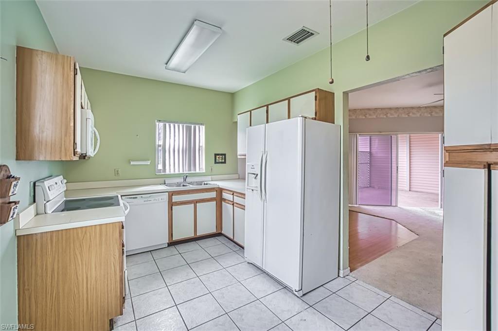 PRICED TO SELL!! Fantastic opportunity for investor or first time home buyer! This 2 bedroom 2 bathroom condo offers comfortable living with a split bedroom layout and plenty of natural light. In house laundry with washer and dryer. Ample storage. Screened front entrance and lanai. Assigned parking. Spacious front yard with room for flowers. Unit is located across from the community pool, and within walking distance to the community park. Low HOA fees. Located in well maintained Golden Gate City, close to shopping and restaurants. With a little love and sweat equity this condo unit could be the home you've always dreamed of.