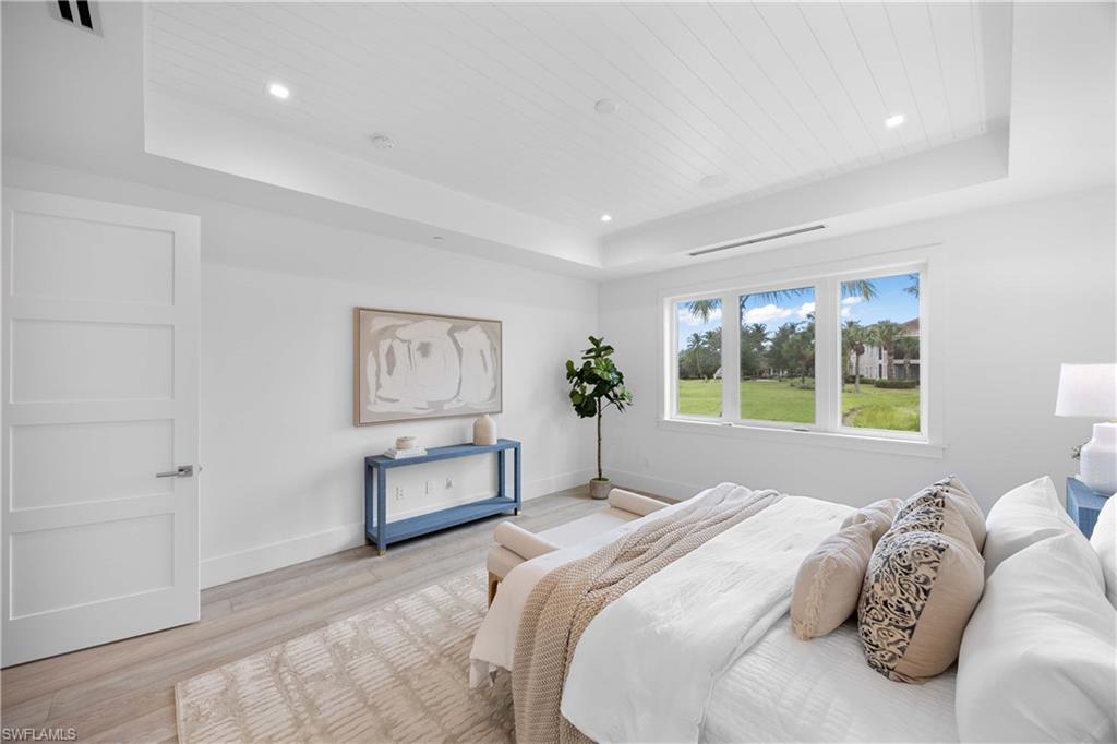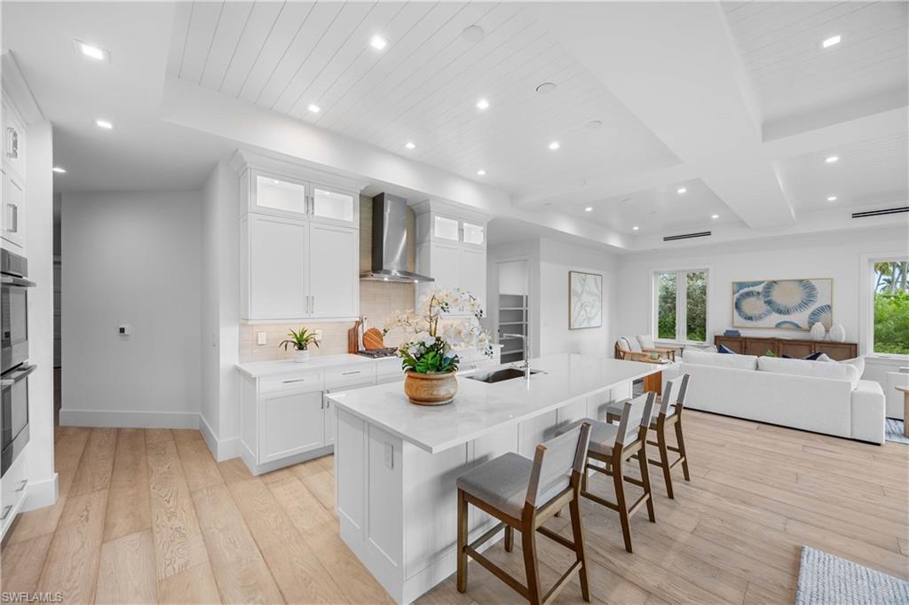 The most luxurious condominium complex in Fiddler's Creek, this beautiful ground-floor unit 101 at Dorado is rarely available. This exceptional Gulf Bay neighborhood displays the highest quality in tropical construction and coastal architecture. Stunning designs from architect MHG create the latest breathtaking new environment. Ideally designed for casual luxury, this 2,600-square-foot home has an expansive great room with a large and efficient natural gas kitchen. The magnificent quartz-covered cabinetry leaves nothing to the imagination. The hand-poured glass tile backsplash provides a sophisticated feel that blends beautifully into the living and dining areas. Exceptional tri-level cabinetry with lights and glass doors contributes to the elegant feeling. Stunning Bosch stainless steel appliances are beautiful additions to dinner parties and family get togethers. The latest designs include a microwave drawer, double oven and multi-drawer refrigerator. Also included is the five-burner gas cooktop. The French, white oak flooring adds warmth and superior style throughout the home. The high ceilings and unique contemporary windows are particular to Dorado, with shiplap ceiling accents throughout. The primary bedroom suite is exceptional, with one of several shiplap ceilings and a remarkably large closet. The equally impressive laundry area is filled with built-in cabinetry, grey front-load appliances and extra storage. The oversized lanai brings the outdoors in to create an additional living area. The club, spa, and fitness center are the heart of Fiddler's Creek social environment, with additional options from the private Tarpon Club membership and multiple private golfing options. Pickleball, tennis and miles of paths for recreation and bicycles are a part of this wonderful community. The stunning physical environment and proximity to Marco Island and Old Naples make Fiddler's one of the most desirable gated communities.