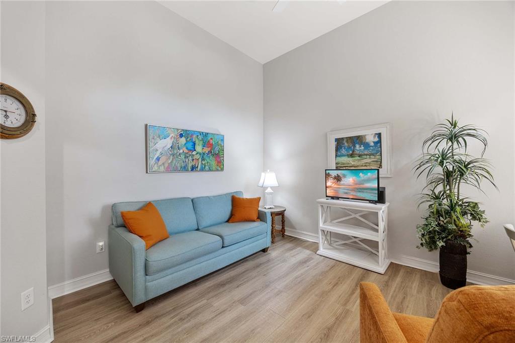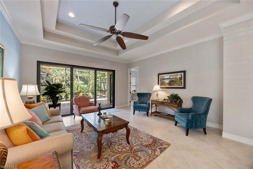 Experience the quiet serenity of this beautifully upgraded Napoli Villa by Stock Development, in the exclusive gated community of Lakoya at Lely Resort. Offering over 1,882 square feet of refined living space, this three-bedroom, two-bath home combines timeless elegance with modern comforts. Enjoy the convenience and security of natural gas, impact-resistant windows and doors, and a whole-home generator. The spacious layout includes a generous main suite, formal and casual dining areas, and a contemporary kitchen featuring upgraded white cabinetry with soft-close drawers, granite countertops and stainless steel appliances. Thoughtful design details throughout the home include a soaring 12-foot double tray ceiling in the main living area, crown molding, plantation shutters, eight-foot interior doors, elegant lighting fixtures and ceiling fans. Flooring includes diagonally set tile in the main living areas and rich wood floors in the second and third bedrooms. Go outside to an extended lanai, ideal for entertaining guests, with ample space to add a pool and spa if desired. Residents of Lakoya enjoy exclusive access to the award-winning Players Club & Spa at Lely Resort, offering 13 tennis courts, pickleball and bocce ball courts, two resort-style pools, a lap pool, full-service spa, state-of-the-art fitness center, and indoor and outdoor dining, including a lively tiki bar. Golf enthusiasts can take advantage of two public courses or opt for private membership at the prestigious Classics Golf and Country Club. This exceptional home offers a blend of luxury, comfort and lifestyle in one of Naples sought-after communities.