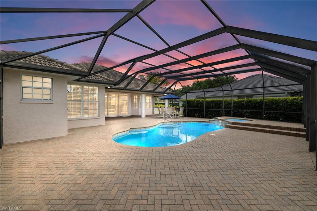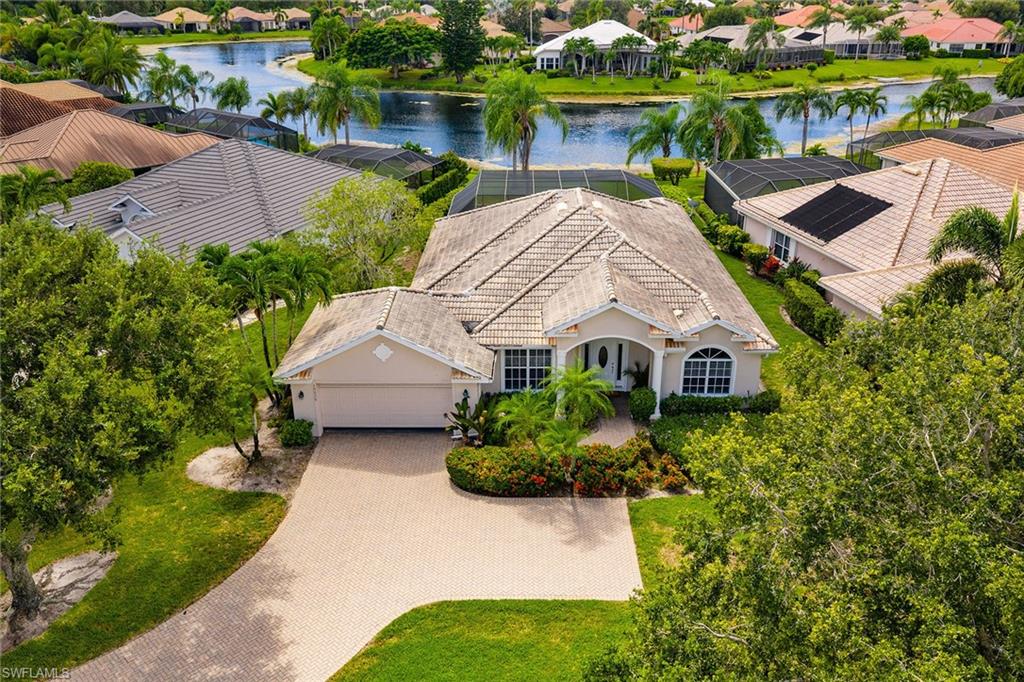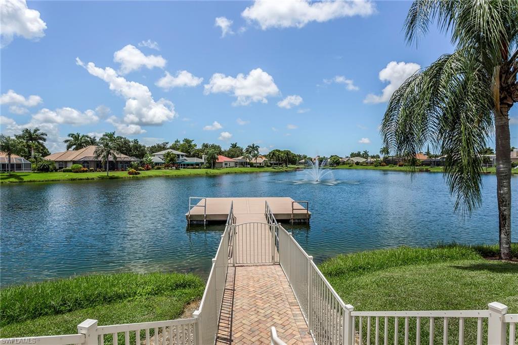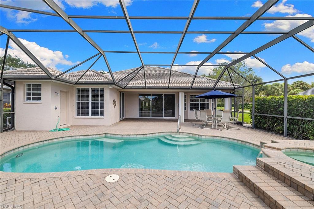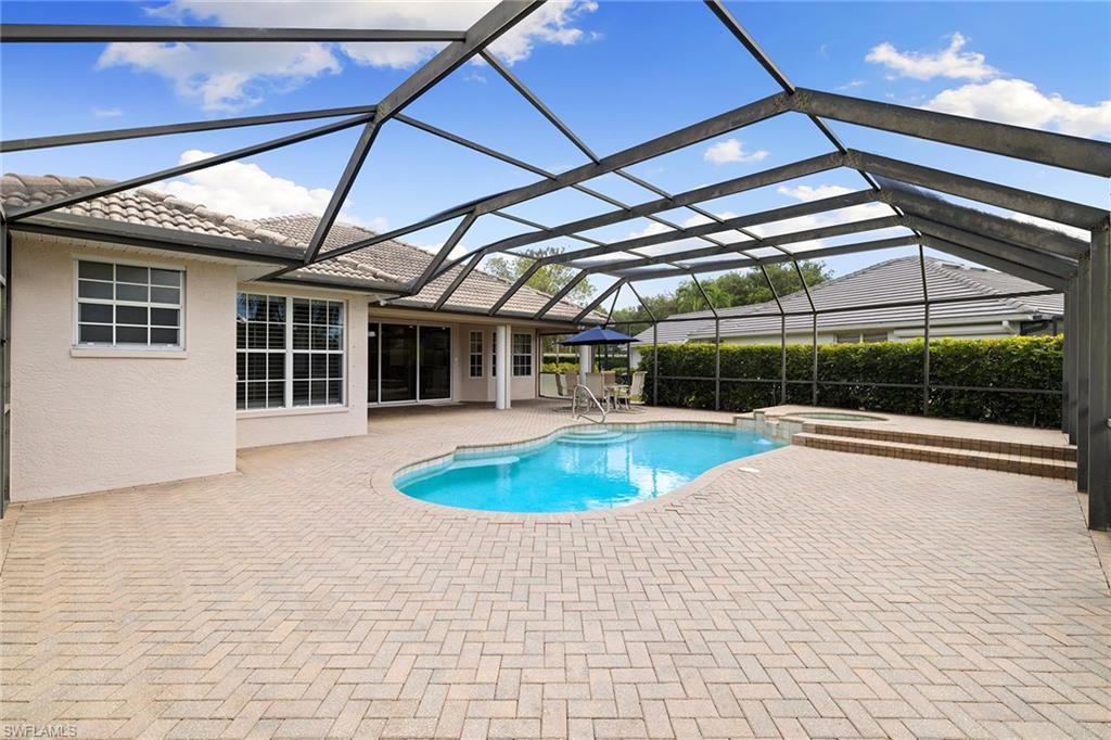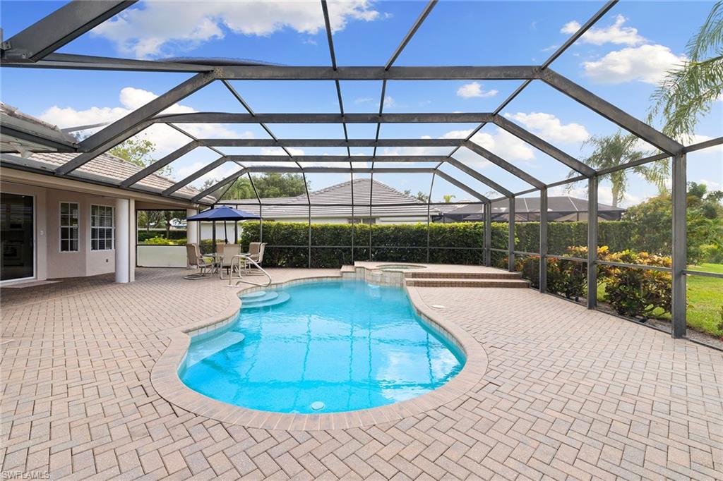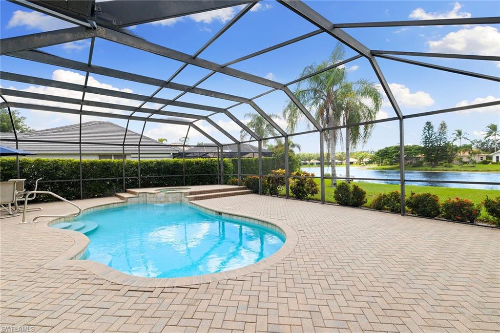 Discover refined lakefront living in the sought-after gated community of Longshore Lake in North Naples. This well-maintained three-bedroom residence with a den, two full baths and a half-bath at the pool area is ideally positioned on an oversized corner lot with peaceful lake views and a large yard. Designed for comfort, privacy and function, the home offers expansive indoor-outdoor living and a layout ideal for both entertaining and daily enjoyment. Freshly painted throughout, the light-filled interior features plantation shutters and an open concept that flows effortlessly from room to room. The spacious primary suite offers direct access to the covered lanai and includes dual vanities, a soaking tub, a walk-in shower and a generous walk-in closet. The kitchen is designed with a breakfast bar, an eat-in nook and updated lighting, while a formal dining area offers additional space for gatherings. The living room opens to the oversized lanai, which is complete with new ceiling fans, an extended paver layout, a covered outdoor dining zone and a southwest-facing pool and spa. The outdoor area also features a poolside half bath and a separate exterior shower for added convenience. Additional highlights include a laundry room with a wash tub, a two-car garage, expanded driveway parking and a comprehensive storm protection system with both manual and motorized shutters. Natural light flows in from all directions, and the home’s position offers captivating sunset views and everyday tranquility. Beyond the residence, Longshore Lake provides an unparalleled amenity-rich lifestyle centered around an 88-acre lake with seven miles of shoreline. Nearly every home in the community enjoys a water view, and residents can kayak, canoe or relax lakeside at the community dock. Private docks are also permitted, allowing direct water access from home. The Club at Longshore Lake serves as the social hub and offers a full suite of amenities, including formal and casual dining led by a Culinary Institute of America-trained chef. A full-time manager curates community events and private functions year-round. The clubhouse features a heated pool, a fitness center, nine Har-Tru tennis courts with night lighting, a tennis pro shop and professional instruction for all levels. Seasonal reciprocal agreements with nearby Naples communities offer additional access to golf and club amenities during the summer months. Mature tropical landscaping, scenic walking paths and a strong sense of community make Longshore Lake a distinctive neighborhood in the heart of North Naples. Ideally located just off Immokalee Road, the home offers proximity to top-rated North Naples schools, shopping, dining, cultural venues and Gulf beaches. Interstate 75 is moments away, providing quick access to surrounding areas and airports.