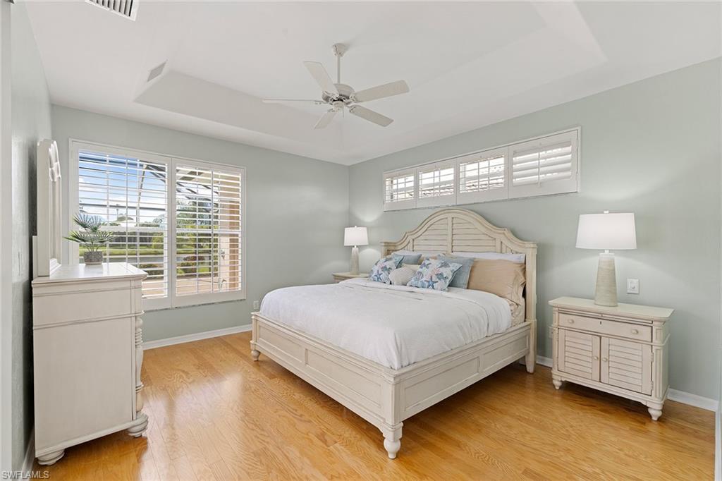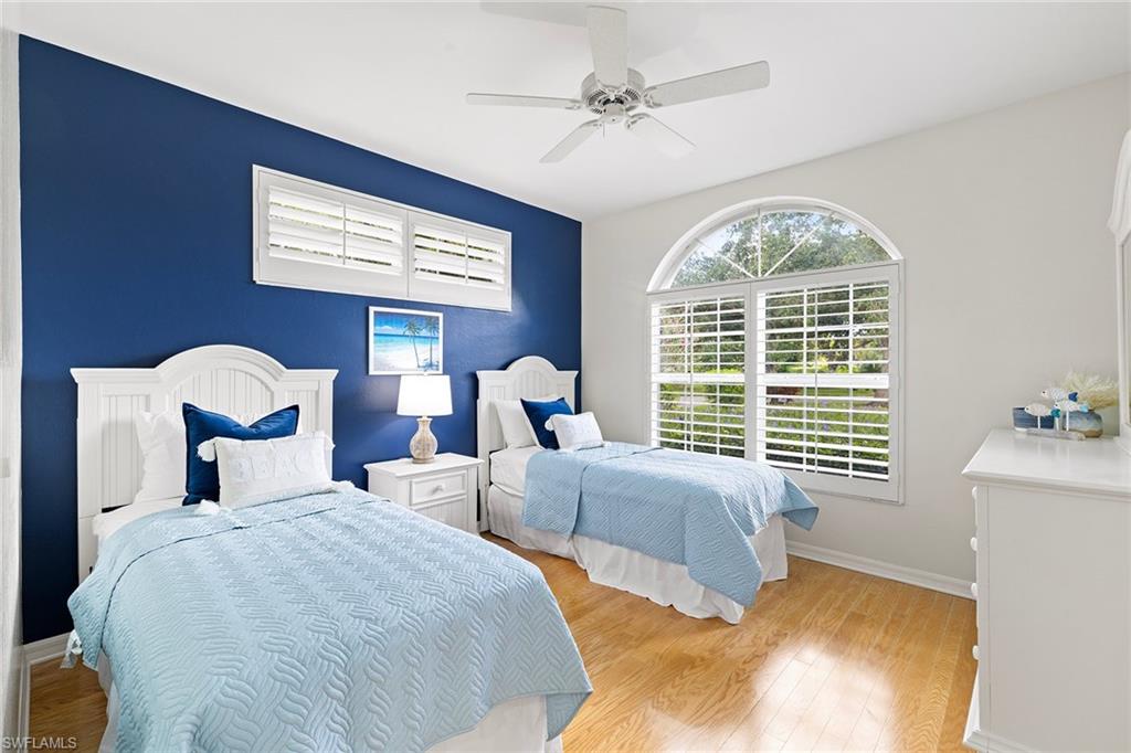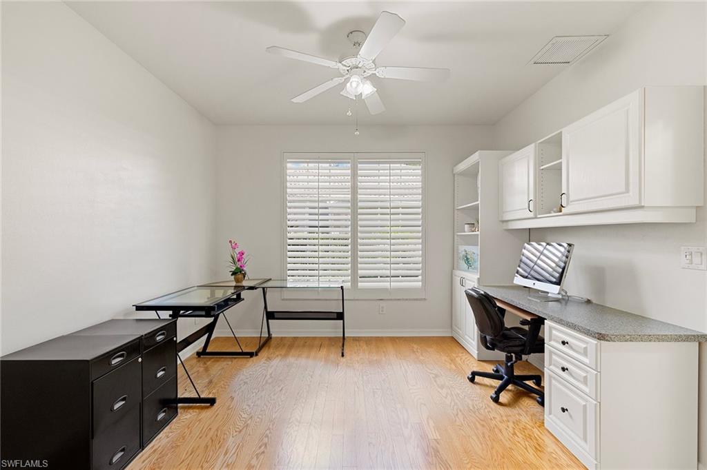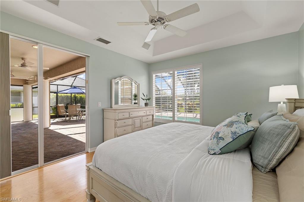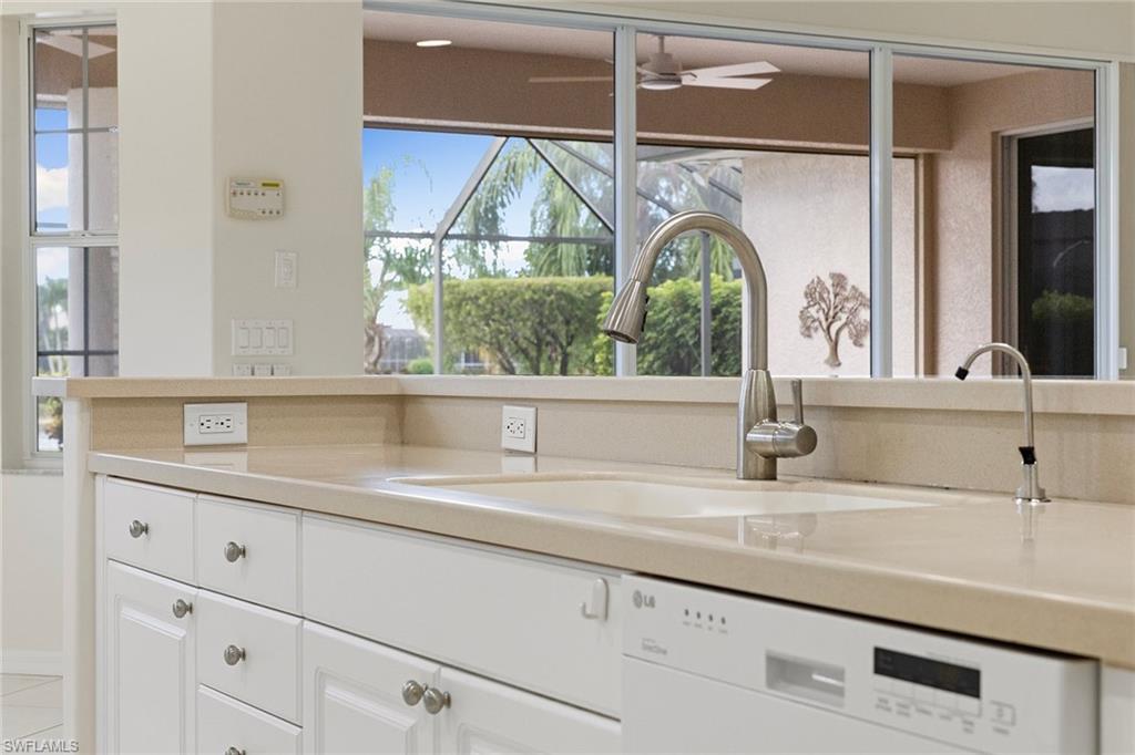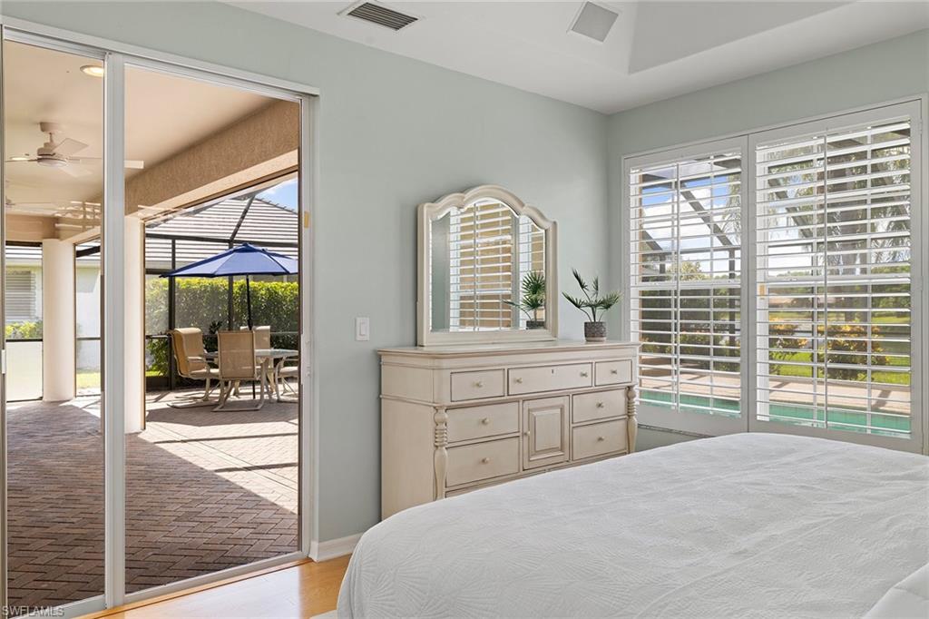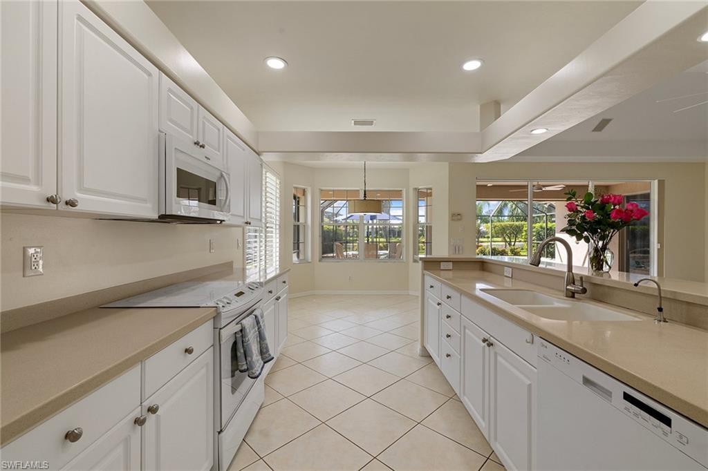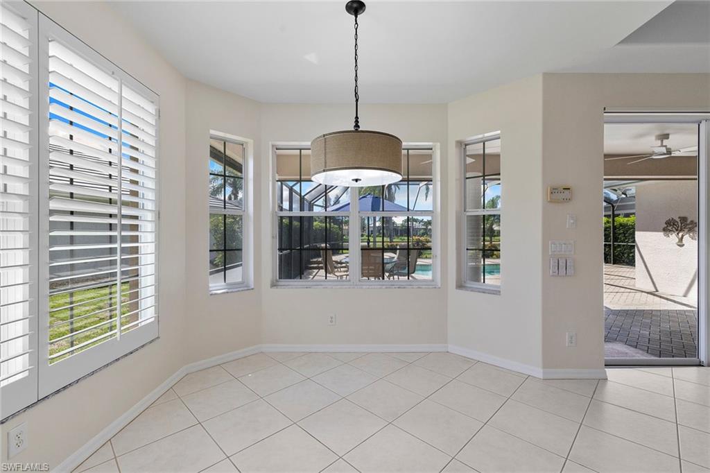 Discover refined lakefront living in the sought-after gated community of Longshore Lake in North Naples. This well-maintained three-bedroom residence with a den, two full baths and a half-bath at the pool area is ideally positioned on an oversized corner lot with peaceful lake views and a large yard. Designed for comfort, privacy and function, the home offers expansive indoor-outdoor living and a layout ideal for both entertaining and daily enjoyment. Freshly painted throughout, the light-filled interior features plantation shutters and an open concept that flows effortlessly from room to room. The spacious primary suite offers direct access to the covered lanai and includes dual vanities, a soaking tub, a walk-in shower and a generous walk-in closet. The kitchen is designed with a breakfast bar, an eat-in nook and updated lighting, while a formal dining area offers additional space for gatherings. The living room opens to the oversized lanai, which is complete with new ceiling fans, an extended paver layout, a covered outdoor dining zone and a southwest-facing pool and spa. The outdoor area also features a poolside half bath and a separate exterior shower for added convenience. Additional highlights include a laundry room with a wash tub, a two-car garage, expanded driveway parking and a comprehensive storm protection system with both manual and motorized shutters. Natural light flows in from all directions, and the home’s position offers captivating sunset views and everyday tranquility. Beyond the residence, Longshore Lake provides an unparalleled amenity-rich lifestyle centered around an 88-acre lake with seven miles of shoreline. Nearly every home in the community enjoys a water view, and residents can kayak, canoe or relax lakeside at the community dock. Private docks are also permitted, allowing direct water access from home. The Club at Longshore Lake serves as the social hub and offers a full suite of amenities, including formal and casual dining led by a Culinary Institute of America-trained chef. A full-time manager curates community events and private functions year-round. The clubhouse features a heated pool, a fitness center, nine Har-Tru tennis courts with night lighting, a tennis pro shop and professional instruction for all levels. Seasonal reciprocal agreements with nearby Naples communities offer additional access to golf and club amenities during the summer months. Mature tropical landscaping, scenic walking paths and a strong sense of community make Longshore Lake a distinctive neighborhood in the heart of North Naples. Ideally located just off Immokalee Road, the home offers proximity to top-rated North Naples schools, shopping, dining, cultural venues and Gulf beaches. Interstate 75 is moments away, providing quick access to surrounding areas and airports.