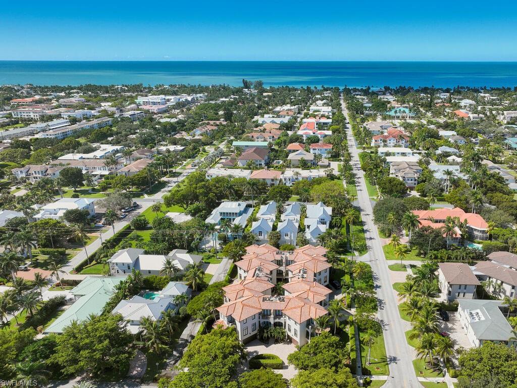 Moments from Naples Beach and the iconic Pier, this low-density eight-residence community sits perfectly between 5th Ave S and 3rd St S. Meticulously renovated, this 3-bedroom, 3-bath attached villa offers private, resort-style living with all the charm of Olde Naples. The main living level features soaring 10-foot ceilings, crown molding, refined millwork, and designer lighting. A light-filled, open layout flows from the living and dining areas to a gourmet kitchen with custom cabinetry, quartz counters, and luxury appliances. Tile flooring on the main level ensures easy mobility, while wood floors in bedrooms and hallways add warmth. Two-zone A/C and impact-resistant windows and doors provide comfort and peace of mind. Upstairs, the serene primary suite and two generous guest bedrooms, with private balcony access, create a restful retreat. The villa includes a two-car garage, a private elevator servicing each level, six balconies, and a lanai adjacent lush landscaping and a courtyard pool. Pet-friendly and moments from boutiques, galleries, Cambier Park, and the city’s finest dining, this home lives like a single-family residence with the ease of a luxury resort.