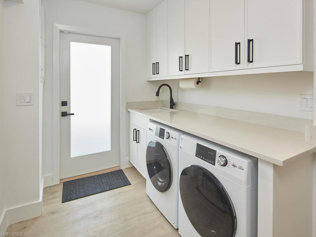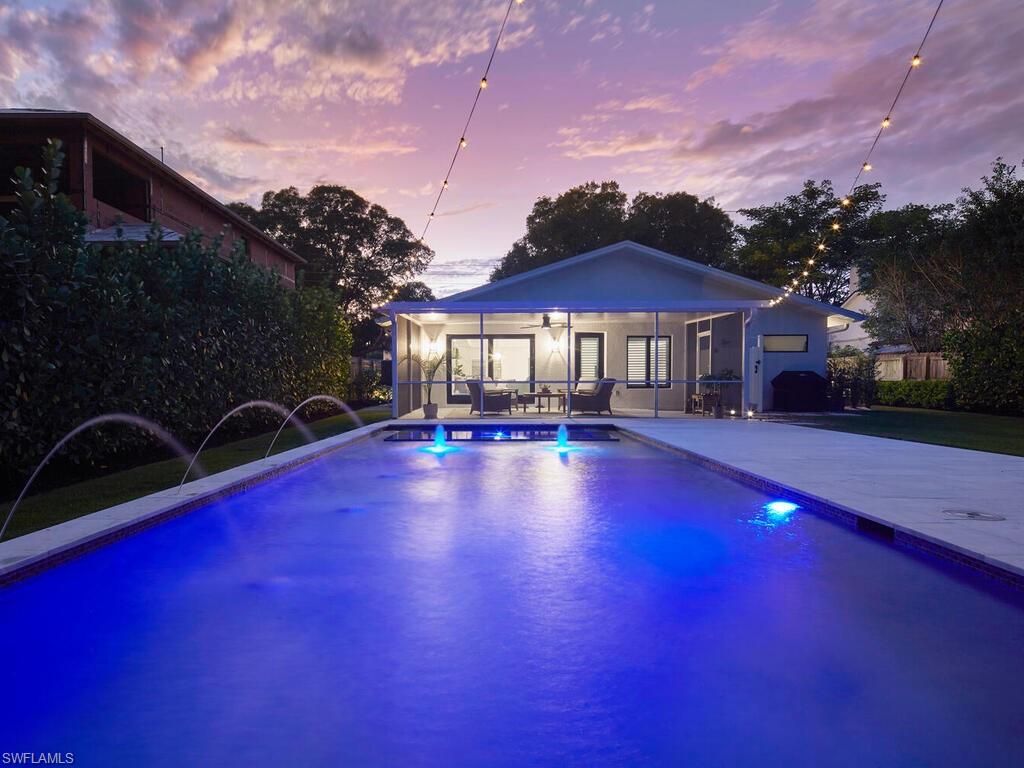 On halcyon 13th Street North in Lake Park, this fully renovated Florida cottage has been exquisitely reimagined with exceptional craftsmanship, attention to detail, and high-quality finishes throughout. Soaring 9-foot ceilings, oversized windows, and abundant natural light create an airy, open ambiance that enhances the home’s scale. The chef’s kitchen features Café appliances, custom cabinetry, and sleek countertops, flowing seamlessly into a sunlit living room and cozy family area. A thoughtfully designed modular wall encloses a third bedroom or home office when needed, providing privacy while maintaining a versatile, open floor plan when opened—ideal for entertaining or daily living. The serene owner’s suite, guest bedroom, and two-and-a-half remodeled baths are complemented by custom closets, and thoughtful built-ins. A screened lanai leads to a wonderfully large yard, a new pool, and spa all surrounded by lush landscaping. A gated area on the north side accommodates an additional car or golf cart. Completely renovated in 2022, to include new plumbing, electrical, impact-resistant windows and doors, ductwork, drywall, tile, fixtures, roof, A/C, and stylish other internal appointments - nothing overlooked! Exterior upgrades feature enhanced landscaping, selected grass, irrigation, and extensive lighting, creating a polished, turnkey residence that lives larger than its square footage. Minutes from Gulf beaches, boutique shopping, and fine dining, this Lake Park gem embodies elegant, versatile Old Naples living
