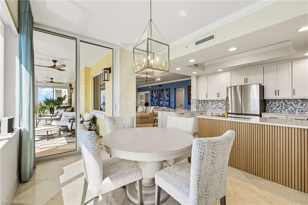 Prepare to be WOWED when entering this magnificently updated 9th floor condo in Jasmine Bay within prestigious West Bay Club, offering an unparalleled blend of luxury, modern design, and functionality. Recent upgrades include a brand-new chef’s kitchen with custom cabinets, stylish backsplash, new appliances, quartz countertops, and hooded range. This residence boasts meticulous attention to detail with premium finishes and thoughtful touches throughout. Enjoy breathtaking views and stunning sunsets over Estero Bay, and the Gulf of America through floor-to-ceiling sliding glass doors in the great room and master suite. Offering 3 spacious bedrooms and 3 bathrooms, two private balconies, and an expansive open floor plan, this home delivers a profound sense of spacious luxury. The residence features custom interior appointments like marble flooring, neutral finishes, tray ceilings, and electric hurricane shutters. Jasmine Bay amenities include a shared infinity edge pool, fitness room, gas grills, hot tub, cabanas and 4 private guest suites that are perfect overflow space for visiting family and friends. West Bay Club is a premier lifestyle community that is very inclusive, in that all of the amenities other than the private golf club are included in the HOA fees. These assets include a brand-new private Beach Club with restaurant/bar, chair and towel service directly on the Gulf, the newly renovated Bay House with resort style pool, Aqua Cafe restaurant and state of the art fitness center. Also, you will have access to the River Park with fishing pier, boat launch w/Gulf access, kayaks/canoes, playground, boat storage, basketball court, 6 pickleball courts, 8 Har-Tru clay court tennis facility, Bocce and 2 dog parks. Memberships are also available for the private 18 hole Pete and PB Dye golf course and clubhouse.