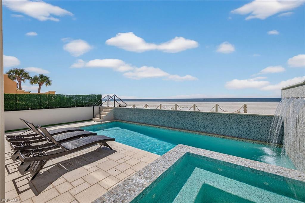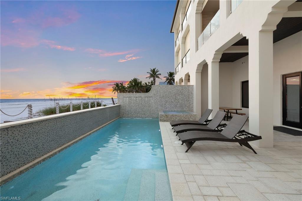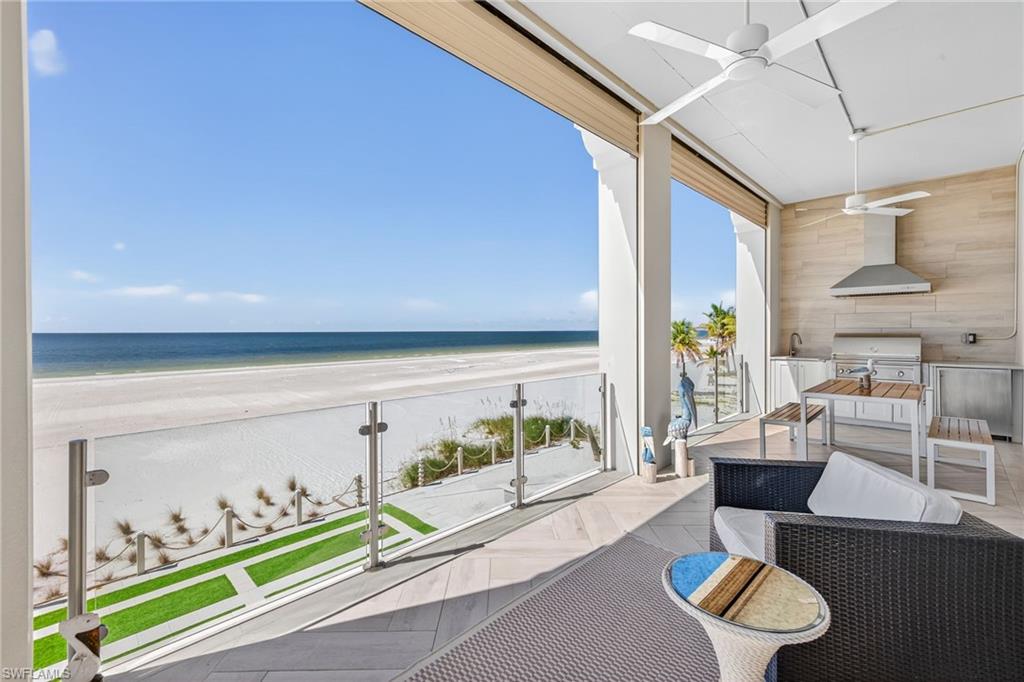 Situated on the most sought-after stretches of Ft Myers Beach, this Gulf-front residence delivers luxury beachfront living with a strong investment appeal. Away from the busyness of Times Square yet close to dining, Publix, and island amenities, the location offers both privacy and convenience. This home boasts a strong rental history and substantial year to date bookings make this a seamless turn-key investment. Inside, the open-concept floor plan is anchored by a chef’s kitchen featuring professional-grade appliances, custom cabinetry, and elegant quartz and granite finishes. Bright, airy living spaces flow seamlessly together, highlighted by driftwood-style tile flooring throughout, designer lighting, and soaring ceilings. Built to endure, the home offers concrete block construction, hurricane-impact glass, electric storm shutters, and a private elevator for convenience and peace of mind. The outdoor living space is equally impressive, with a resort-style pool and spa, cascading waterfall, a full outdoor kitchen, and glass railings that maximize panoramic Gulf views and watercolor sunsets. The home sits along the newly restored shoreline, thanks to the Estero Island Beach Renourishment Project, which enhances both beauty and long-term resilience. Whether as a luxurious private retreat or a premier rental investment, 3534 Estero Blvd stands as one of the finest opportunities on Fort Myers Beach. Schedule your private sunset showing today!