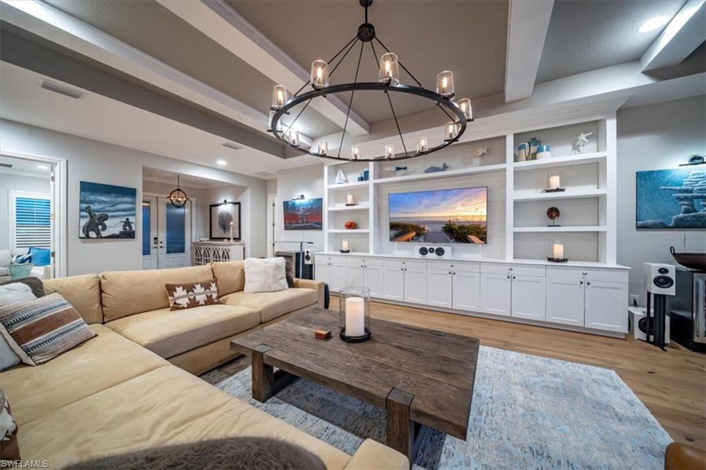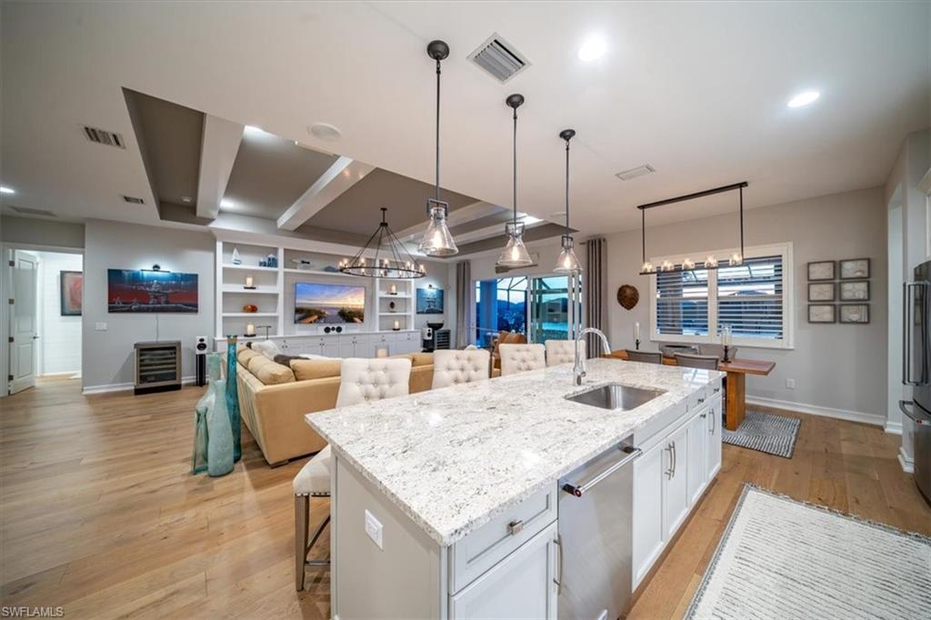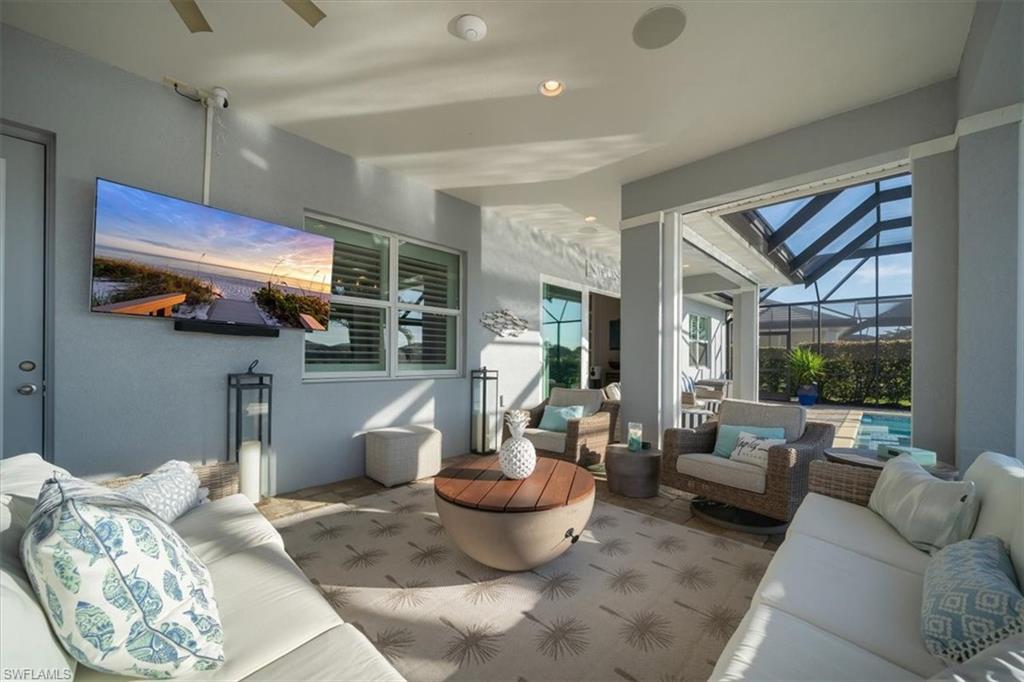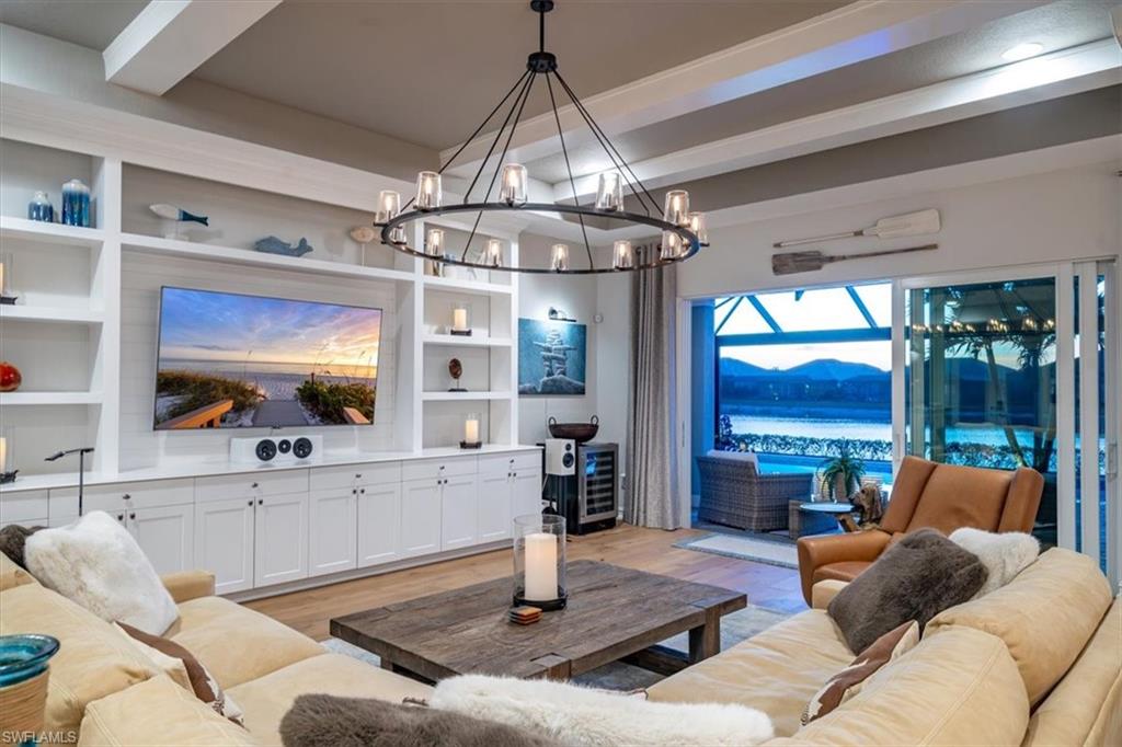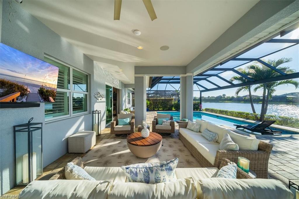 Experience the ultimate in luxury and resort-style living in this exceptional 2019 Stock-built Marathon 3 floor plan home. Perfectly situated on an oversized western exposure lot with breathtaking sunset views over the lake. Spanning 4,050 total sq. ft. of indoor and outdoor living space. Gorgeous wide plank white oak engineered hard wood flooring throughout much of the home. This meticulously upgraded home offers 3 bedrooms plus an office/den, 3.5 baths, soaring volume ceilings, and an open-concept great room with media wall with open and closed storage. The gourmet kitchen is a chef’s dream, featuring an expansive island, KitchenAid appliances, a walk-in pantry, tiled backsplash and so much more. The primary suite is a private retreat with custom his-and-hers closets and a spa-like bath with a freestanding tub and walk-in shower with seamless shower doors. Smart home technology allows you to control so much with apps and Alexa technology. Step outside to an oversized saltwater pool, integrated spa, summer kitchen, panoramic screened lanai, and custom pool lighting, plus electric storm smart fabric Kevlar screens to close off the covered lanai space which are all designed for relaxation and entertaining. Additional upgrades include a whole-home generator, impact windows, an upgraded electrical panel, an instant hot water heater, enhanced landscaping, and a 3-car extended garage with epoxy flooring, and electric keypad entry. This home is also able to add a dock at the rear of the property if you so desire. Nestled within the exclusive, gated community of Naples Reserve, this home offers low HOA fees and access to world-class amenities, including a resort-style pool, tiki bar with food and beverage service, state-of-the-art fitness center, bocce, pickleball, tennis, sand volleyball courts, a lakefront beach, marina, kayak and electric boat rentals, scenic walking and biking trails, two dog parks, and a vibrant social calendar managed by an on-site Lifestyle Director. Whether seeking tranquility or an active social scene, Naples Reserve delivers the perfect balance. This move-in-ready masterpiece offers an unparalleled lifestyle.