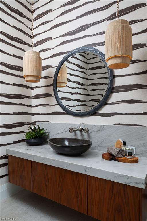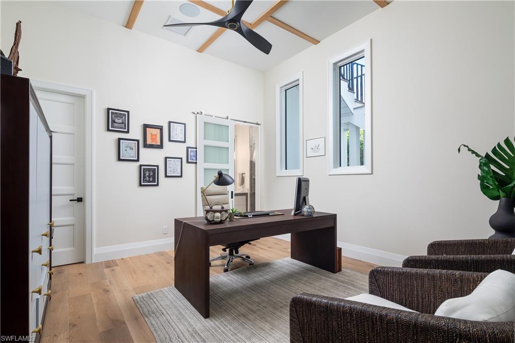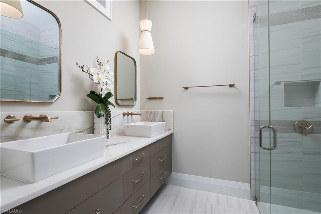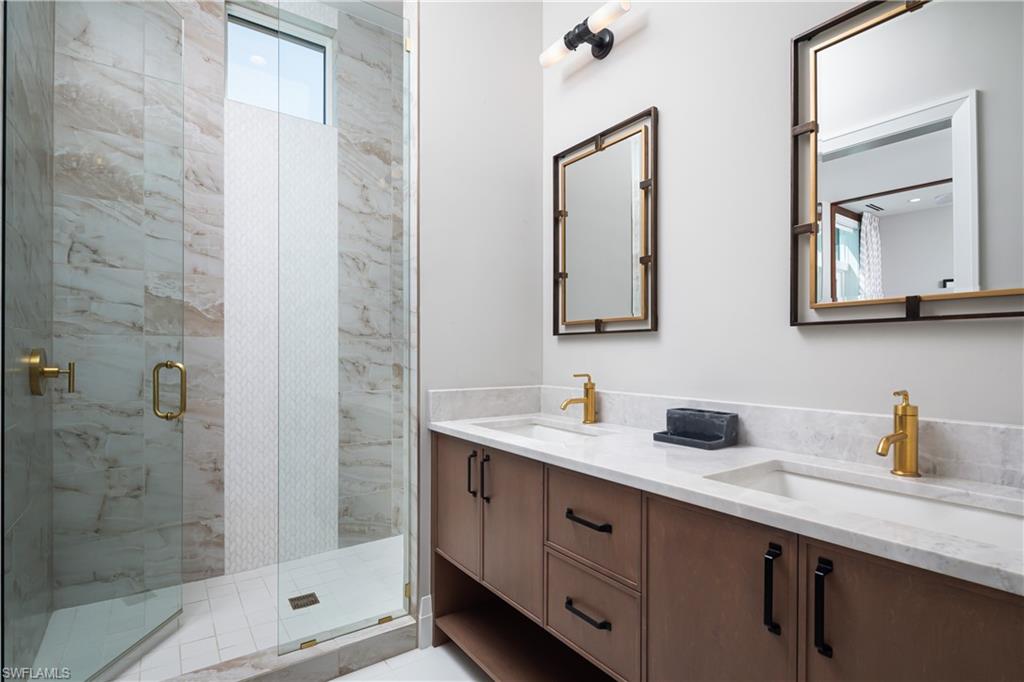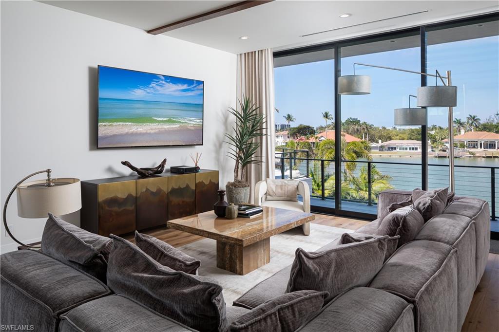 One-of-a-kind masterpiece built in December 2022 (nearly 2023) in the highly sought-after Moorings neighborhood of Naples with breathtaking bay views. Just a 10-minute walk (0.4 miles) to the beach, this architectural marvel offers an unparalleled coastal living experience. As a Moorings resident, you are eligible for membership (at a very low cost) to the exclusive Moorings Beach Park for effortless beach access. This modern estate was custom-built by the award-winning Potter Homes & expertly designed by Adelyn Charles Interior. Designed for the utmost privacy & exclusivity featuring electric motorized entry gates, a solid fortress-like construction of all concrete block, hurricane impact windows/doors throughout & electric hurricane shutters. Every aspect of this property has been crafted with the finest materials & attention to detail, including stunning oak flooring, reverse tray ceilings with wood paneling/uplighting & soaring 14-ft ceilings. Part of the exclusive “Golden 50” in the Moorings, with direct, bridge-free access to the Gulf in just 5 minutes via Doctors Pass. For boating enthusiasts, the home is equipped with dual lifts—one featuring a 30 ft boat lift with a 16,000 lb weight capacity, and the other for dual jet skis. The outdoor living space is a true paradise, with a luxurious pool and spa, fireplace, sun deck with built-in firepit, and a fully equipped summer kitchen perfect for al fresco dining. With 12 ft pocketing floor-to-ceiling sliders, the space effortlessly blends the interior and exterior for seamless waterfront living. Inside, this expansive estate offers 6,900 sq ft under air with 6 bedrooms, 6 full bathrooms (all with dual vanities), 3 half baths, a separate guest house, 3 laundry rooms & a 3-car garage. The state-of-the-art kitchen is a chef’s dream, with custom white cabinetry, dual wood islands with waterfall concrete overlays, high-end Thermador appliances & a butler’s pantry. The main-level primary suite is a private retreat, complete with custom wood ceilings, a wet bar, massive walk-in closets, and a spa-like bathroom with dual vanities, dual water closets, a generous shower with multiple showerheads, dual benches & a separate soaking tub. Upstairs, a spacious living room area with a wet bar, island with bar seating & 3 bedrooms create the perfect space for relaxation, while a sundeck provides breathtaking water views. For ultimate guest privacy, the separate guest villa offers a bedroom, ensuite bathroom, laundry room, full kitchen & private sundeck—ideal for hosting guests. Another highlight of this home is the rooftop observation deck offering sweeping views of the Gulf & Bay—perfect for sunset vistas. Additional features include a private elevator, buried gas propane tank, electric screens, lush landscaping, a spacious front yard ideal for pets & more. An extraordinary sanctuary in one of Naples' most coveted communities, The Moorings, this residence is truly a showcase of visionary design.