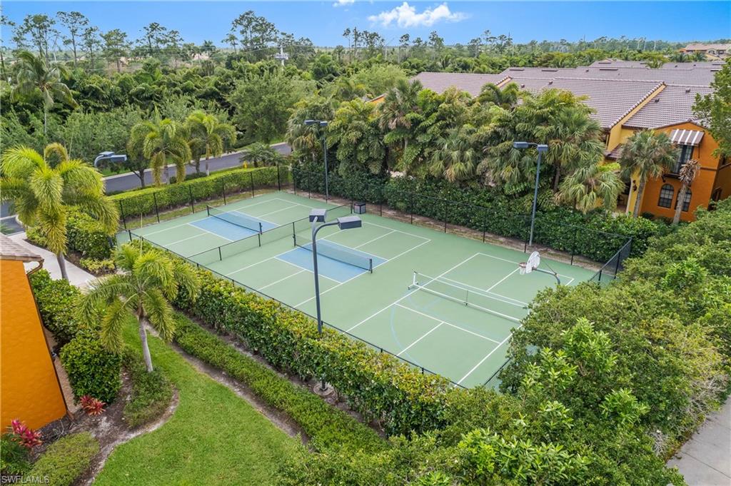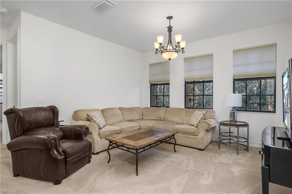 Lovely Santa Rosa townhouse features three bedrooms and a den. Corner unit allows for windows on each side of the home for a lighter and brighter interior. This floor plan is one of the largest in Ole' with 2084 sq. ft. First floor offers a generous great room, kitchen with granite counters, dining room, convenient powder room and walk-in pantry. The second floor provides three bedrooms, two full baths, generous family gathering area and balcony. Second floor also includes a loft stye area for office with built in desk. Corner unit with foliage on both sides. Private entrance to the two car garage. Hurricane level windows and doors for storm protection. The Village Center is conveniently located one block away from this home. The Village Center is ideal for relaxation or socializing with friends and neighbors. Center provides resort style pool, kiddie pool, spa, volleyball, bocce, fitness center, pickleball, basketball, tennis, movie theatre, and on site pub and ice cream parlor. A short drive to stunning beaches, amazing restaurants, unique shopping and many cultural activities. Multiple golf courses nearby. Ole' at Lely Resort offers the ultimate Florida Lifestyle!
