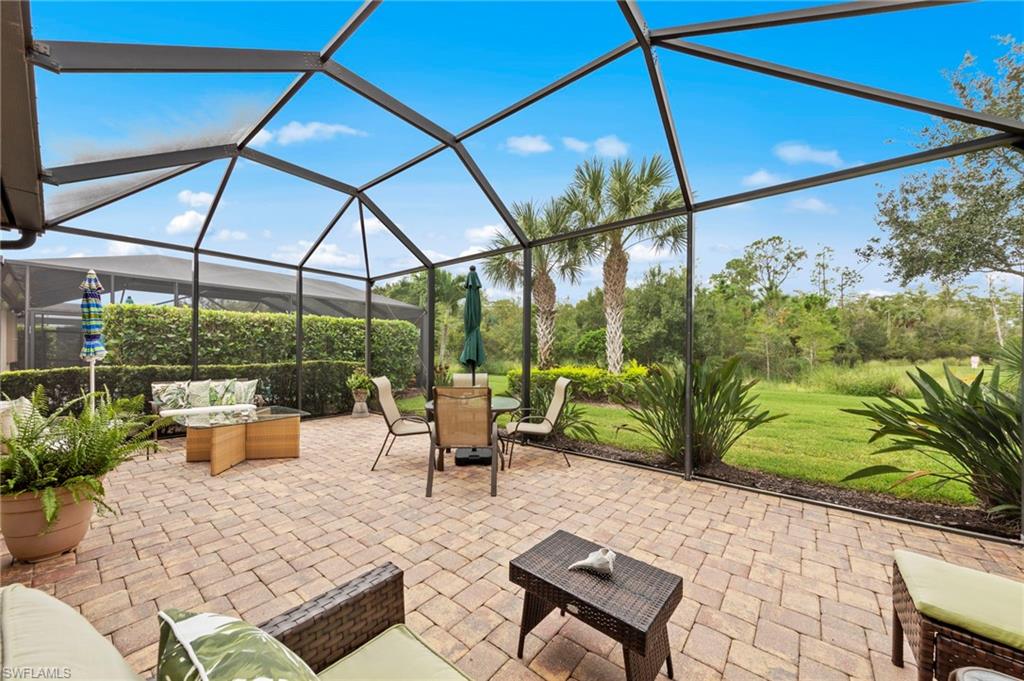 A one year home warranty included with this Ultra-Private Retreat with Flexible Living Space. Tucked away with green space in both the front and back, this 3-bedroom + home office, 2-bath residence offers rare privacy and serene views. The open great room is perfect for both entertaining and everyday living, blending natural light with a seamless flow to the outdoors. Step onto the extended screened-in lanai to relax, unwind, and soak in the sights and sounds of nature. With 1,906 square feet, a split-bedroom layout, spacious office/flex room, and tranquil backyard retreat, this home combines comfort, functionality, and a coveted private setting. Furnishings negotiable! The Preserve at Corkscrew is one of Estero’s most desirable gated communities, blending elegant living with the natural beauty of Southwest Florida. This impeccably maintained neighborhood features lush landscaping, shimmering lakes, and resort-style amenities, including a clubhouse, fitness center, pool, tennis and pickleball courts, and inviting social spaces. Perfectly situated just minutes from I-75, The Preserve at Corkscrew offers easy access to Southwest Florida International Airport, Miromar Outlets, Coconut Point, fine dining, top-rated golf courses, and the gorgeous Gulf beaches. Its prime location provides a dynamic lifestyle surrounded by the best of Estero living.
