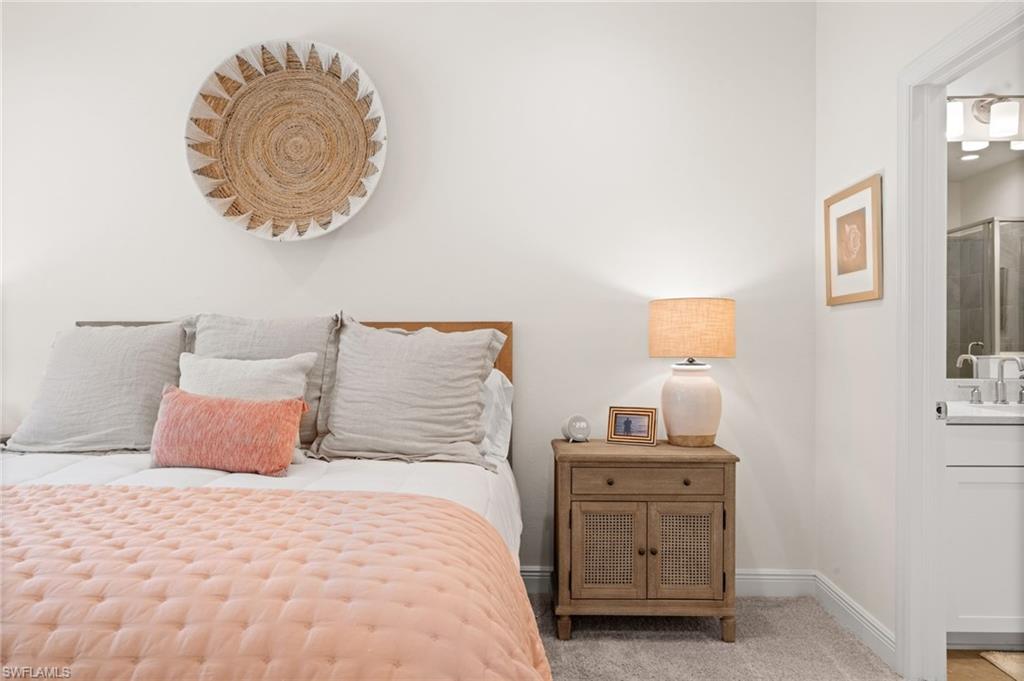 Welcome to your private retreat in the sought-after community of Richmond Park! This beautifully maintained 3-bedroom, 2-bath coach home with 2-car garage, offers the perfect blend of comfort, style, and convenience. Step inside to an open, airy floor plan designed for modern living and entertaining. The kitchen features stainless steel appliances, elegant granite countertops, and a large island with seating—perfect for casual dining or hosting guests. Relax in the spacious primary suite, complete with a custom walk-in closet and a luxurious bath showcasing double vanities and a large glass-enclosed shower. Enjoy peaceful evenings on the screened lanai overlooking the lush, landscaped grounds. Richmond Park residents enjoy access to resort-style amenities, including a sparkling pool, cabanas, and beautifully maintained common areas. Ideally located just minutes from shopping, dining, golf, and Naples’ world-famous beaches—this is Florida living at its finest!