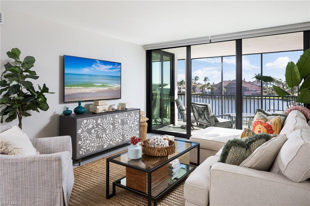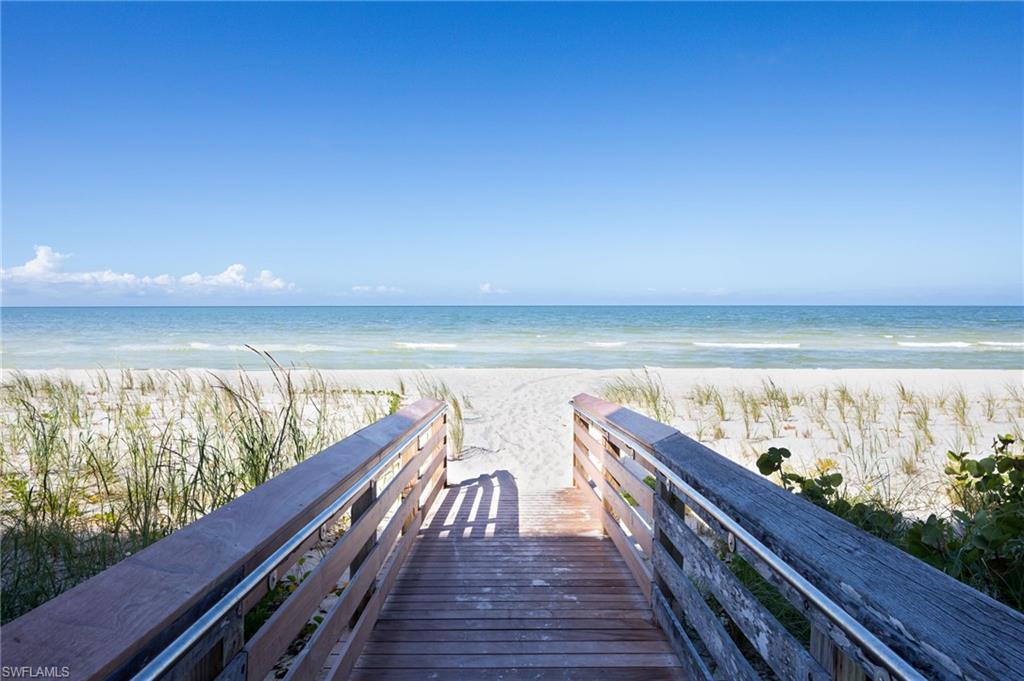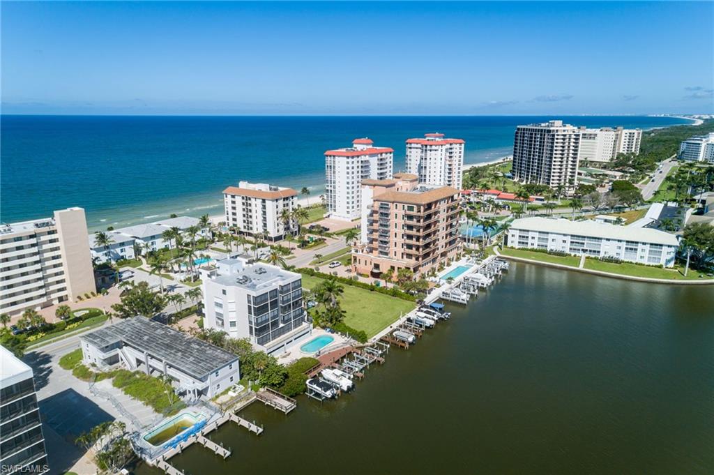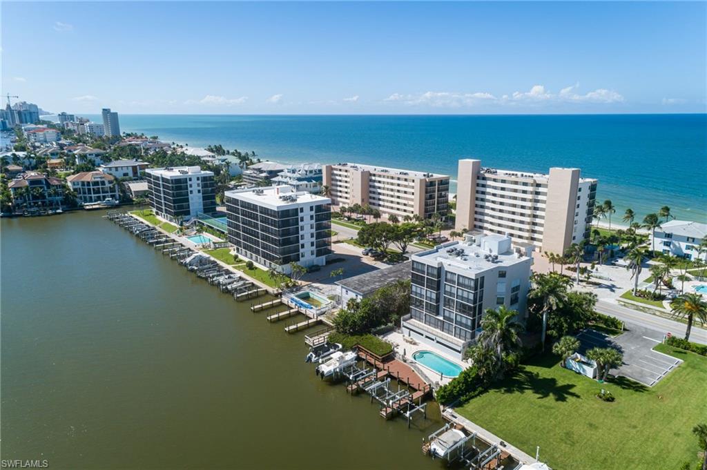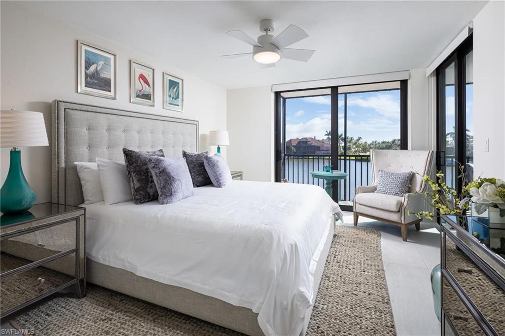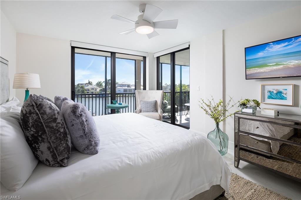 Steps from Delnor Wiggins State Park—recently named one of the Top Beaches in the U.S. by Dr. Beach—this Bayfront Coastal Retreat is the epitome of coastal living! Beautifully renovated end-unit featuring 2 bedrooms, 2 bathrooms, and a versatile den/office that can easily serve as a third bedroom. Sun-drenched interiors showcase sweeping bay views with glimpses of the Gulf, reflecting soft hues of sky, turquoise waters, and sandy shores throughout. The open kitchen is designed for both function and style, offering expanded water views, abundant cabinetry, modern countertops, stylish hardware, stainless steel appliances, and a Juliette balcony perfect for morning coffee or evening cocktails. Both bathrooms feature designer tile and spa-like finishes, while tile flooring, elegant lighting, and tasteful furnishings create a serene, coastal atmosphere. Brand-new AC installed in 2025—move right in and start enjoying immediately! This charming boutique building offers just 9 exclusive residences, ensuring privacy and a true sense of community. Assigned parking, extra storage, and direct beach access just 70 steps away make seaside living effortless. Spend your days in the surf, unwind at the bayside saltwater pool, and watch dolphins play or boats glide by as the sun sets. Perfectly positioned to walk to Naples landmarks like the Turtle Club, The Light House, and the Ritz Carlton – Gumbo Limbo, or bike to Mercato for shopping, dining, arts, and nightlife. With Whole Foods, Trader Joe’s, Artis-Naples, and Waterside Shops just minutes away, this property offers the perfect blend of tranquility, convenience, and premier coastal lifestyle.
