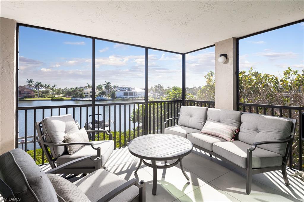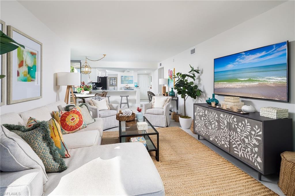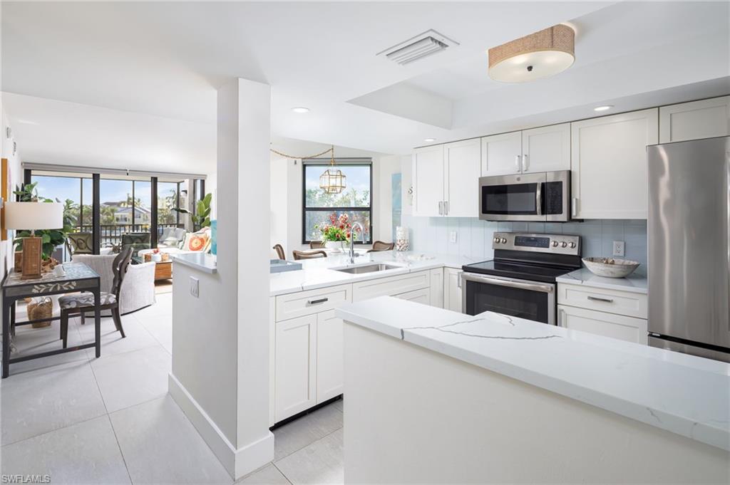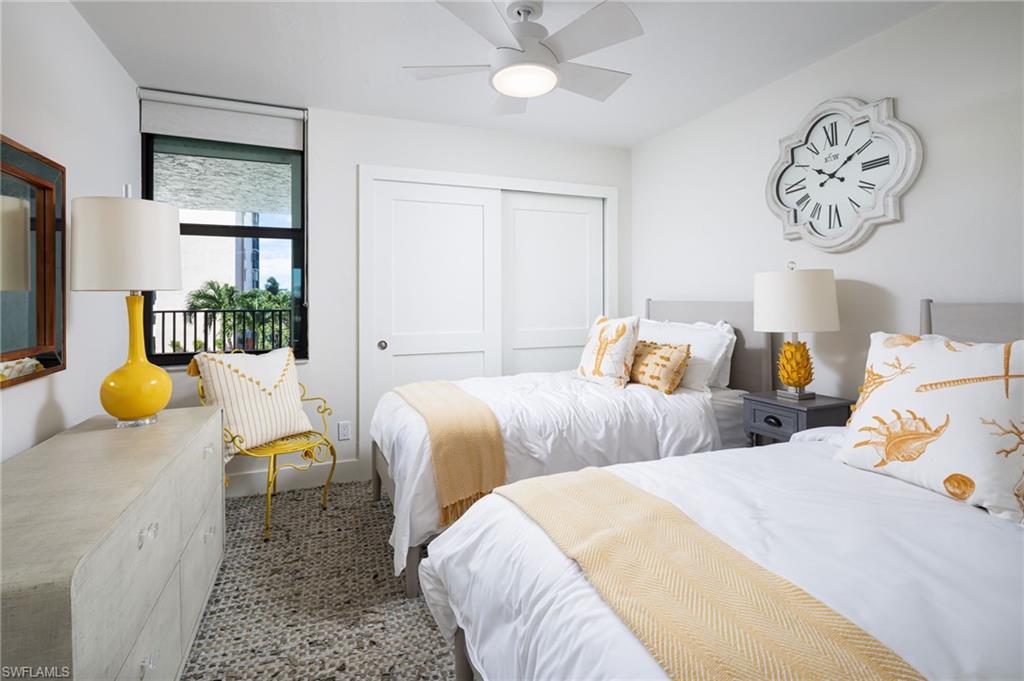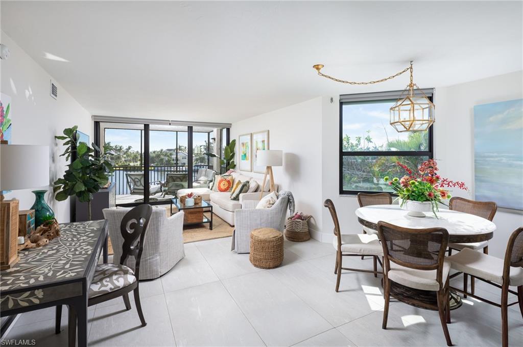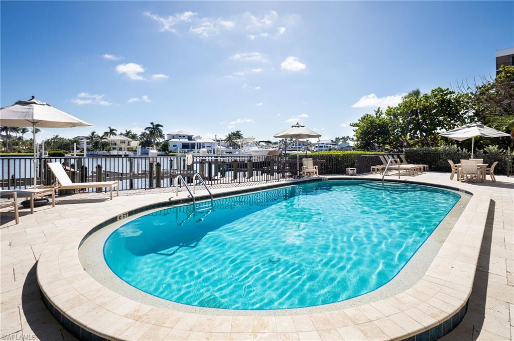 Steps from Delnor Wiggins State Park—recently named one of the Top Beaches in the U.S. by Dr. Beach—this Bayfront Coastal Retreat is the epitome of coastal living! Beautifully renovated end-unit featuring 2 bedrooms, 2 bathrooms, and a versatile den/office that can easily serve as a third bedroom. Sun-drenched interiors showcase sweeping bay views with glimpses of the Gulf, reflecting soft hues of sky, turquoise waters, and sandy shores throughout. The open kitchen is designed for both function and style, offering expanded water views, abundant cabinetry, modern countertops, stylish hardware, stainless steel appliances, and a Juliette balcony perfect for morning coffee or evening cocktails. Both bathrooms feature designer tile and spa-like finishes, while tile flooring, elegant lighting, and tasteful furnishings create a serene, coastal atmosphere. Brand-new AC installed in 2025—move right in and start enjoying immediately! This charming boutique building offers just 9 exclusive residences, ensuring privacy and a true sense of community. Assigned parking, extra storage, and direct beach access just 70 steps away make seaside living effortless. Spend your days in the surf, unwind at the bayside saltwater pool, and watch dolphins play or boats glide by as the sun sets. Perfectly positioned to walk to Naples landmarks like the Turtle Club, The Light House, and the Ritz Carlton – Gumbo Limbo, or bike to Mercato for shopping, dining, arts, and nightlife. With Whole Foods, Trader Joe’s, Artis-Naples, and Waterside Shops just minutes away, this property offers the perfect blend of tranquility, convenience, and premier coastal lifestyle.