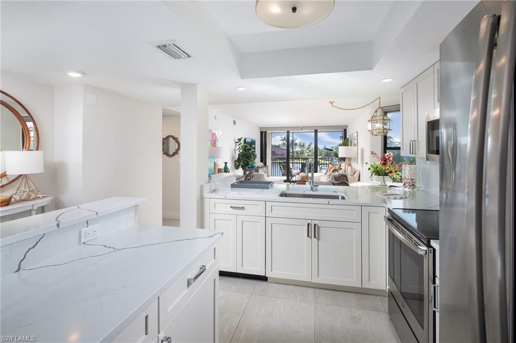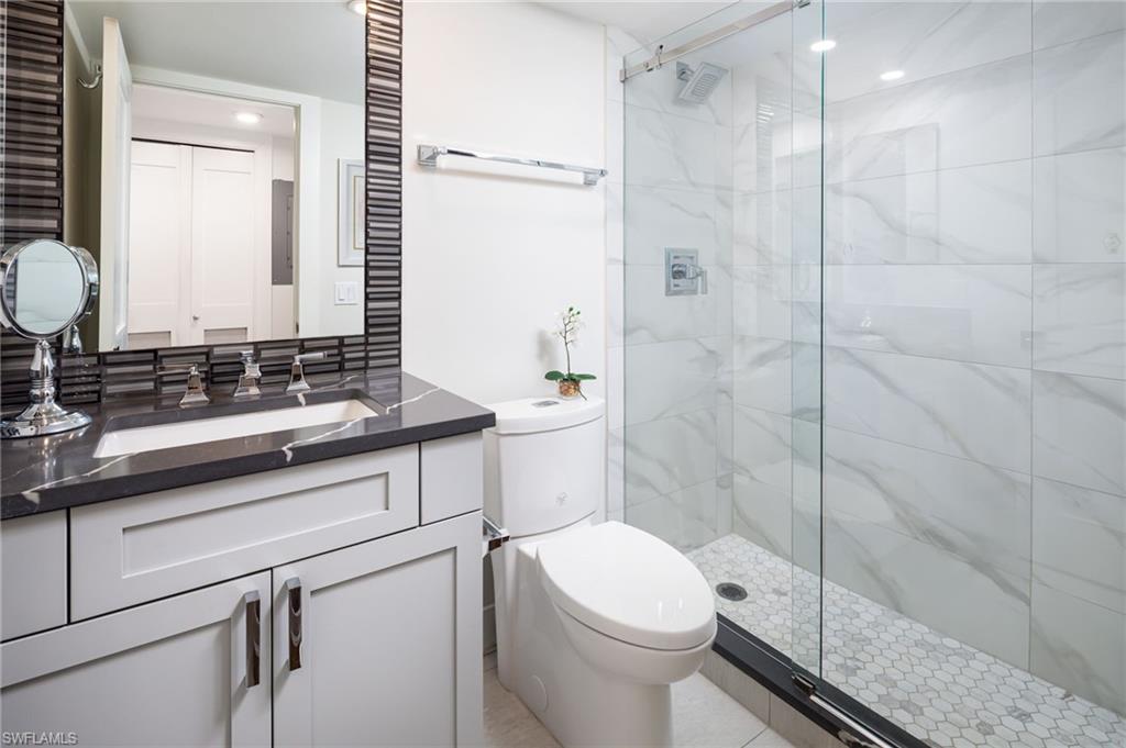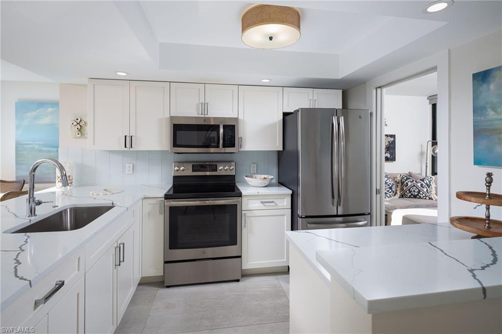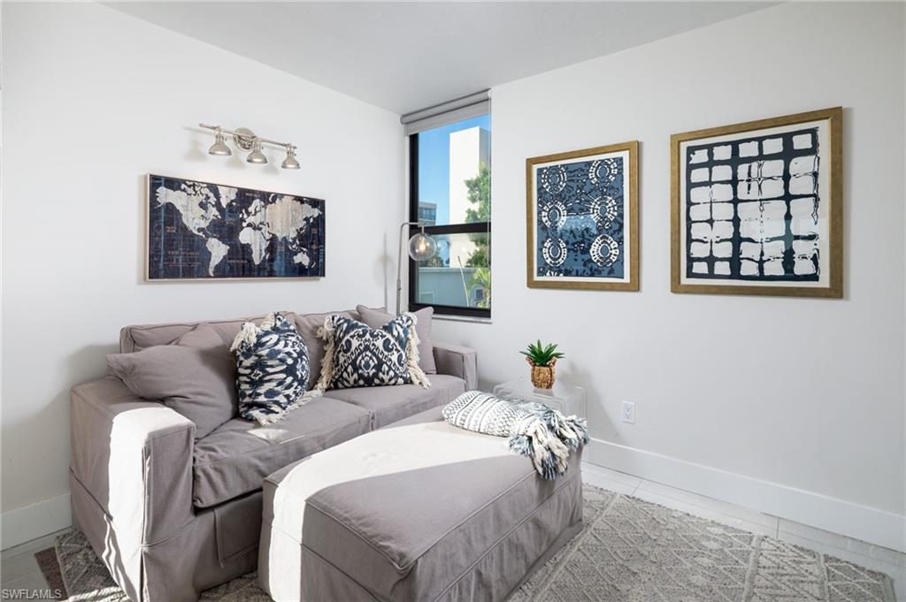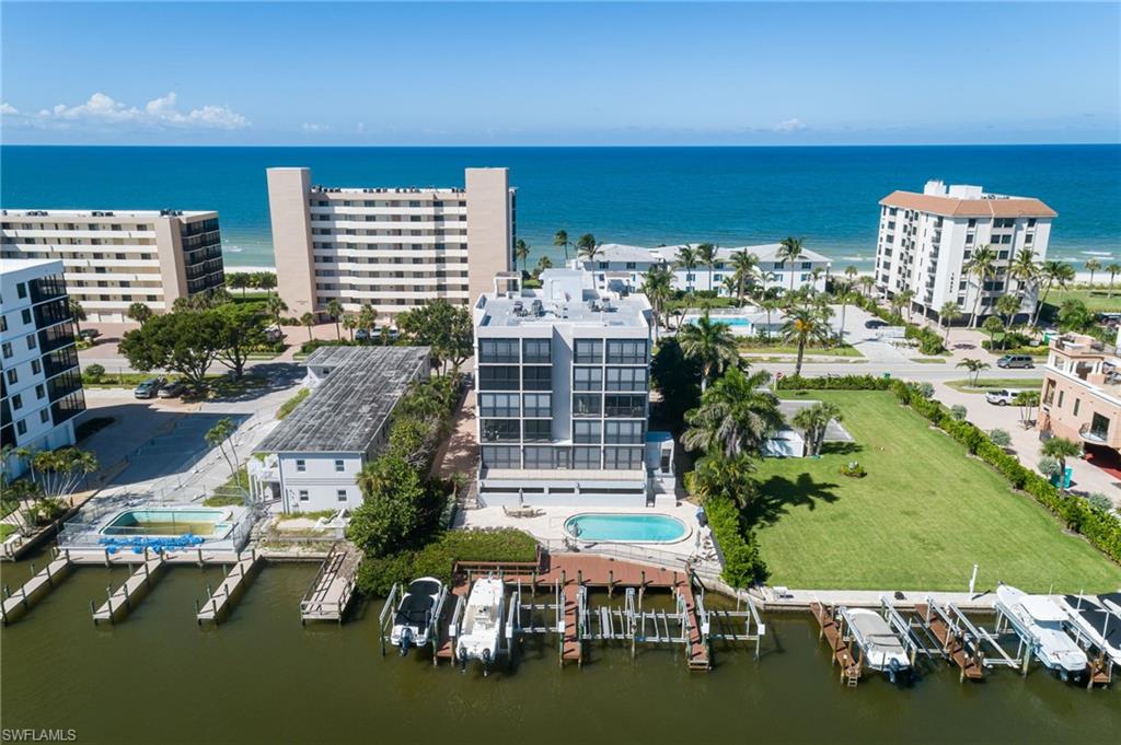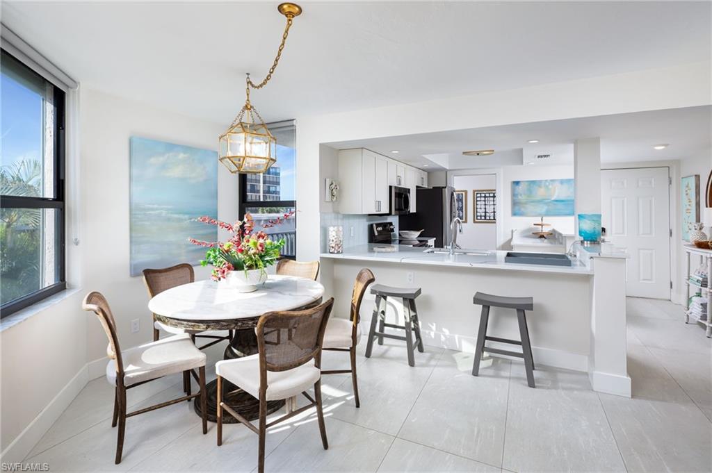 Steps from Delnor Wiggins State Park—recently named one of the Top Beaches in the U.S. by Dr. Beach—this Bayfront Coastal Retreat is the epitome of coastal living! Beautifully renovated end-unit featuring 2 bedrooms, 2 bathrooms, and a versatile den/office that can easily serve as a third bedroom. Sun-drenched interiors showcase sweeping bay views with glimpses of the Gulf, reflecting soft hues of sky, turquoise waters, and sandy shores throughout. The open kitchen is designed for both function and style, offering expanded water views, abundant cabinetry, modern countertops, stylish hardware, stainless steel appliances, and a Juliette balcony perfect for morning coffee or evening cocktails. Both bathrooms feature designer tile and spa-like finishes, while tile flooring, elegant lighting, and tasteful furnishings create a serene, coastal atmosphere. Brand-new AC installed in 2025—move right in and start enjoying immediately! This charming boutique building offers just 9 exclusive residences, ensuring privacy and a true sense of community. Assigned parking, extra storage, and direct beach access just 70 steps away make seaside living effortless. Spend your days in the surf, unwind at the bayside saltwater pool, and watch dolphins play or boats glide by as the sun sets. Perfectly positioned to walk to Naples landmarks like the Turtle Club, The Light House, and the Ritz Carlton – Gumbo Limbo, or bike to Mercato for shopping, dining, arts, and nightlife. With Whole Foods, Trader Joe’s, Artis-Naples, and Waterside Shops just minutes away, this property offers the perfect blend of tranquility, convenience, and premier coastal lifestyle.