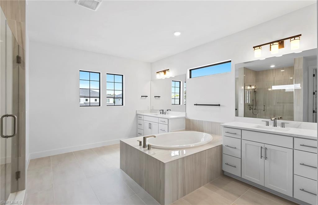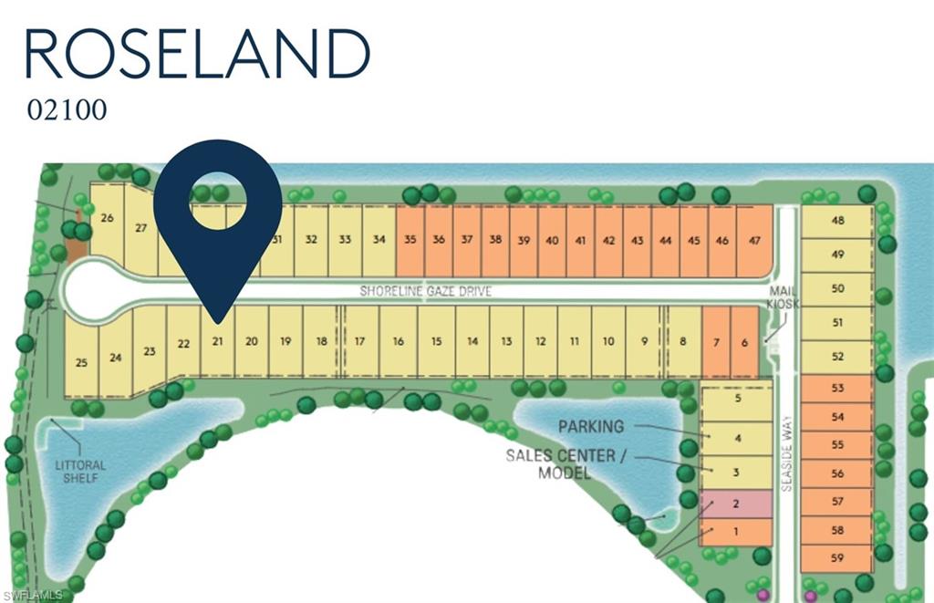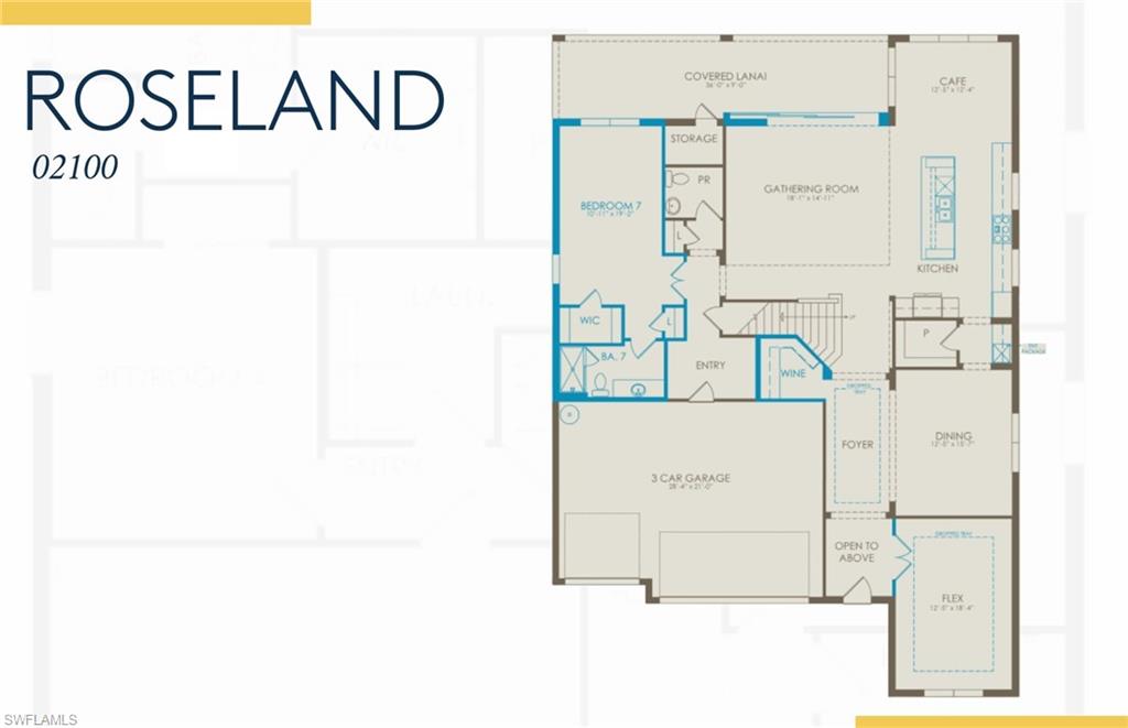 The Roseland is an Estate style two story home with amazing upgrades throughout. This plan impresses with a beautiful wine cave, custom pool and spa, main level ensuite, upstairs loft, and a spacious owner's suite. The large lanai coupled with the custom pool and lakeview makes for your own oasis right in your own backyard. Bonita Del Sol has something for everyone, in a premier Bonita Springs location close to almost everything. Bonita Del Sol will have 248 future doors, a community pool, a walking path, low HOA, & NO CDD!