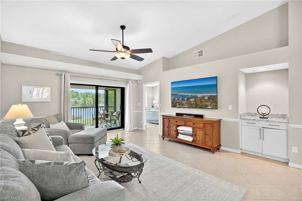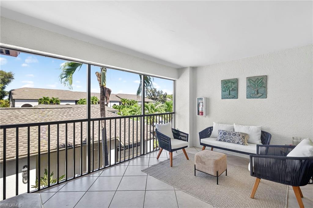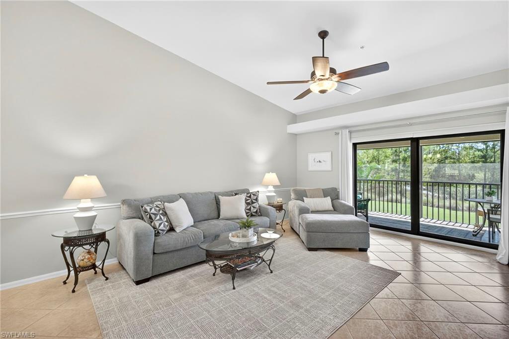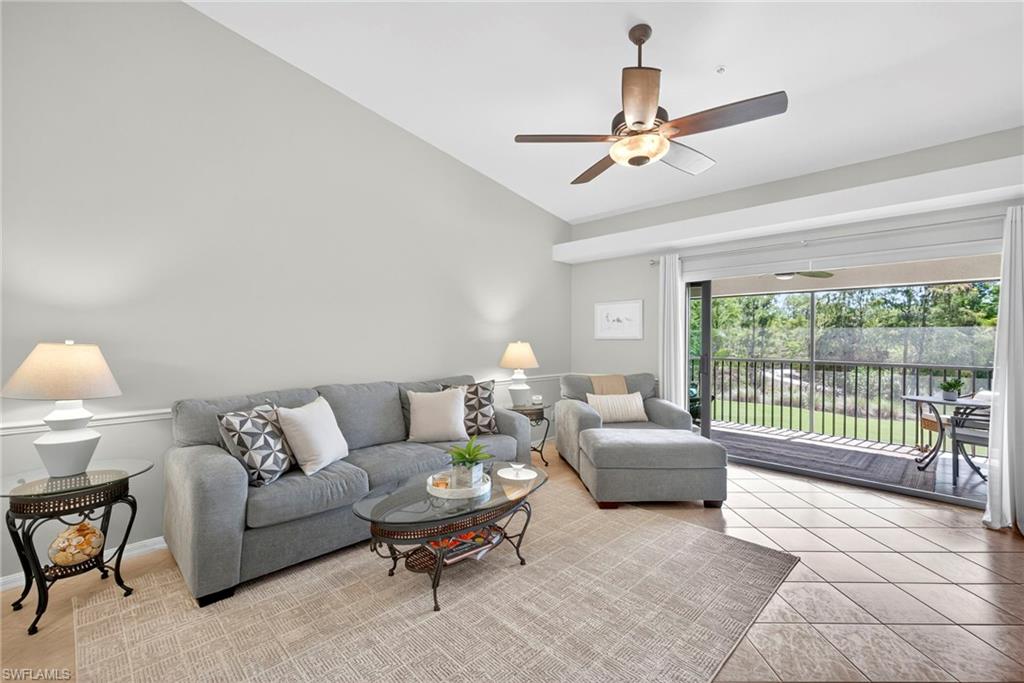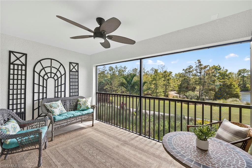 GOLF INCLUDED! Enjoy resort-style living in this beautifully updated 2-bedroom, 2-bath plus den second-floor veranda located in the highly desirable Naples Heritage Golf & Country Club. Set on 550 acres with over 250 acres of preserves, lakes, and open space, Naples Heritage offers the lowest density of any community of its kind in Naples. This remarkable home features a split floor plan with a spacious primary suite showcasing a bay window with beautiful golf course views, private lanai access, and two walk-in closets. Privacy is ensured for guests with a sliding door separating the guest suite. The den with pocket doors is perfect for use as an office or third bedroom. The open living and dining area flows seamlessly to the rear lanai, offering stunning views of the 18th tee, lake, and natural preserves. The eat-in kitchen opens to a large front lanai for additional outdoor dining and relaxation. Additional highlights include tile flooring throughout, fresh paint, updated finishes, and an included garage. The building has been recently upgraded with new impact doors and windows, exterior paint, new screens, and bronze railings. Naples Heritage residents enjoy a championship golf course, driving range and putting green, state-of-the-art fitness center, four pools including a resort-style pool with cabana, active tennis and pickleball programs, and an upscale clubhouse offering both casual and fine dining. This prime location gives quick access to I-75 and Southwest Florida International airport as well as Naples 5th Avenue with its amazing dining and shopping opportunities. Experience golf, nature, and leisure living in one of Naples’ premier bundled golf communities!