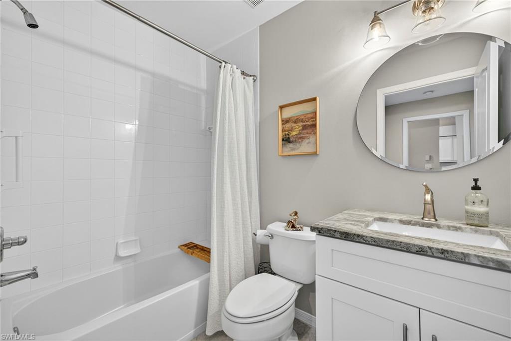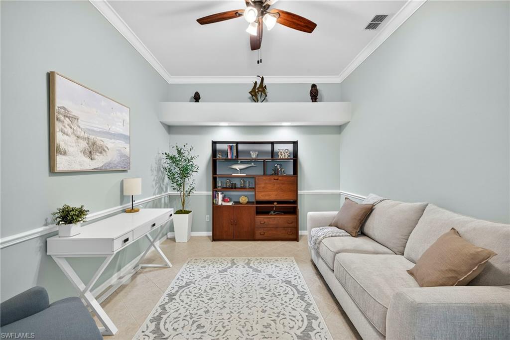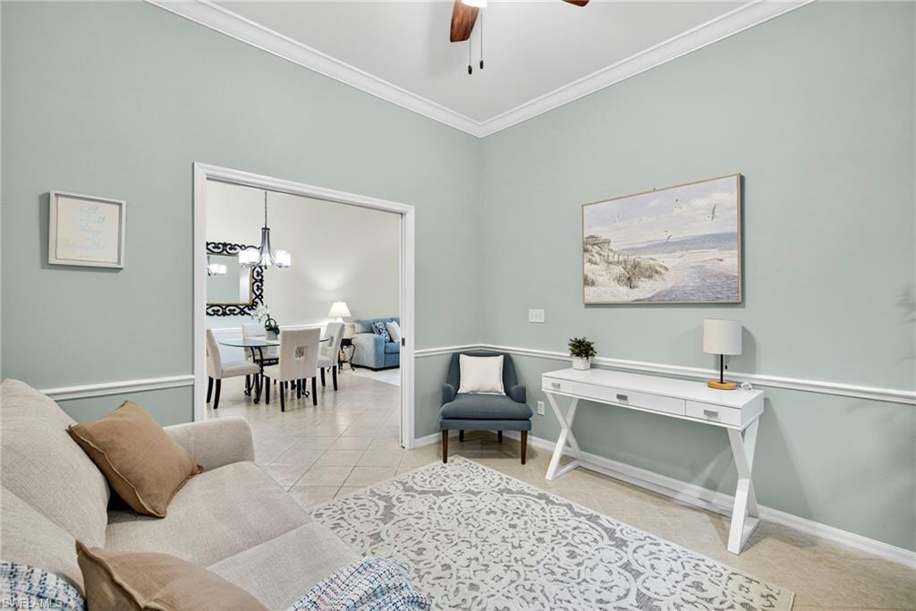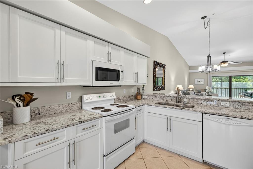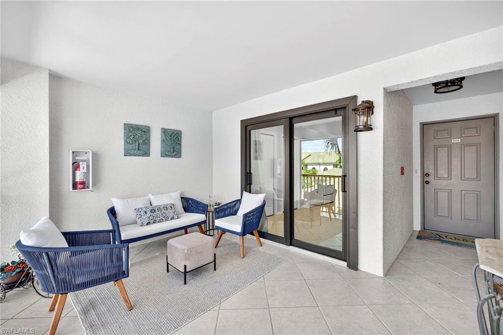 GOLF INCLUDED! Enjoy resort-style living in this beautifully updated 2-bedroom, 2-bath plus den second-floor veranda located in the highly desirable Naples Heritage Golf & Country Club. Set on 550 acres with over 250 acres of preserves, lakes, and open space, Naples Heritage offers the lowest density of any community of its kind in Naples. This remarkable home features a split floor plan with a spacious primary suite showcasing a bay window with beautiful golf course views, private lanai access, and two walk-in closets. Privacy is ensured for guests with a sliding door separating the guest suite. The den with pocket doors is perfect for use as an office or third bedroom. The open living and dining area flows seamlessly to the rear lanai, offering stunning views of the 18th tee, lake, and natural preserves. The eat-in kitchen opens to a large front lanai for additional outdoor dining and relaxation. Additional highlights include tile flooring throughout, fresh paint, updated finishes, and an included garage. The building has been recently upgraded with new impact doors and windows, exterior paint, new screens, and bronze railings. Naples Heritage residents enjoy a championship golf course, driving range and putting green, state-of-the-art fitness center, four pools including a resort-style pool with cabana, active tennis and pickleball programs, and an upscale clubhouse offering both casual and fine dining. This prime location gives quick access to I-75 and Southwest Florida International airport as well as Naples 5th Avenue with its amazing dining and shopping opportunities. Experience golf, nature, and leisure living in one of Naples’ premier bundled golf communities!