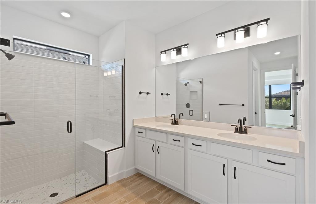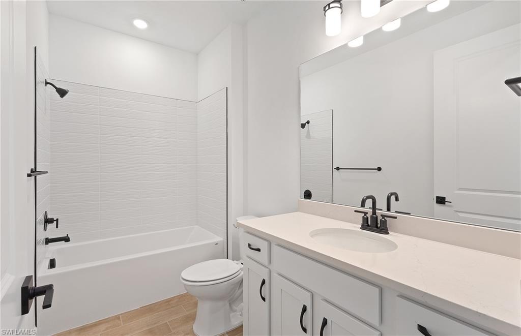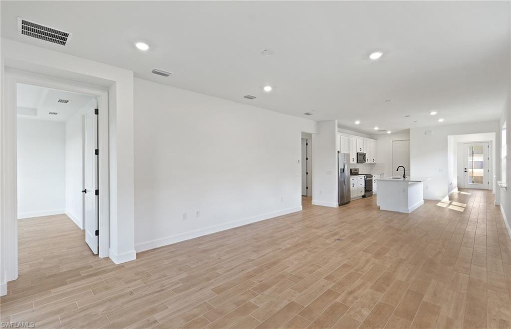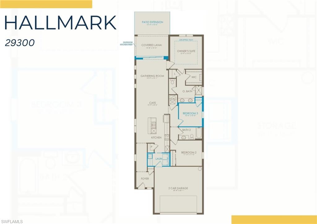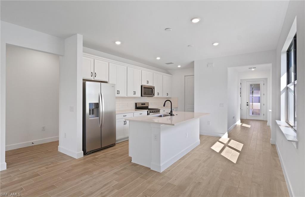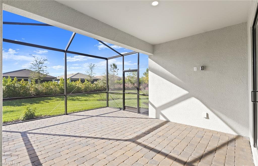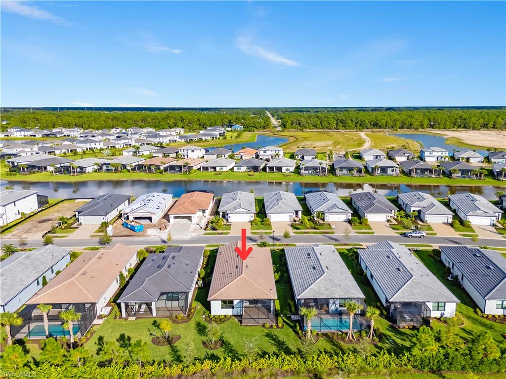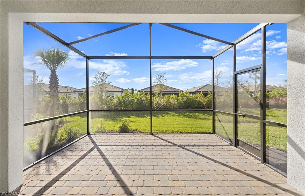 This stunning Hallmark Home Plan offers three spacious bedrooms, two luxurious bathrooms, and a two-car garage with epoxy-coated flooring, located in the highly desirable city of Naples within the new construction community of Terreno by DiVosta. The beautifully designed kitchen is the heart of the home, featuring Silestone countertops, a stylish backsplash, white cabinetry with matte black hardware, upgraded appliances, sink and faucet upgrades, and pre-wiring for pendant lighting above the island. The open-concept layout is ideal for entertaining family and friends. Additional highlights include gleaming tile flooring throughout, 8-foot interior doors, and an upgraded laundry room with white cabinetry. Enjoy seamless indoor-outdoor living with pocket sliding glass doors leading to the extended patio, perfect for relaxing or hosting gatherings. Outdoor kitchen pre-plumbing provides the opportunity to create the ultimate alfresco dining space. The elegant primary suite features a charming cropped soffit and a spa-like bathroom with dual sinks, Silestone countertops, sleek white cabinetry, a convenient shower niche, and distinctive shower floor tile. Two secondary bedrooms and a full bathroom offer comfortable accommodations for family or guests. Residents of Terreno enjoy exceptional amenities, including a 15,000 sq. ft. clubhouse, state-of-the-art fitness center, 8 lighted pickleball courts, 4 tennis courts, 2 dog parks, playground, firepit lounge, resort-style pool with lap lanes and heated spa, full-service restaurant and bar, food truck drive-up, and an adjacent 18-hole public golf course. This beautiful home combines elegance, comfort, and resort-style living. Schedule your tour today!