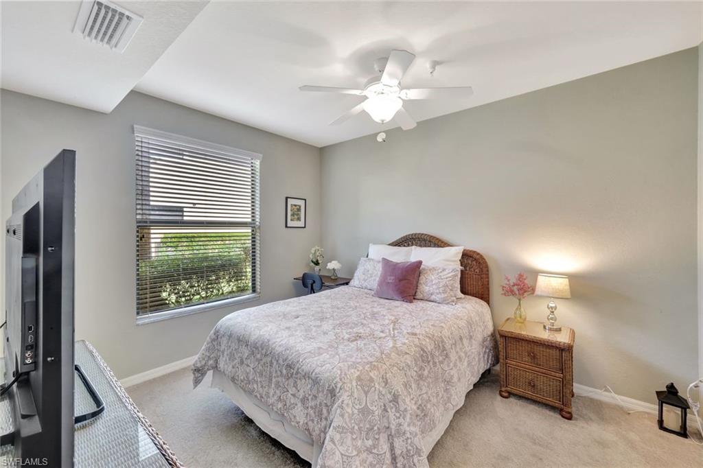GOLF INCLUDED WITH THIS END UNIT VERANDA CONDO! Experience breathtaking morning views from your comfortable east-facing lanai, which overlooks the lake and golf course! This beautiful Arabella floor plan features a spacious primary suite that includes two walk-in closets and a spa-inspired bathroom complete with a soaking tub and a separate shower. Entertaining will be a pleasure in the great room, where you can enjoy the same stunning views, while the den offers flexible space for your creativity. The second bedroom is thoughtfully located for privacy and comes with a full second bathroom, making it convenient for family or guests. The U-shaped kitchen boasts a delightful breakfast nook, perfect for informal dining or as a cozy office space. Additionally, the front entry lanai provides extra screened living space. With the TURNKEY option available, you can move right in and begin enjoying the wonderful Southwest Florida lifestyle at the amenity-rich Bonita National. Plus, GOLF MEMBERSHIP IS INCLUDED with this bundled property!