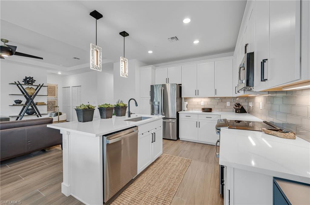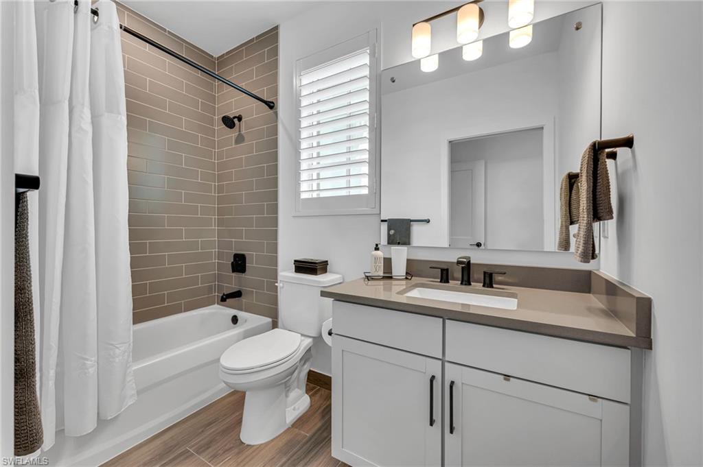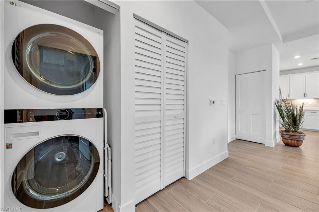 This stunning, 3 bedroom, 4 bath, Bahia Model floor plan is located in the private gated community of Villa Mar, centrally located in Bonita Springs, close to beaches, world class shopping & restaurants. Brand new as of December '23. 2nd floor unit with a private elevator, a spacious full length, covered lanai, and an HIGHLY COVETED 2 car garage. Maintenance & worry free living. The building is constructed with safety and security in mind. Engineered for strength and resilience, the building is safeguarded by the condo association’s insurance, which covers the structure against even the most dramatic storms. From the roof, which is raised seam metal, to the concrete filled, steel reinforced walls, poured concrete reinforced floors, hurricane rated windows & doors, (storm shutters are NOT necessary) , fire sprinkler suppression system, rest assured your home is safe and sound. Located outside of a flood zone, take comfort in the sense of safety and security this home will provide. Do you travel north over the summer months? Turn out the lights and set the alarm! This end unit with windows on 3 sides provides a ton of natural light. Eastern sun from the lanai in the morning overlooking the lush green preserve area.This is the only building in the development that does not face another building and also overlooks the resort style swimming pool. So much thought was put into the construction of this home - the upgraded front door leading into the foyer, the staircase with stainless steel spindles, the bright, wide open great room and so much more. Upgrades galore include wide plank ceramic wood grain tile, quartz countertops throughout, upgraded 42" soft close cabinets, a pantry cabinet with pull out drawer/shelves, ceramic tile backsplash, upgraded fixtures and hardware, designer ceiling fans, light fixtures, plantation shutters, wall mounted TV hookups, under cabinet lighting, dimmers on all lights, additional electrical outlets, the highest level GE Profile appliances, LG washer and dryer, and SO MUCH more. The primary bedroom boasts his and her walk-in closets, complemented with additional, added shelving, and the ensuite sports dual sinks and an upgraded sliding glass barn shower door. All 3 bedrooms all have ensuite baths with floor to ceiling ceramic tiles in the wet areas. The ensuite baths provide privacy for family or guests at all times. Whether you are searching for a family dwelling or for a place to love and enjoy seasonally or year round, this home has it all! The HOA provided high speed internet makes this home an ideal location to work remotely. HOA fees are modest for the amount and quality of services provided. Enjoy the grounds maintenance, swimming pool, club house, nicely equipped exercise studio, exterior building insurance, premium cable TV, (for 3 sets), alarm system, pest control, high speed internet and paid water. This home has it all, and is ready for you its new owners!