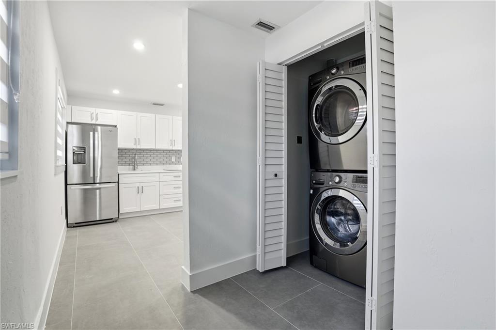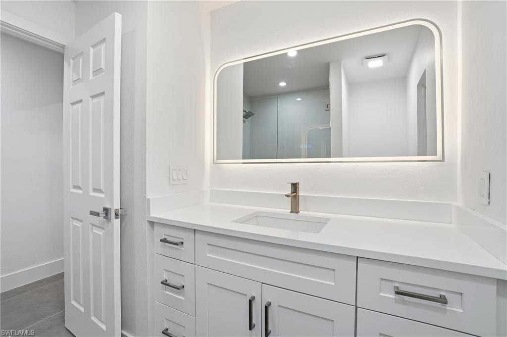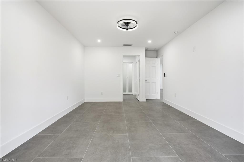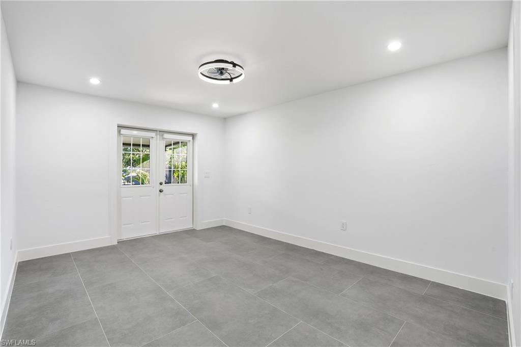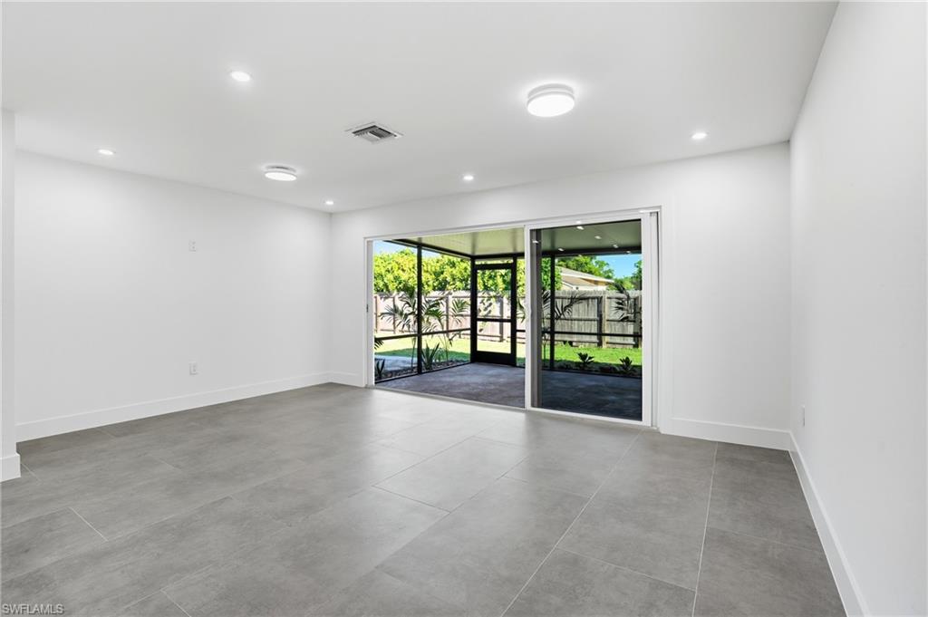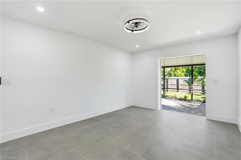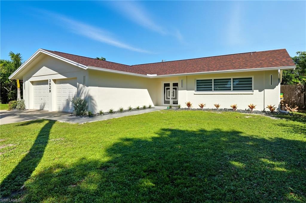 Pay for one home and get two separate fully functional living spaces – each with its own A/C unit, kitchen, living space, bathrooms, and bedrooms – and all newly renovated! Income producing property opportunity! Rental income estimated at $2,000/month with utilities included. While the main house can accommodate 3 separate sleeping rooms, the distinct mother-in-law suite (with a private entrance) can accommodate 2 separate sleeping spaces, giving you 5 total. This stunning, fully remodeled residence has been transformed from the studs up into a sleek, modern sanctuary that blends high-end finishes with thoughtful functionality. You have no worries with this home and no work that needs to be done. As part of the 2025 remodel, 304 square feet was added to the interior, expanding the living space, and the lanai was enlarged to enhance outdoor enjoyment. Every major system was replaced so that you have total peace of mind. This includes a powerful new 200-amp electric panel with all-new wiring, brand-new plumbing, two state-of-the-art A/C units with pristine new ductwork, as well as new impact-rated windows and doors throughout the entire home. The freshly re-shingled 2023 roof and 2017 water heater add to the home’s lasting appeal. Inside, expansive oversized 24” X 48” tile flooring stretches across every room, creating a seamless, sophisticated flow. Ambient wafer lighting with adjustable color temperature and contemporary ceiling fans enhance comfort and style throughout. The gourmet kitchen is a showstopper, featuring soft-close white cabinetry, gleaming white quartz countertops, premium stainless-steel appliances, and a dramatic 9-foot island perfect for entertaining. Every living space in the home has been intentionally crafted with versatility in mind. Take the den, for instance—it features a generous layout and a full closet, making it an ideal candidate for a bedroom, complete with space for a bed and nightstands. French doors in the master suite lead to a covered screened lanai where you can enjoy your morning cup of coffee. The master spa-inspired bathroom offers two closets, dual sinks, and a fog-free LED backlit touch mirror for a polished daily routine. The fully equipped mother-in-law suite—complete with its own entrance, stylish kitchenette, cozy living area, full bath, spacious bedroom, and dedicated A/C unit—ideal for guests, extended family, or rental income estimated at $2,000/mo with utilities included. By residing in the main home, you may be eligible for a 5% down payment—plus, you can apply rental income to help offset your monthly mortgage. When you are ready to explore the neighborhood-Sugden Park is a scenic 0.6-mile, the USOP National Pickleball Center is 1.6 miles away with 65 lighted courts, Naples Botanical Garden is a short 1.4 miles, downtown 5th Avenue is 3.7 miles away, and the stunning Naples Beach is only 5 miles away. This home and location have it all!