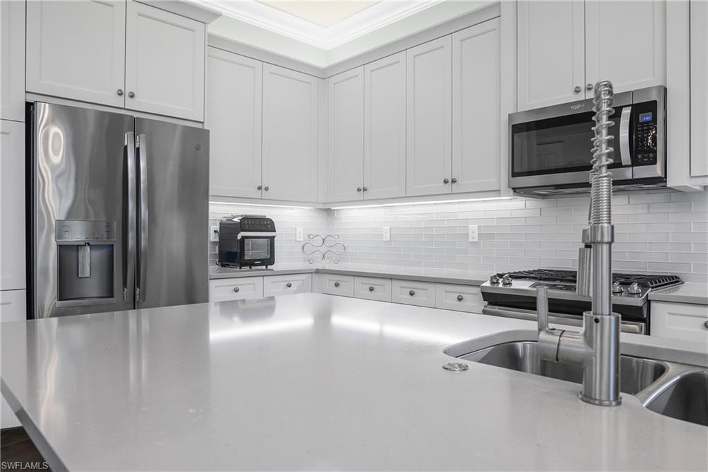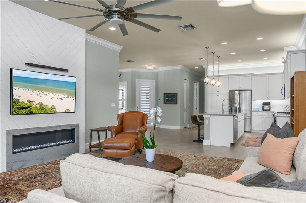 Home back on the market due to life changes from buyer causing financing to be denied. Home inspection completed and home appraised no issue! Welcome to this stunning York model home in the highly sought-after 55+ community of Valencia Bonita. The York is the largest attached villa floor plan offered, and this beautifully upgraded residence showcases over 2,000 square feet of open living space. This home features a custom quartzite stone accent wall in the primary suite, a tray ceiling with accent lighting, crown molding throughout, a custom built-in electric shiplap fireplace with recessed TV and open shelving, plantation shutters, designer pendant lighting, and five premium ceiling fans. The gourmet kitchen is appointed with quartz countertops, a subway glass backsplash, a premium stainless steel appliance package including a French door refrigerator, a new dishwasher, and an upgraded pull-down brushed nickel faucet. The home is decorated in fresh Sherwin Williams coastal-inspired colors for a bright, inviting feel. Valencia Bonita offers a premier active adult lifestyle, with full-time sports and social directors, eight pickleball courts, eight tennis courts, state-of-the-art fitness facilities, art and activity studios, and a full calendar of entertainment and social clubs. As a newer community, it is easy to connect with neighbors and build lasting friendships. This home is attractively priced for a quick sale and is available for immediate occupancy. For more information or to schedule a private showing, please contact the homeowner, Nancy Wilson, at .