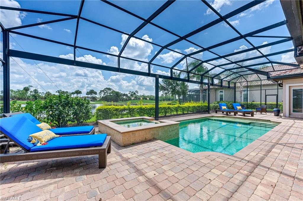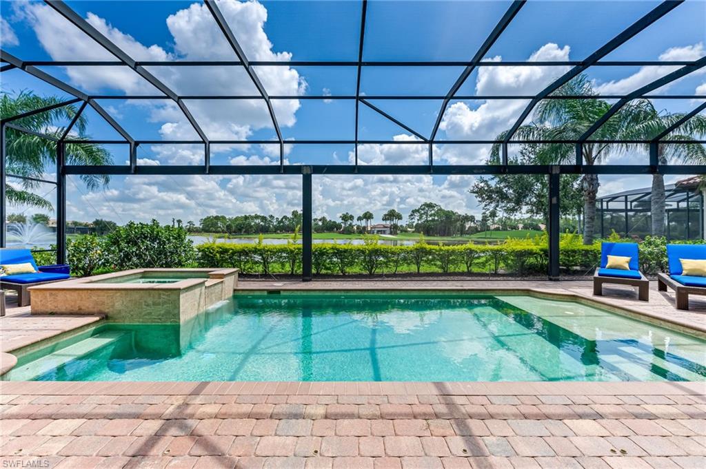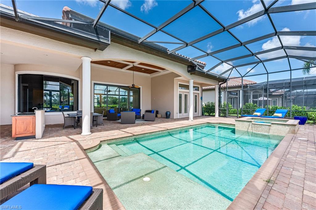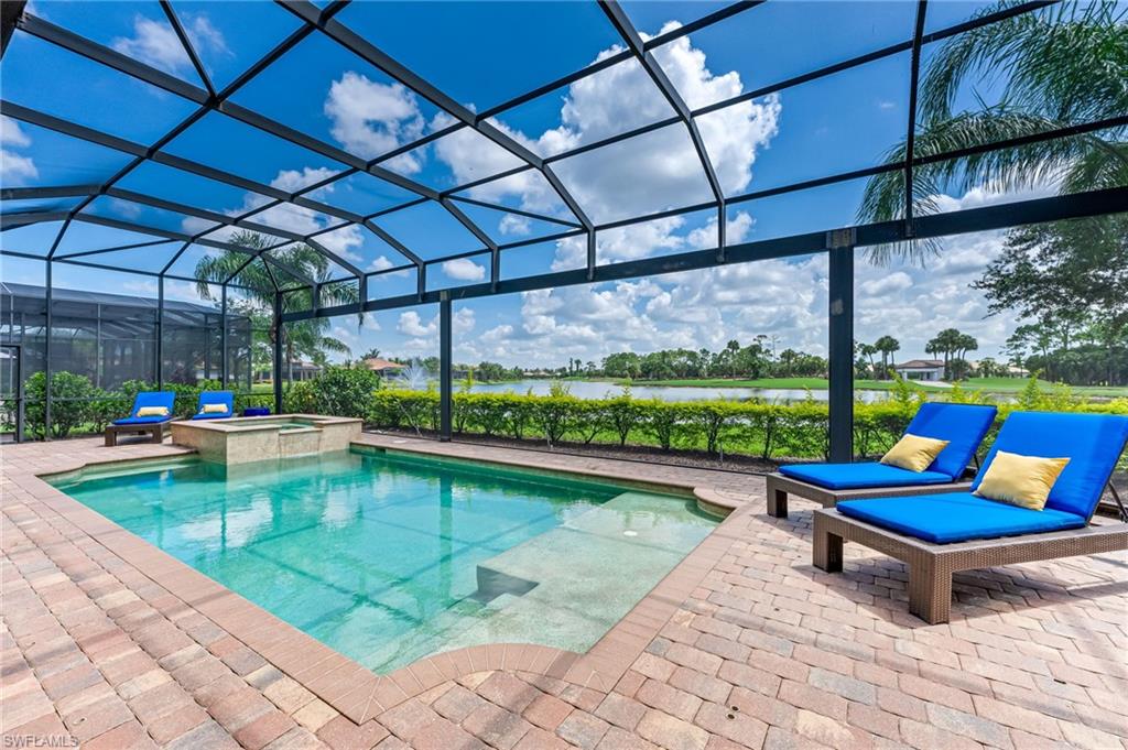 Get ready to have your breath taken away! This isn't just a home; it's a masterpiece of luxury living nestled within the prestigious Lakoya community at Lely Resort. We are thrilled to present this exceptional, Stock-built Muirfield IV residence, offering the perfect trifecta of elegance, comfort, and unmatched privacy. Your Exclusive Naples Oasis. Imagine waking up to this: your home is set on a prime lot with sweeping, expansive views of both the sparkling water and the lush golf course! This spectacular four-bedroom-plus-den, four-and-a-half-bathroom haven is custom-designed for those who demand the absolute finest. And here’s the best part: it’s offered turnkey/furnished! That means you literally pack a bag, unlock the front door, and instantly start soaking up the magnificent Naples lifestyle. No waiting, just immediate, luxurious enjoyment! Step through the striking modern double entry door and prepare to be dazzled. The open floor plan flows effortlessly across large, seamless tile flooring, creating an incredibly spacious and inviting atmosphere. The gourmet kitchen is a true showstopper and a chef’s ultimate fantasy, boasting a gas cooktop, brilliant quartz countertops, and custom cabinetry that’s as beautiful as it is functional. The dedicated den/office is a refined sanctuary, complete with custom-built-in cabinets perfect for work, reading, or quiet relaxation. Privacy? Check! Each of the four spacious bedrooms features its own private en-suite bathroom, offering ultimate convenience for family and guests alike. Outdoor living doesn't get any better than this! The oversized lanai is an absolute entertainment destination. It features a fantastic outdoor kitchen, a large, custom gas- heated pool and spa, and impressive custom teak tray ceilings that create a resort-style ambiance. Gather around the cozy fire pit with a glass of wine and watch the sunset—it's pure magic! Owning this Muirfield IV means more than just a gorgeous home; it means gaining a VIP pass to the incredible Lely Resort lifestyle! Golf Heaven: Tee off on your choice of three championship golf courses. The Players Club & Spa: You get access to this award-winning, world-class amenity center! Enjoy two resort-style pools, a lap pool, a state-of-the-art fitness center, tennis courts, pickleball, and bocce. Dining & Social: The club features a full-service restaurant (indoor/outdoor), a lively tiki bar, and a grill. Plus, a full-time activities director keeps the calendar packed with fun events, making it easy to meet friends and live an active, social life! This Muirfield IV home in Lakoya at Lely Resort is the unparalleled combination of modern luxury, impeccable design, and a vibrant community you’ve been searching for. Don't just dream about the Lely life—Start Living, Laughing, and Loving it Today!