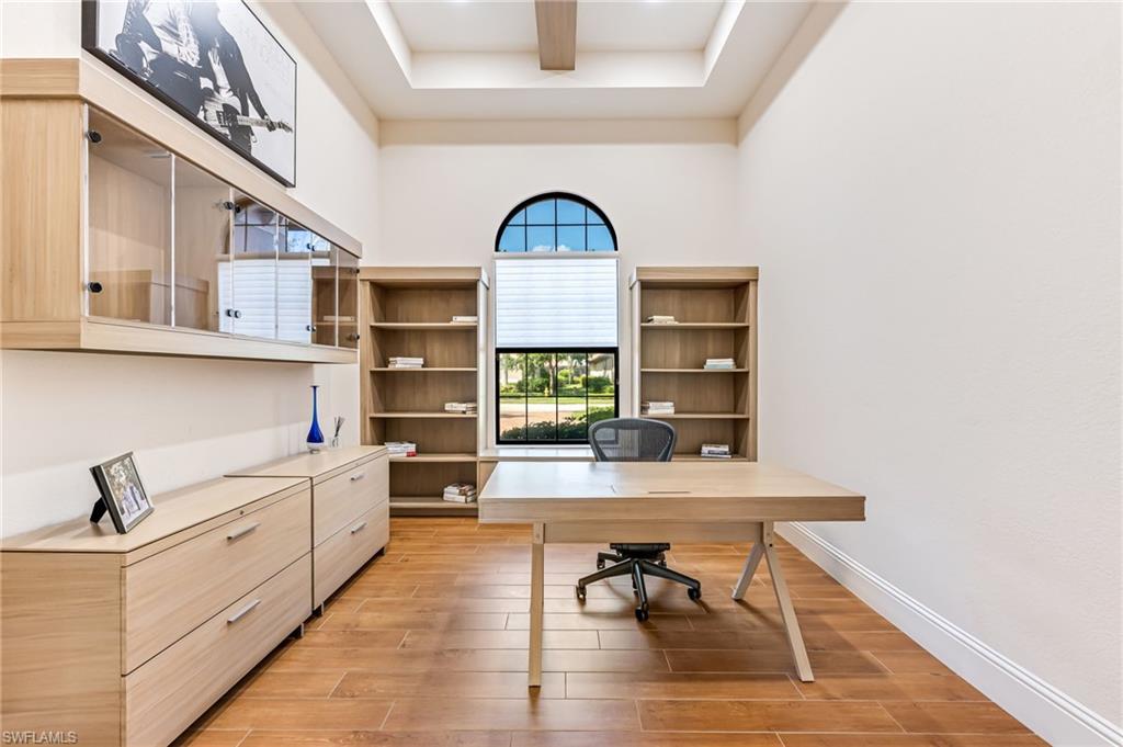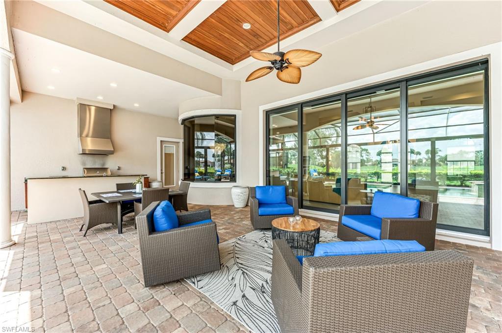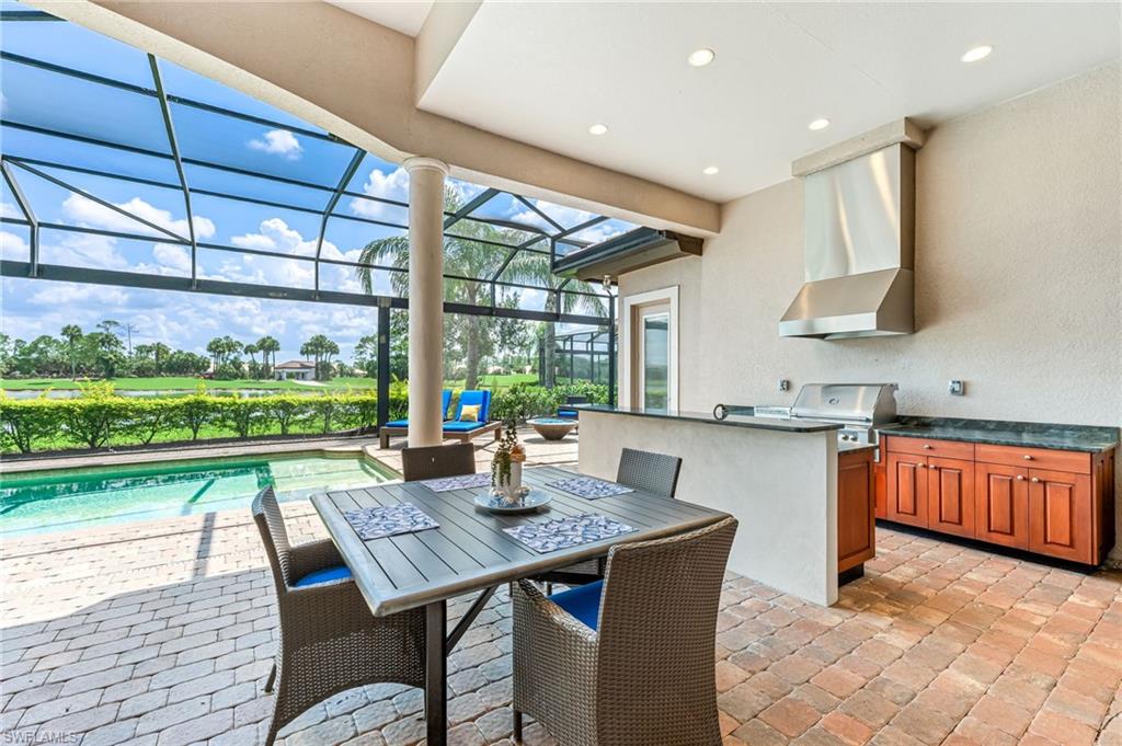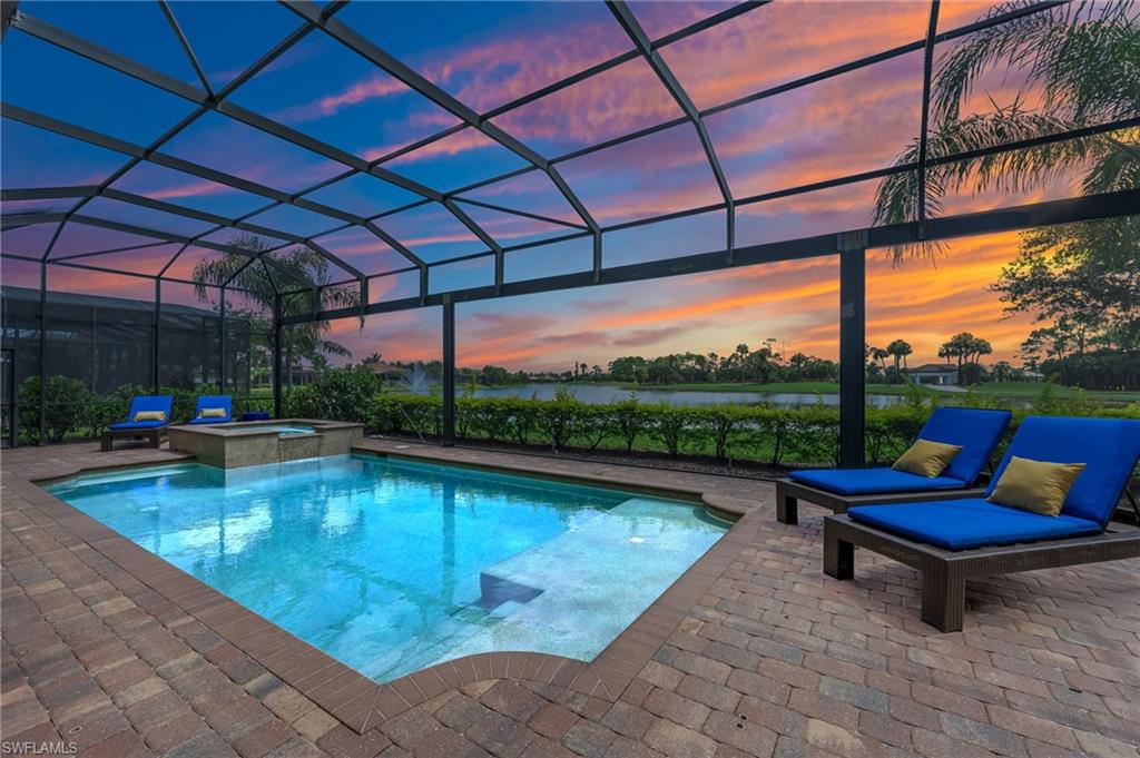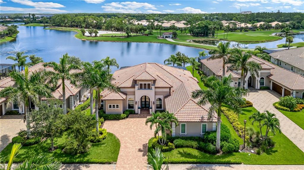Get ready to have your breath taken away! This isn't just a home; it's a masterpiece of luxury living nestled within the prestigious Lakoya community at Lely Resort. We are thrilled to present this exceptional, Stock-built Muirfield IV residence, offering the perfect trifecta of elegance, comfort, and unmatched privacy. Your Exclusive Naples Oasis. Imagine waking up to this: your home is set on a prime lot with sweeping, expansive views of both the sparkling water and the lush golf course! This spectacular four-bedroom-plus-den, four-and-a-half-bathroom haven is custom-designed for those who demand the absolute finest. And here’s the best part: it’s offered turnkey/furnished! That means you literally pack a bag, unlock the front door, and instantly start soaking up the magnificent Naples lifestyle. No waiting, just immediate, luxurious enjoyment! Step through the striking modern double entry door and prepare to be dazzled. The open floor plan flows effortlessly across large, seamless tile flooring, creating an incredibly spacious and inviting atmosphere. The gourmet kitchen is a true showstopper and a chef’s ultimate fantasy, boasting a gas cooktop, brilliant quartz countertops, and custom cabinetry that’s as beautiful as it is functional. The dedicated den/office is a refined sanctuary, complete with custom-built-in cabinets perfect for work, reading, or quiet relaxation. Privacy? Check! Each of the four spacious bedrooms features its own private en-suite bathroom, offering ultimate convenience for family and guests alike. Outdoor living doesn't get any better than this! The oversized lanai is an absolute entertainment destination. It features a fantastic outdoor kitchen, a large, custom gas- heated pool and spa, and impressive custom teak tray ceilings that create a resort-style ambiance. Gather around the cozy fire pit with a glass of wine and watch the sunset—it's pure magic! Owning this Muirfield IV means more than just a gorgeous home; it means gaining a VIP pass to the incredible Lely Resort lifestyle! Golf Heaven: Tee off on your choice of three championship golf courses. The Players Club & Spa: You get access to this award-winning, world-class amenity center! Enjoy two resort-style pools, a lap pool, a state-of-the-art fitness center, tennis courts, pickleball, and bocce. Dining & Social: The club features a full-service restaurant (indoor/outdoor), a lively tiki bar, and a grill. Plus, a full-time activities director keeps the calendar packed with fun events, making it easy to meet friends and live an active, social life! This Muirfield IV home in Lakoya at Lely Resort is the unparalleled combination of modern luxury, impeccable design, and a vibrant community you’ve been searching for. Don't just dream about the Lely life—Start Living, Laughing, and Loving it Today!