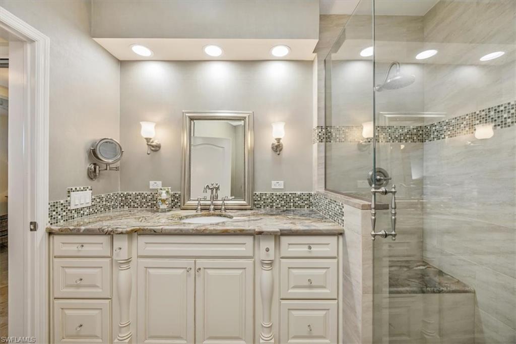 This beautifully updated 3-bedroom, 2-bath end unit combines modern elegance with the unmatched lifestyle of Pelican Bay. The spacious open floor plan offers effortless flow between the living room, dining area, and a stunning renovated kitchen featuring custom cabinetry, quartz countertops, and cabinet-front appliances. The primary suite includes two closets and a remodeled bath with a tiled walk-in shower and quartzite countertop and shower accent. Two spacious guest bedrooms share a well appointed bathroom, and the laundry room offers extra storage space. Additional highlights include an oversized laundry room, screened lanai, two deeded parking spaces, and a private storage room. Avalon residents enjoy a host of exceptional amenities, including a clubhouse with a swimming pool, lap pool, spa, and a covered seating, and an outdoor kitchen ideal for entertaining. Located within the prestigious Pelican Bay community, residents enjoy world-class amenities including two private beachfront pavilions with dining and beach attendants, tennis and pickleball courts, a state-of-the-art fitness center, and an active community center — all just minutes from Naples’ premier shopping, dining, and cultural attractions.