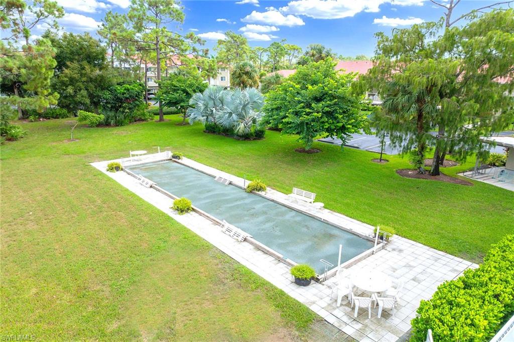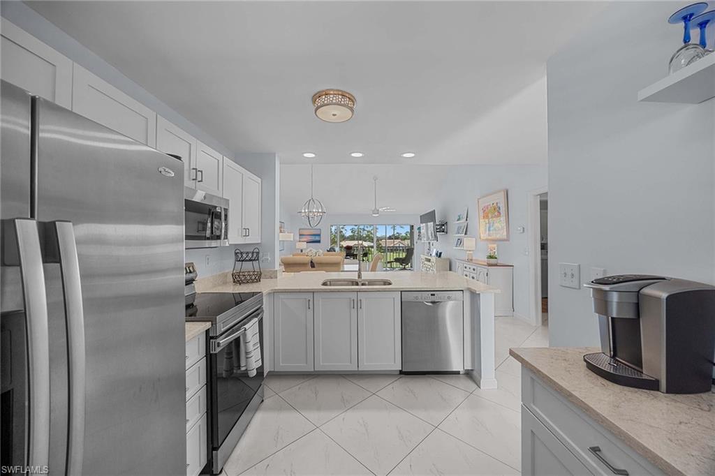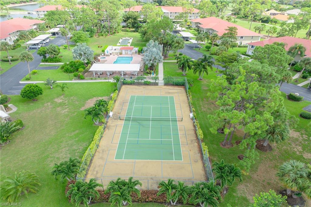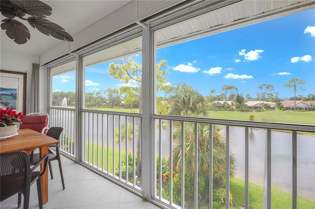 Welcome to Andover Square in Royal Wood Golf & Country Club – A Hidden Gem in the Heart of Naples tucked away in the serene enclave of Andover Square, this beautifully updated condominium offers a blend of elegance and coastal charm. From the moment you go inside, you're greeted by 28-inch diagonal tile flooring throughout and a thoughtfully designed split floor plan that provides comfort, privacy and style. The gourmet kitchen features gorgeous quartz countertops, stainless steel appliances, and opens seamlessly to the spacious living and dining areas. Enjoy the airy ambiance created by vaulted ceilings, designer lighting, and plantation shutters adorning every window. Retreat to the primary suite, a tranquil haven complete with a quartzite custom sink, coastal-inspired tiled shower and a generously sized walk-in closet. Additional highlights include a large laundry room with extra cabinetry and storage. Take in breathtaking views of the 10th hole and sparkling lake with fountain—some of the best vistas in the community—right from your home. Residents enjoy access to Royal Wood’s recently renovated clubhouse, offering formal and casual dining, a modern fitness center and a full suite of resort-style amenities. Within Andover Square itself, you'll find a private pool, barbecue area, bocce ball, pickleball courts and lively social activities that foster a warm community spirit. Ideally just minutes from Marco Island, 5th Avenue South’s fine dining, world-class shopping and Naples famous white sand beaches, this property offers exceptional value in one of Southwest Florida’s sought-after bundled golf communities. Don’t miss this opportunity to live the Naples lifestyle in one of Royal Wood’s desirable locations.