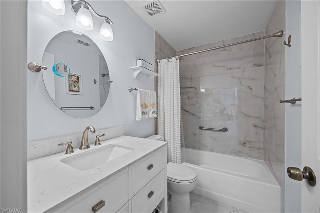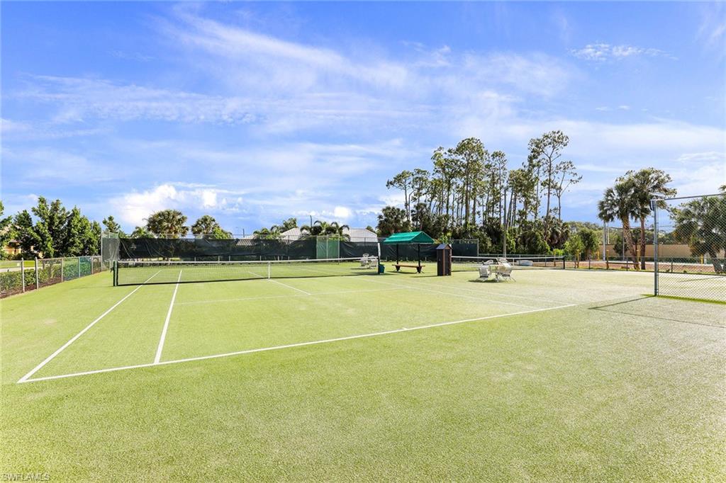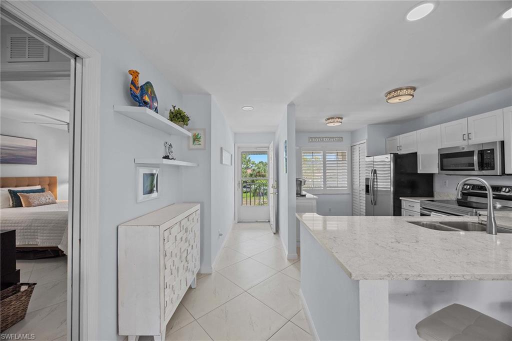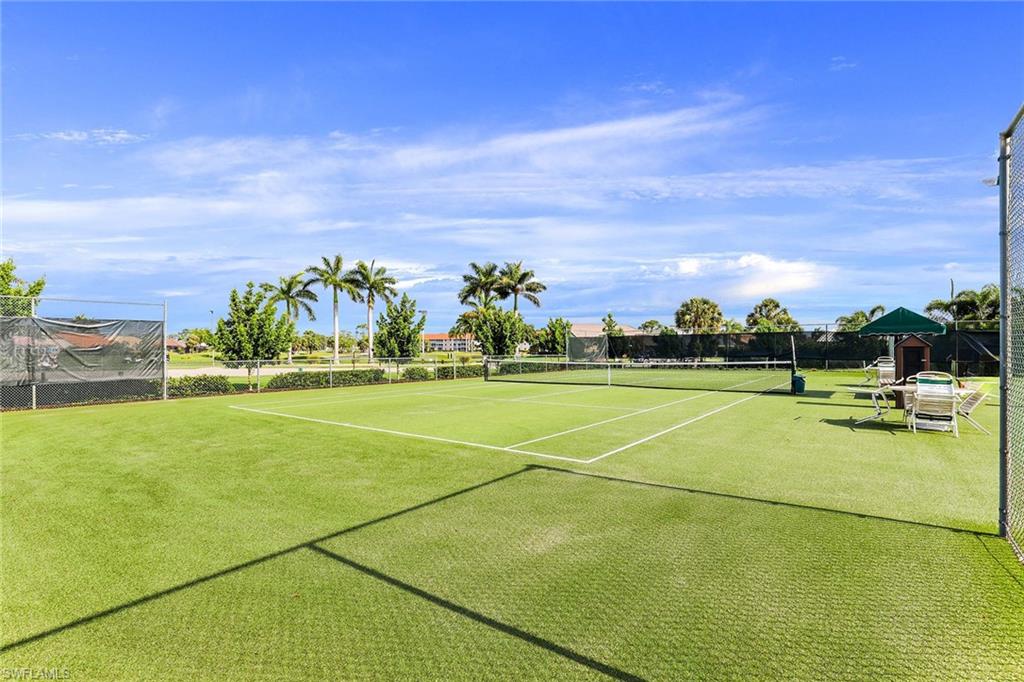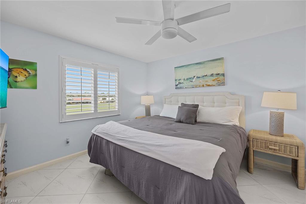 Welcome to Andover Square in Royal Wood Golf & Country Club – A Hidden Gem in the Heart of Naples tucked away in the serene enclave of Andover Square, this beautifully updated condominium offers a blend of elegance and coastal charm. From the moment you go inside, you're greeted by 28-inch diagonal tile flooring throughout and a thoughtfully designed split floor plan that provides comfort, privacy and style. The gourmet kitchen features gorgeous quartz countertops, stainless steel appliances, and opens seamlessly to the spacious living and dining areas. Enjoy the airy ambiance created by vaulted ceilings, designer lighting, and plantation shutters adorning every window. Retreat to the primary suite, a tranquil haven complete with a quartzite custom sink, coastal-inspired tiled shower and a generously sized walk-in closet. Additional highlights include a large laundry room with extra cabinetry and storage. Take in breathtaking views of the 10th hole and sparkling lake with fountain—some of the best vistas in the community—right from your home. Residents enjoy access to Royal Wood’s recently renovated clubhouse, offering formal and casual dining, a modern fitness center and a full suite of resort-style amenities. Within Andover Square itself, you'll find a private pool, barbecue area, bocce ball, pickleball courts and lively social activities that foster a warm community spirit. Ideally just minutes from Marco Island, 5th Avenue South’s fine dining, world-class shopping and Naples famous white sand beaches, this property offers exceptional value in one of Southwest Florida’s sought-after bundled golf communities. Don’t miss this opportunity to live the Naples lifestyle in one of Royal Wood’s desirable locations.