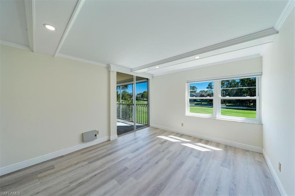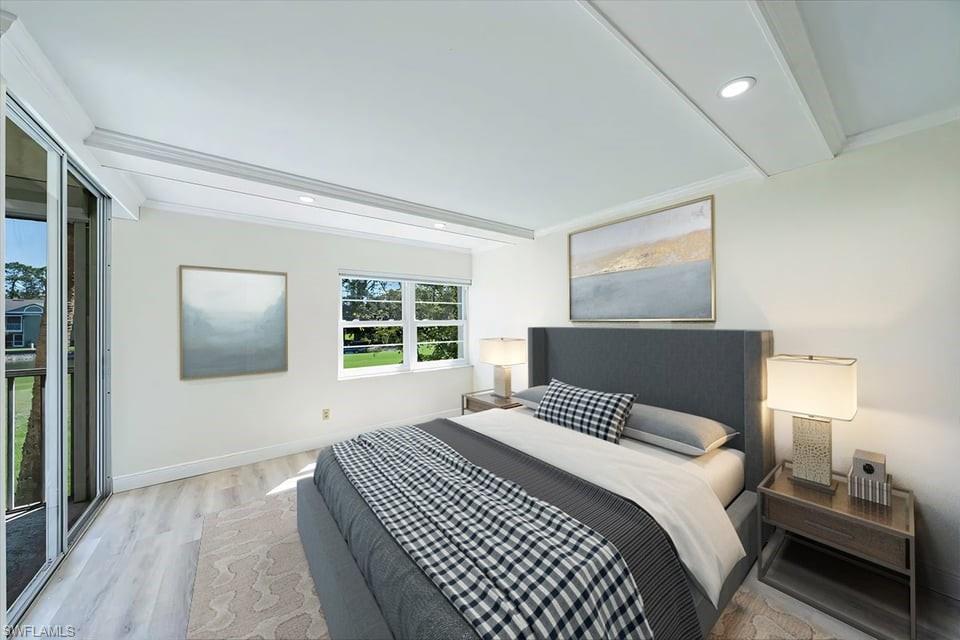 WOW! Fabulously updated 2nd floor unit with a perfect North Naples Location! So much to love about this second floor two bedroom two bath unit with elevator access. Stunning golf course views from the living room and screened lanai with electric hurricane screen and upgrades galore! Fresh paint, updated kitchen cabinets, new shiplap ceilings in kitchen and foyer, new beams in the living, dining room and master, new recessed lighting, new barn doors, new bathroom floors and vanities & new tile in the master shower, new flooring throughout, new baseboards, door casings and crown moldings, new countertops in the kitchen & baths, newer kitchen appliances, newer windows and window shades and more! Forest Lakes is an active 55+ community offering a variety of amenities on 17 beautiful acres including three heated community pools, clay tennis courts, shuffleboard, and a clubhouse with full kitchen, pool tables, and library. Optional social or golf memberships are available through Quail Run Golf Course. conveniently located with various shops and restaurants within less than a mile, and just minutes to the sandy white beaches, downtown Naples and I-75. Don't let this one get away!
